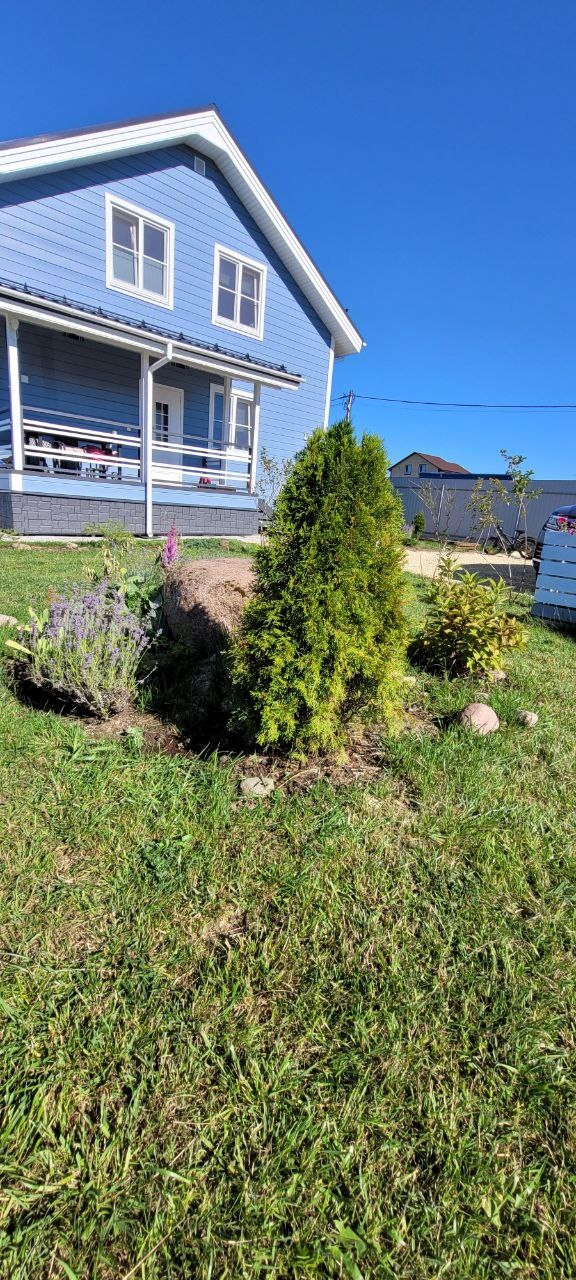 На участке: хозблок с электричеством, беседка с подведенным электричеством и водой (для летней кухни), стоянка для 4х автомобилей, мангальная и костровая зоны. Участок ровный, есть плодовые деревья, кустарники, гортензии, туи.