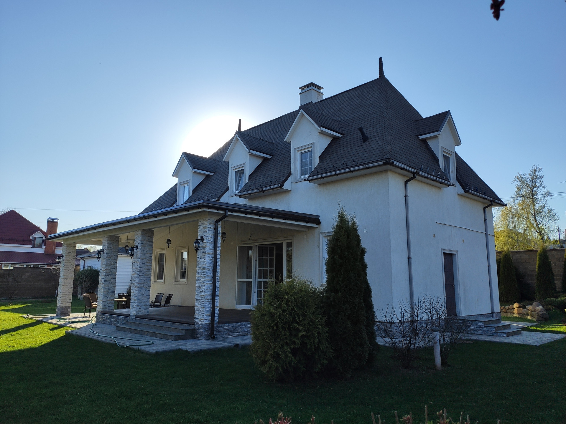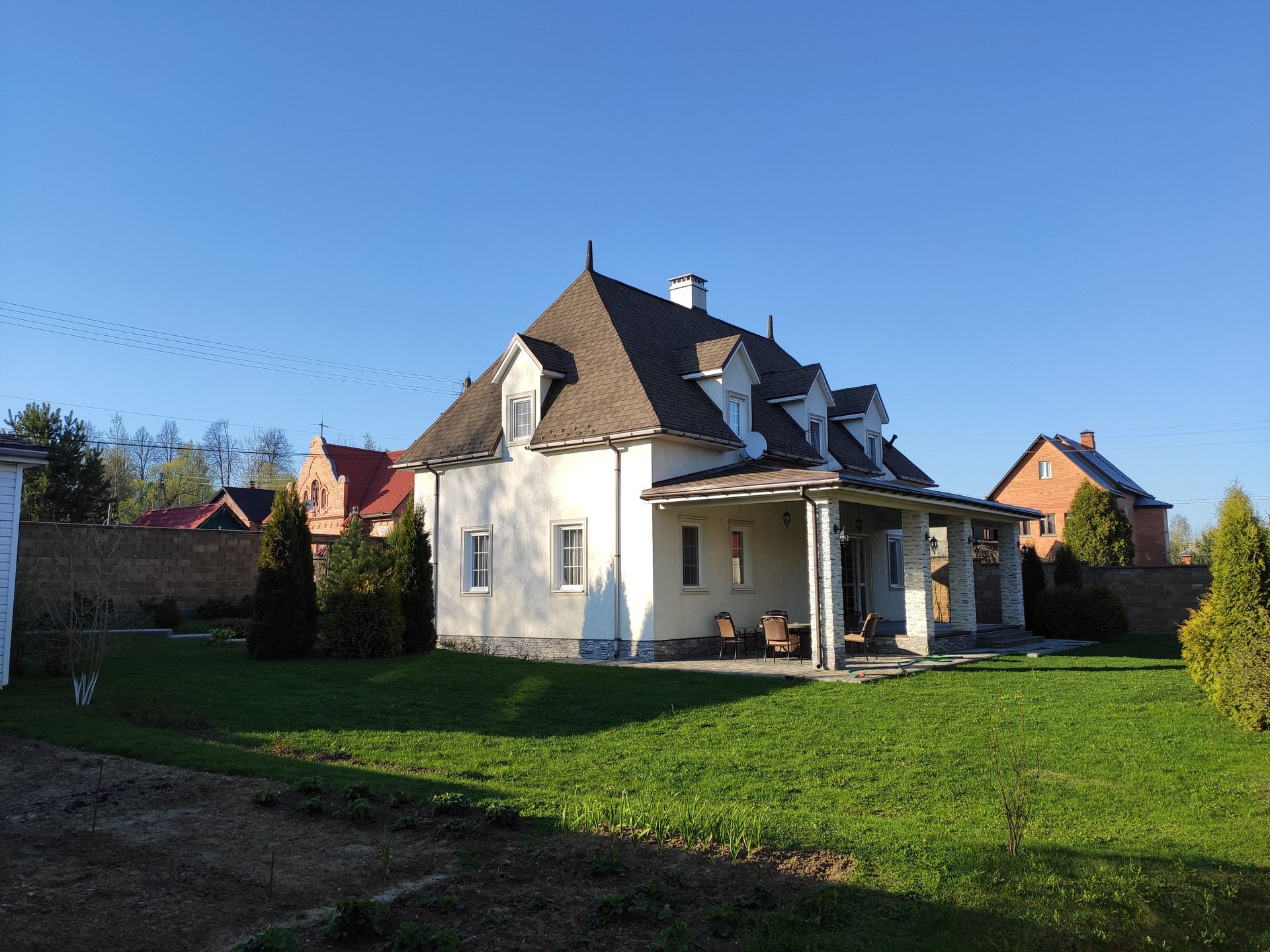 К Вашему вниманию предлагается Земельный участок площадью с Жилым домом.  Участок по документам 12,07 соток- по факту около 14. Участок очень ухожен, создан ландшафтный дизайн- выложена терраса из камня, посажены дорогие виды деревьев кустарников и цветов, вся территория застелена газоном, тропинки вымощены плиткой, оборудована автоматическая поливная система. Участок огорожен 2-метровым забором из камня. Дом с дорогой качественной отделкой предназначен для круглогодичного проживания. На первом этаже: Кухня-столовая, гостиная со встроенной итальянской и американской мебелью по индивидуальному заказу и со встроенной техникой, гостевой санузел, кладовая, бойлерная-котельная с системой многоуровневой очистки воды. Теплые полы. На втором этаже: 4 спальни, санузел с джакузи, Имеются все коммуникации: Газ магистральный, Электричество 15 КВТ, Септик, скважина с системой  очистки. Гараж на 2 машины.