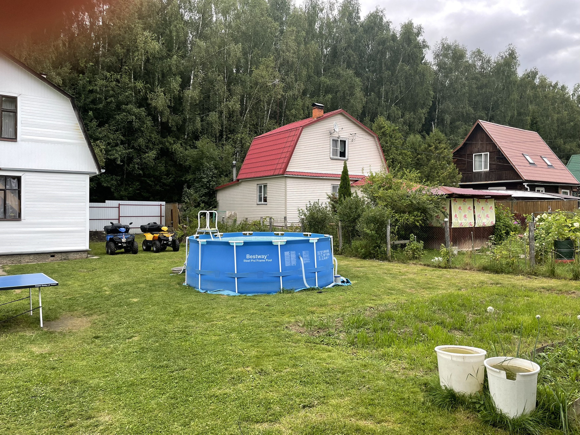 На участке 2 дома, уличный туалет, хозблок с душевой кабинкой с горячей и холодной водой, колодец.