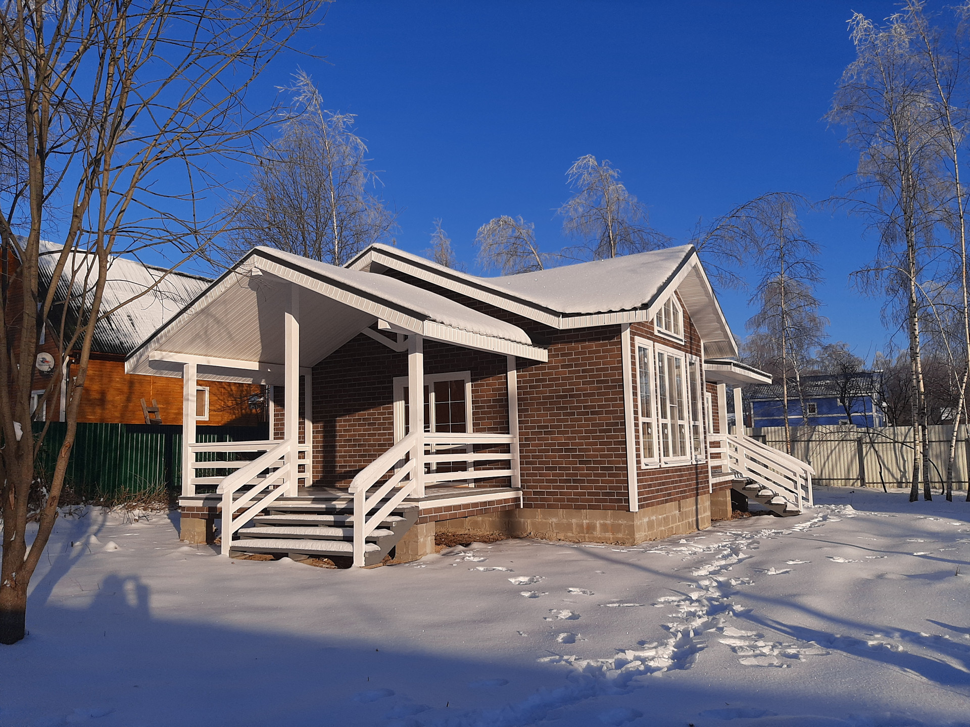 Дом каркасно-брусовой, утепление 150 мм, звуко и пароизоляция, энергосберегающее остекление в 3 стекла, ленточный фундамент. Полная внутренняя и внутренняя отделка.