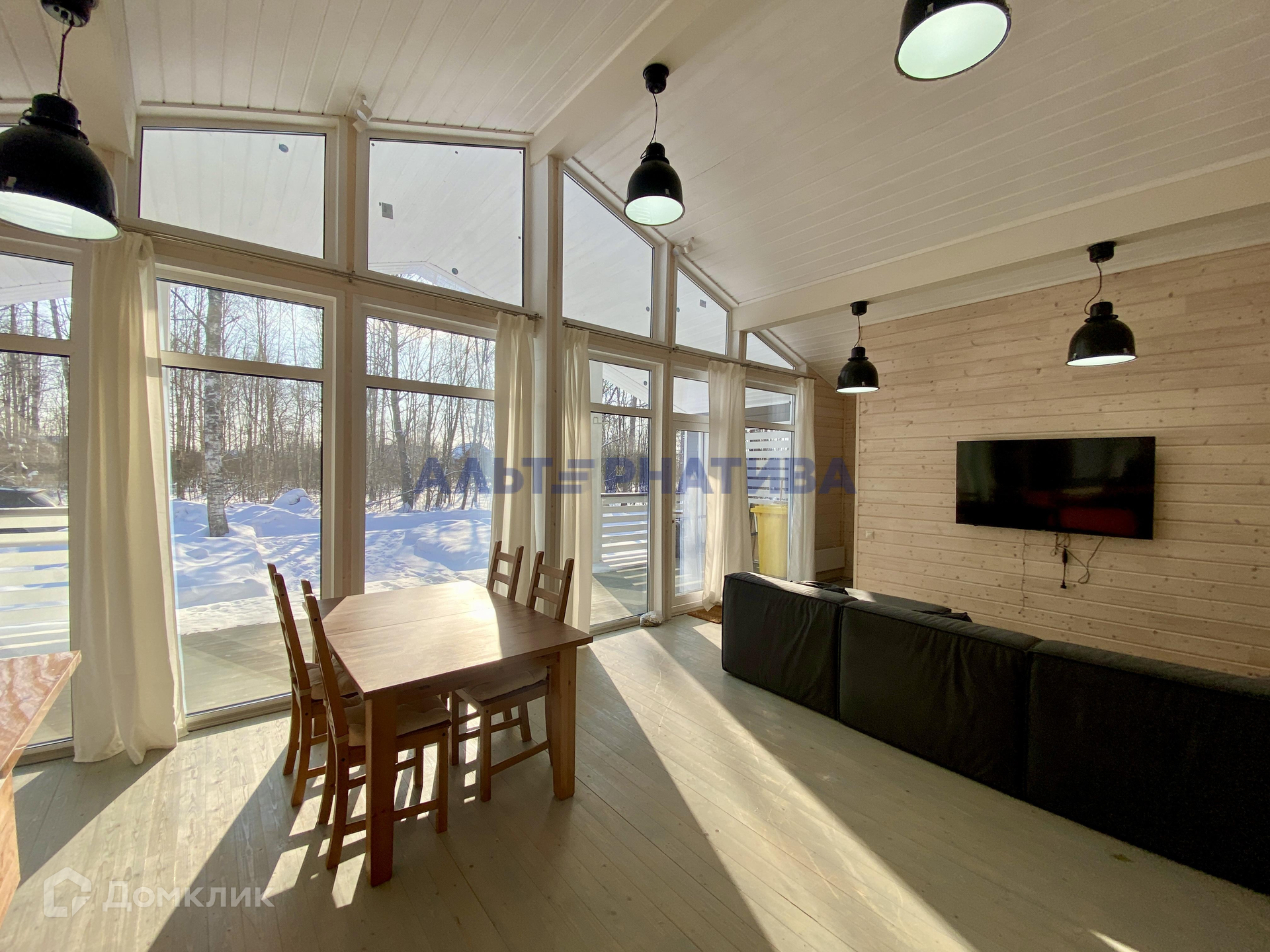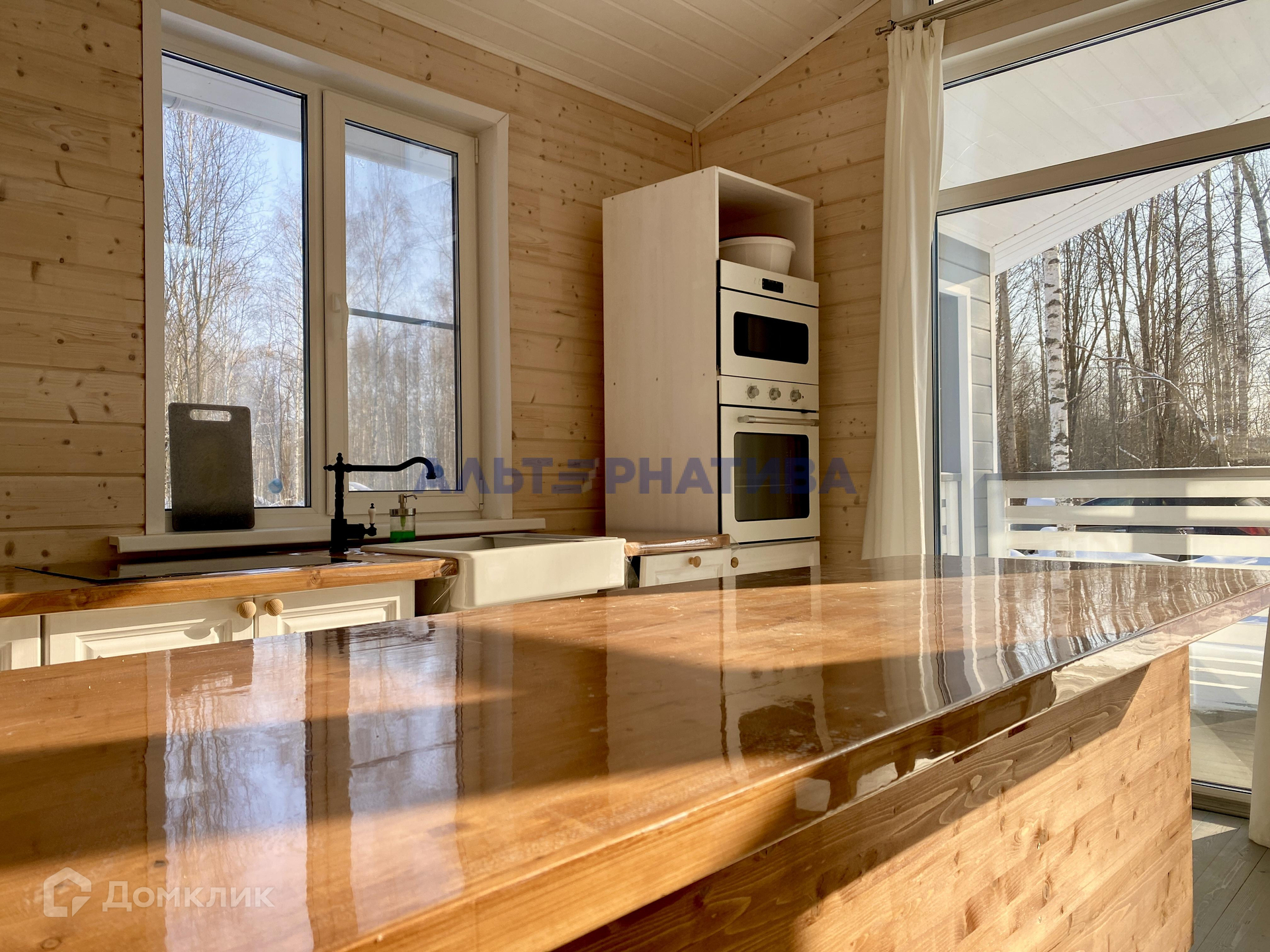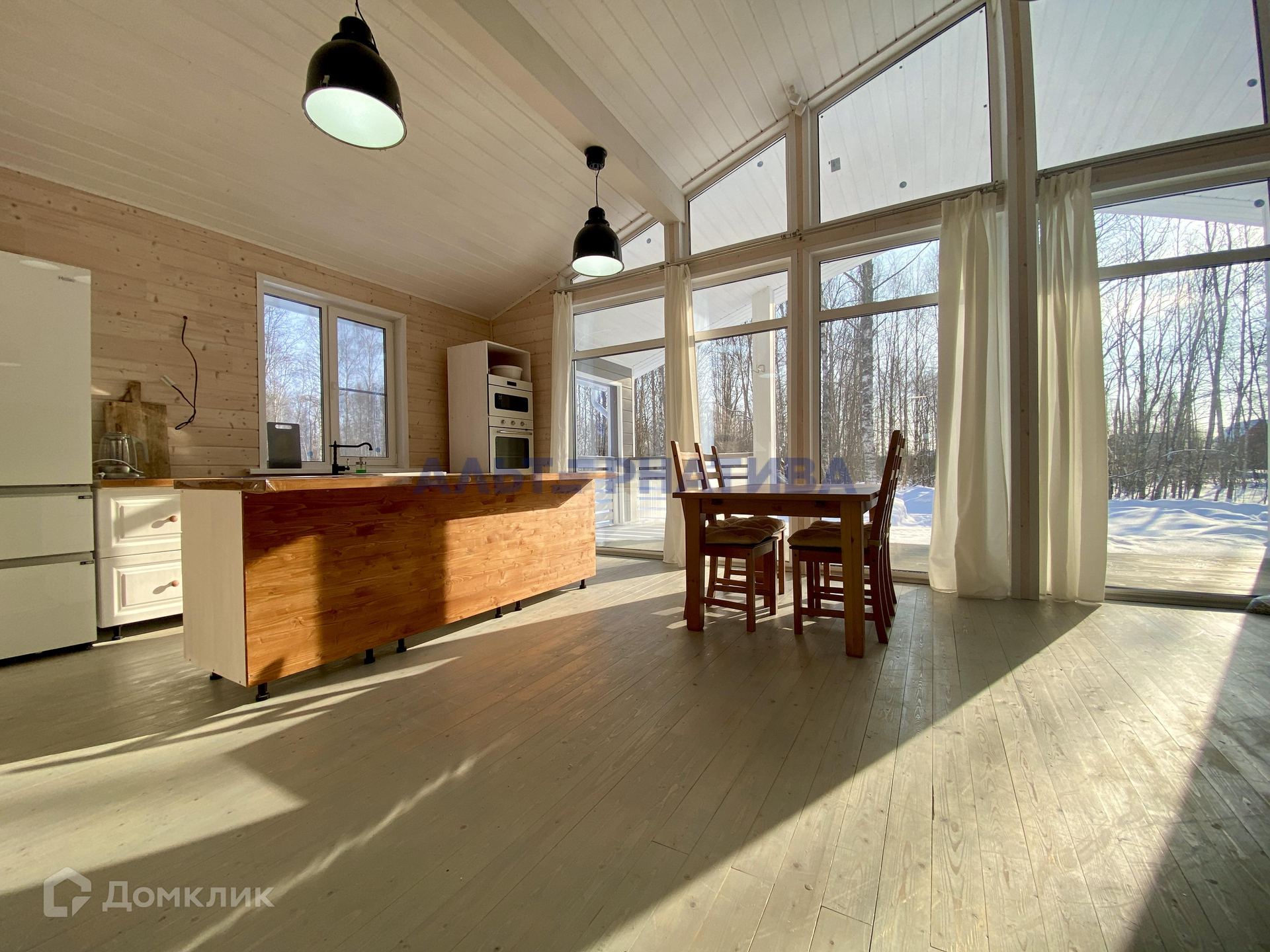 Общая площадь дома 180 кв.м. Участок площадью 9 соток - ровный, сухой, прямоугольной формы. По всей площади засеян газоном и находится в березовой роще. Рядом с участком лес: можно собирать грибы, ягоды. Соседей по границе участка нет.