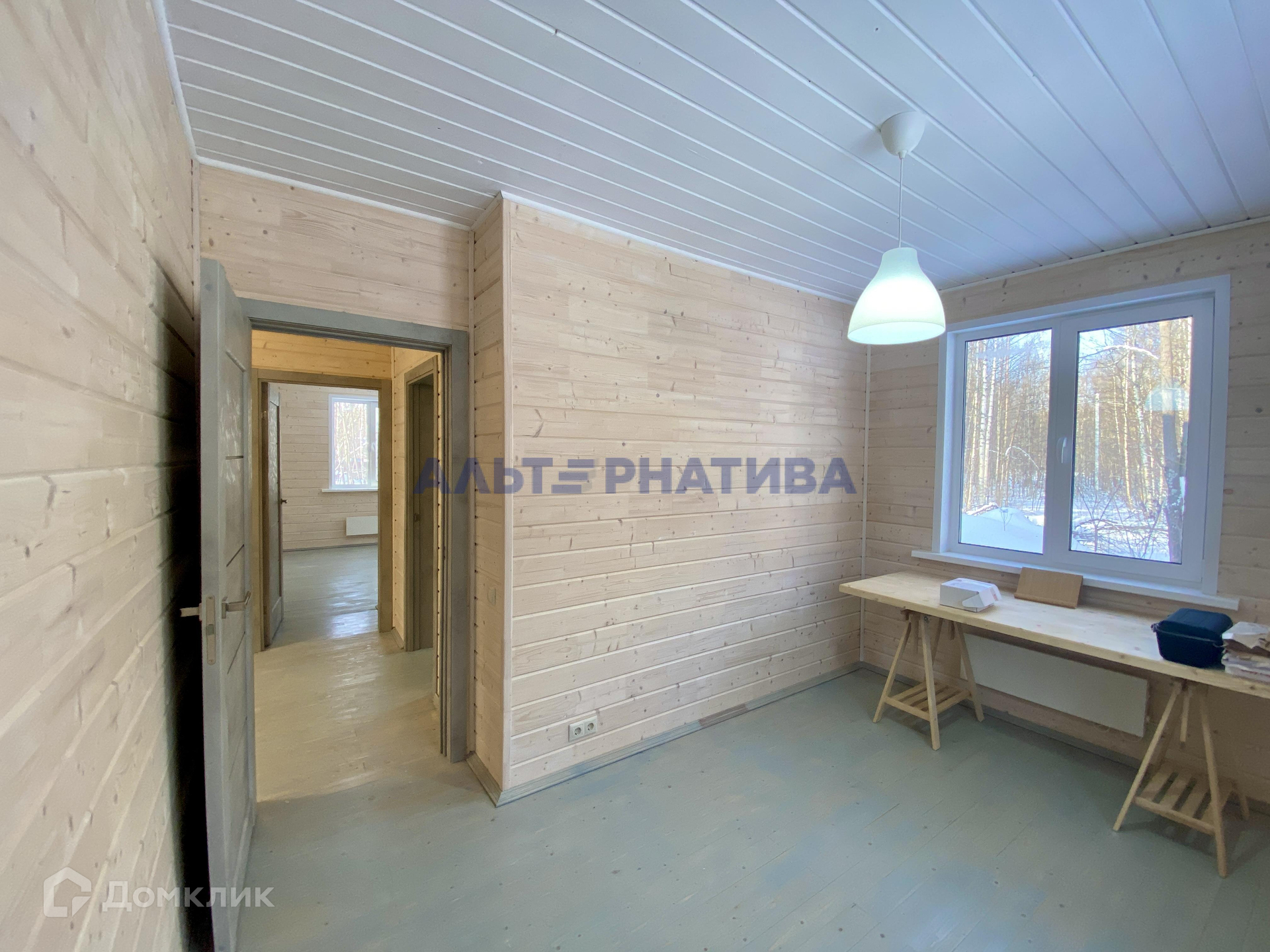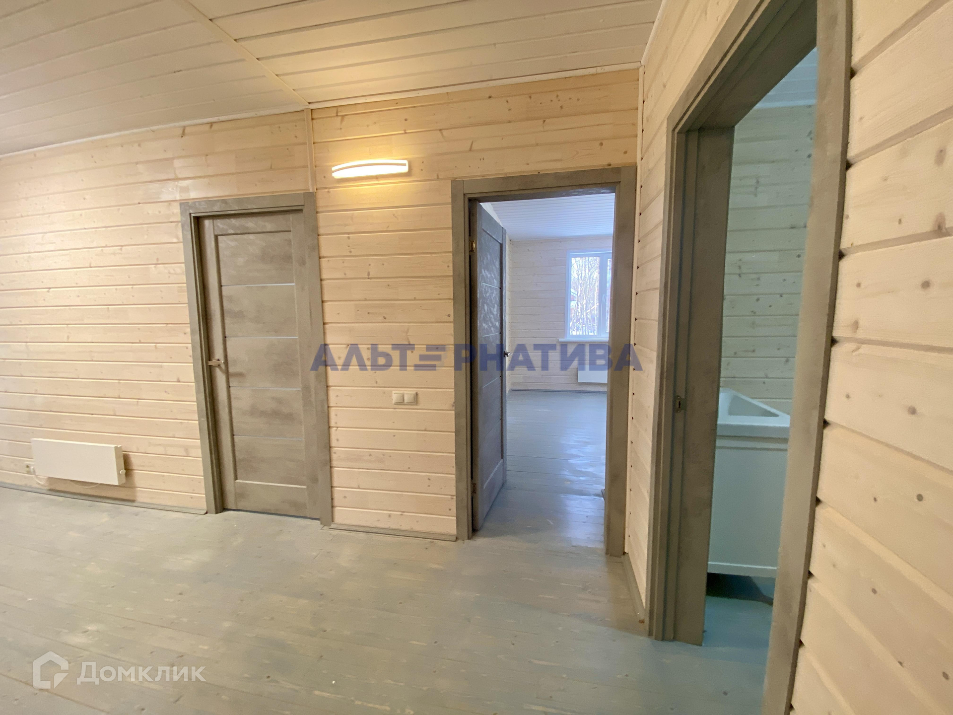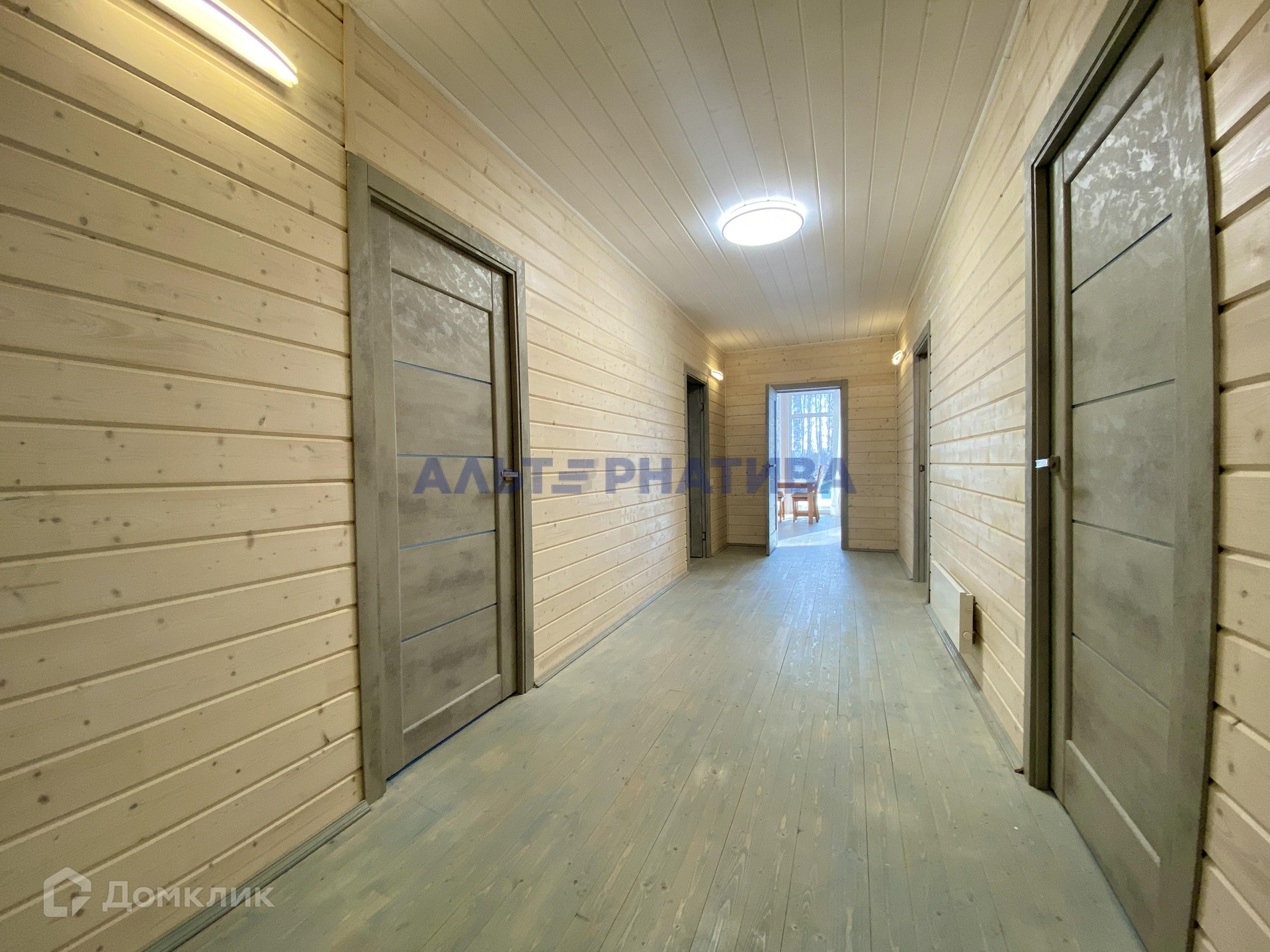 Планировка: прихожая, просторный коридор, 4 спальни, санузел, гардеробная (или кабинет), техническое помещение, большая кухня-гостиная.