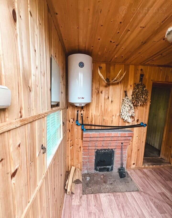 Есть баня 2017 года постройки, вода заведена, установлен нагреватель.