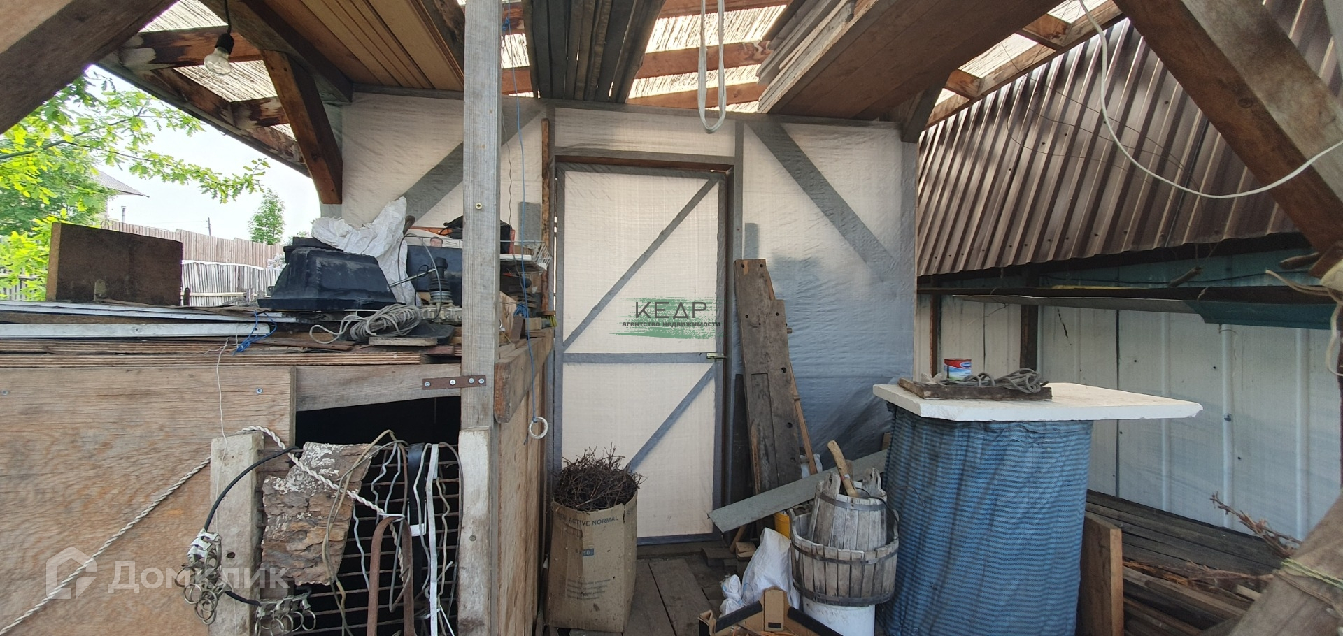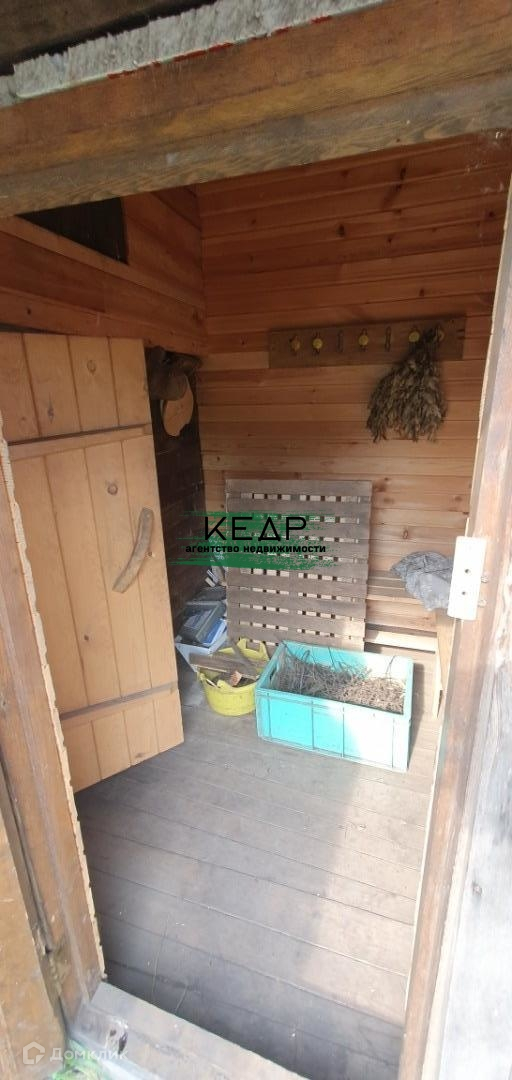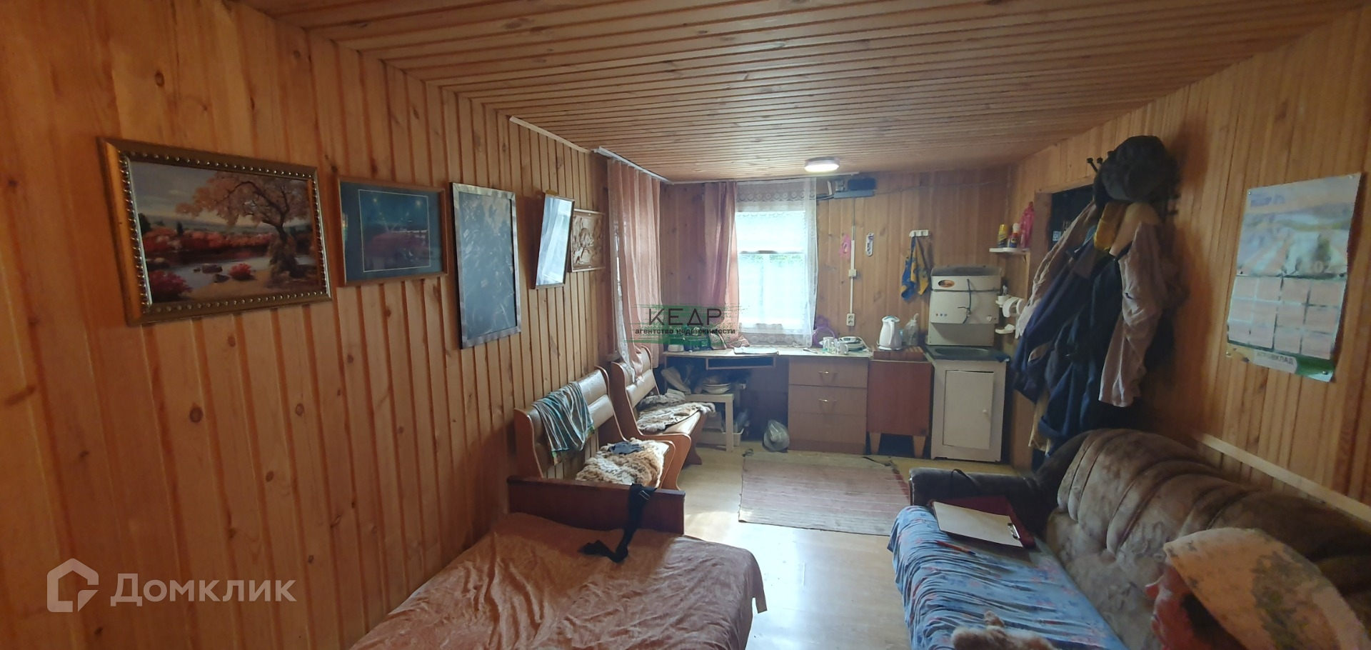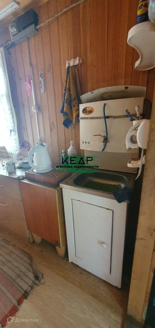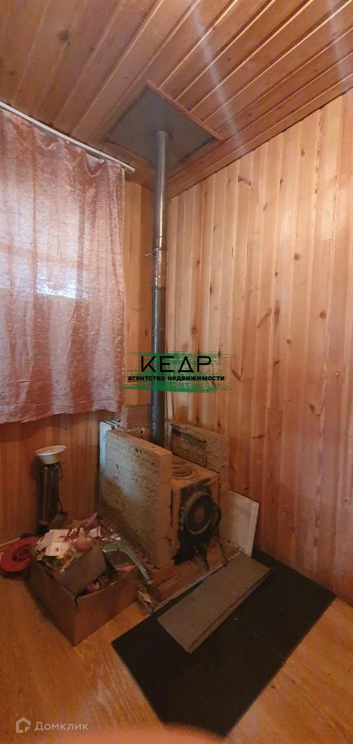 Дом 18 м2 внутри обшит деревянной вагонкой, установлена печь, умывальник с бойлером, установлены 3 деревянных окна, на пол уложен ламинат.