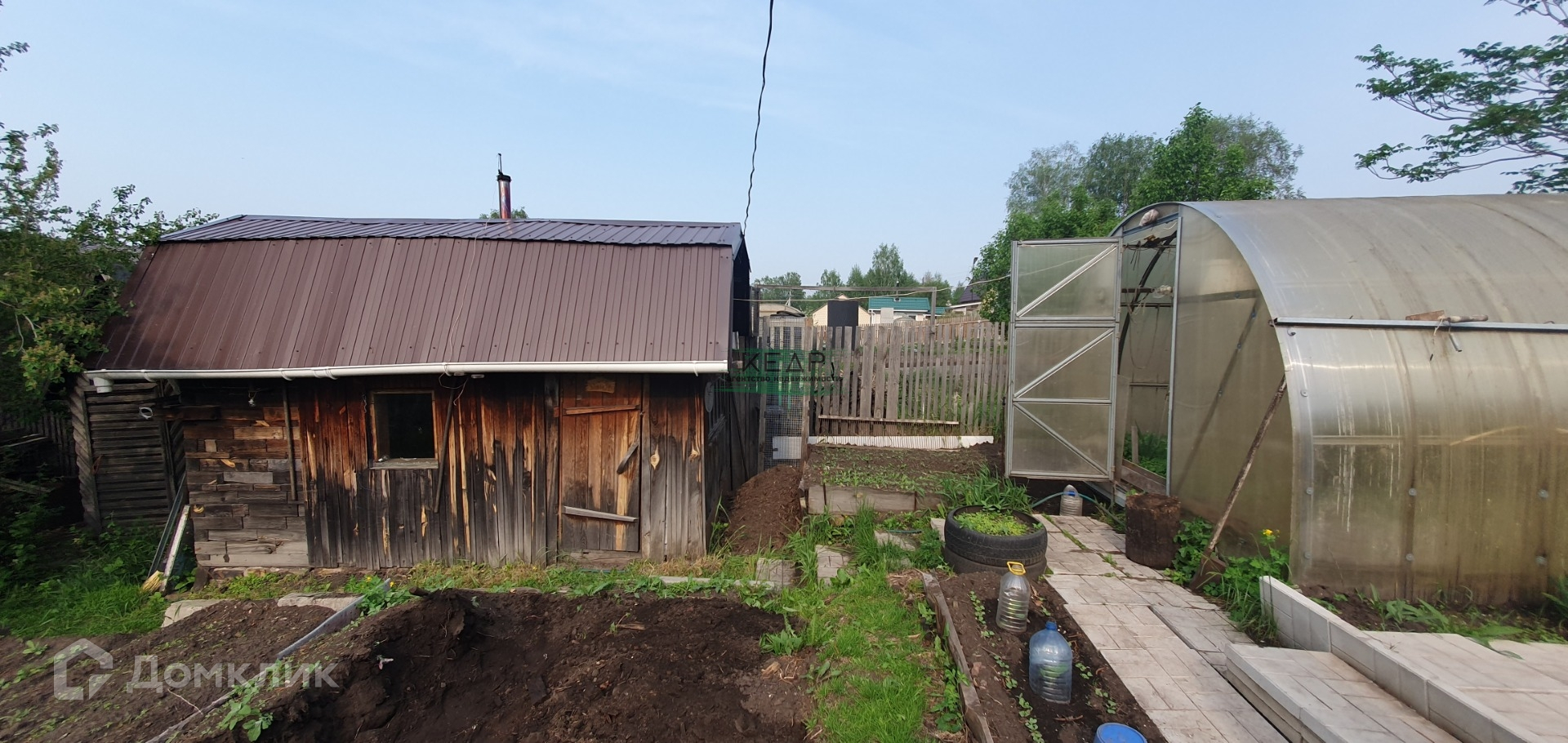Земля разработана под посадки, зеленые насаждения, ягоды, плодовые деревья, теплица (2,5*8), хозяйственные постройки, емкость для воды.