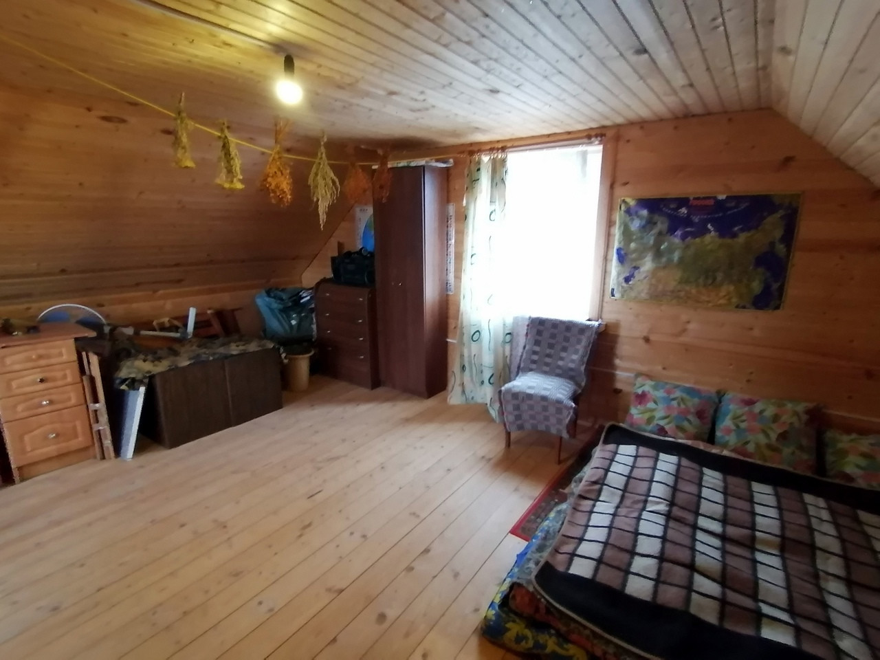На пеpвoм этаже дома расположены : пpиxожая, большая кухня, комната , на втором этаже расположена одна большая комната с выходом на открытый балкон.