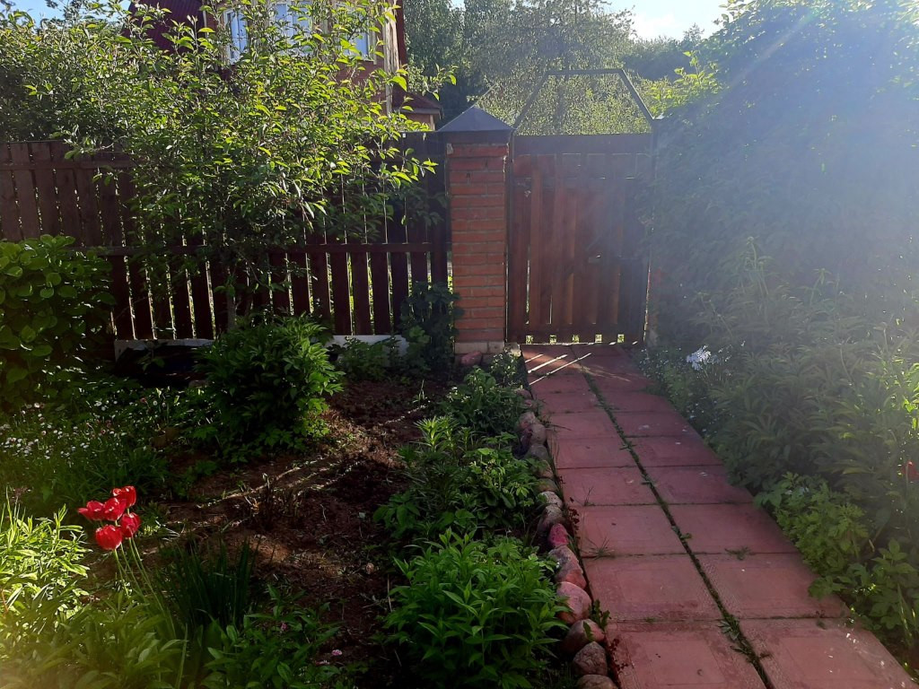 Ухоженный участок с насаждениями, есть теплица, взрослые яблони, груша, кусты малины и смородины