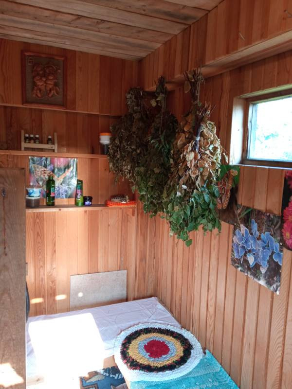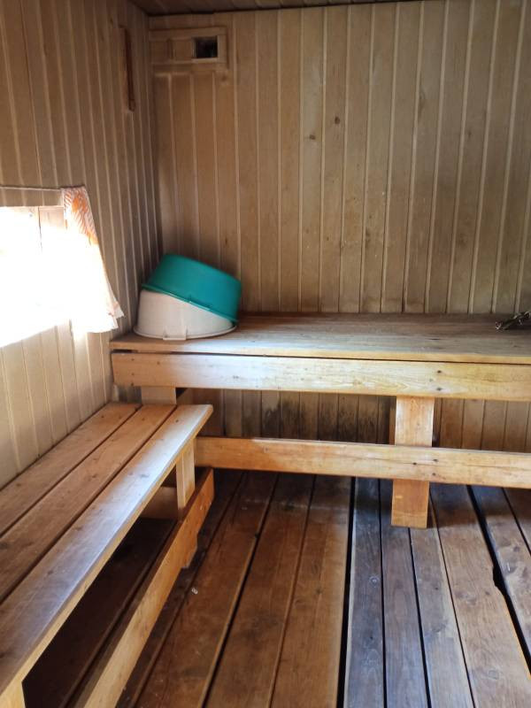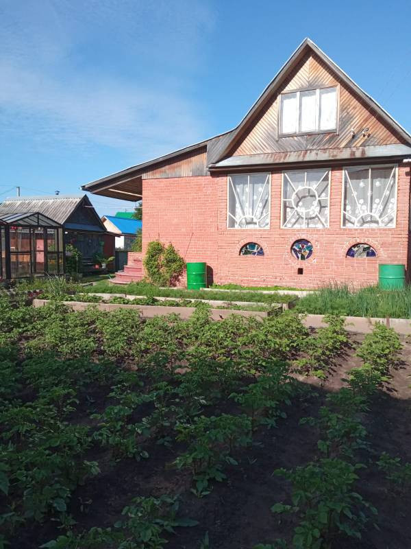 Есть добротная баня. Из посадок яблони, малина, смородина красная, черная, ежевика, крыжовник, вишня. Участок сухой, ухоженный, две теплицы, цветники. В летний период вода без перебоев, электроэнергия круглогодично.