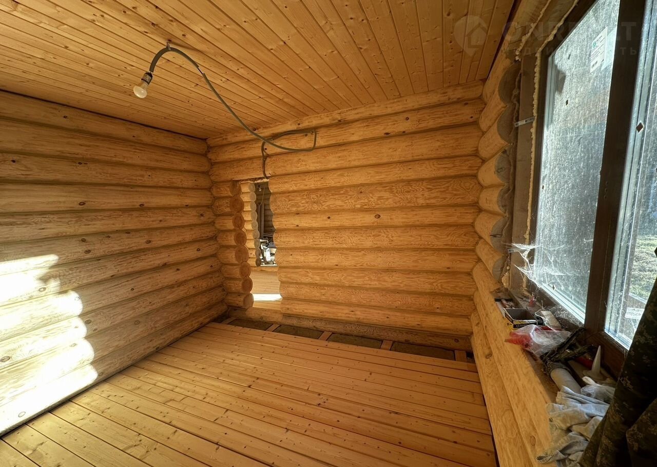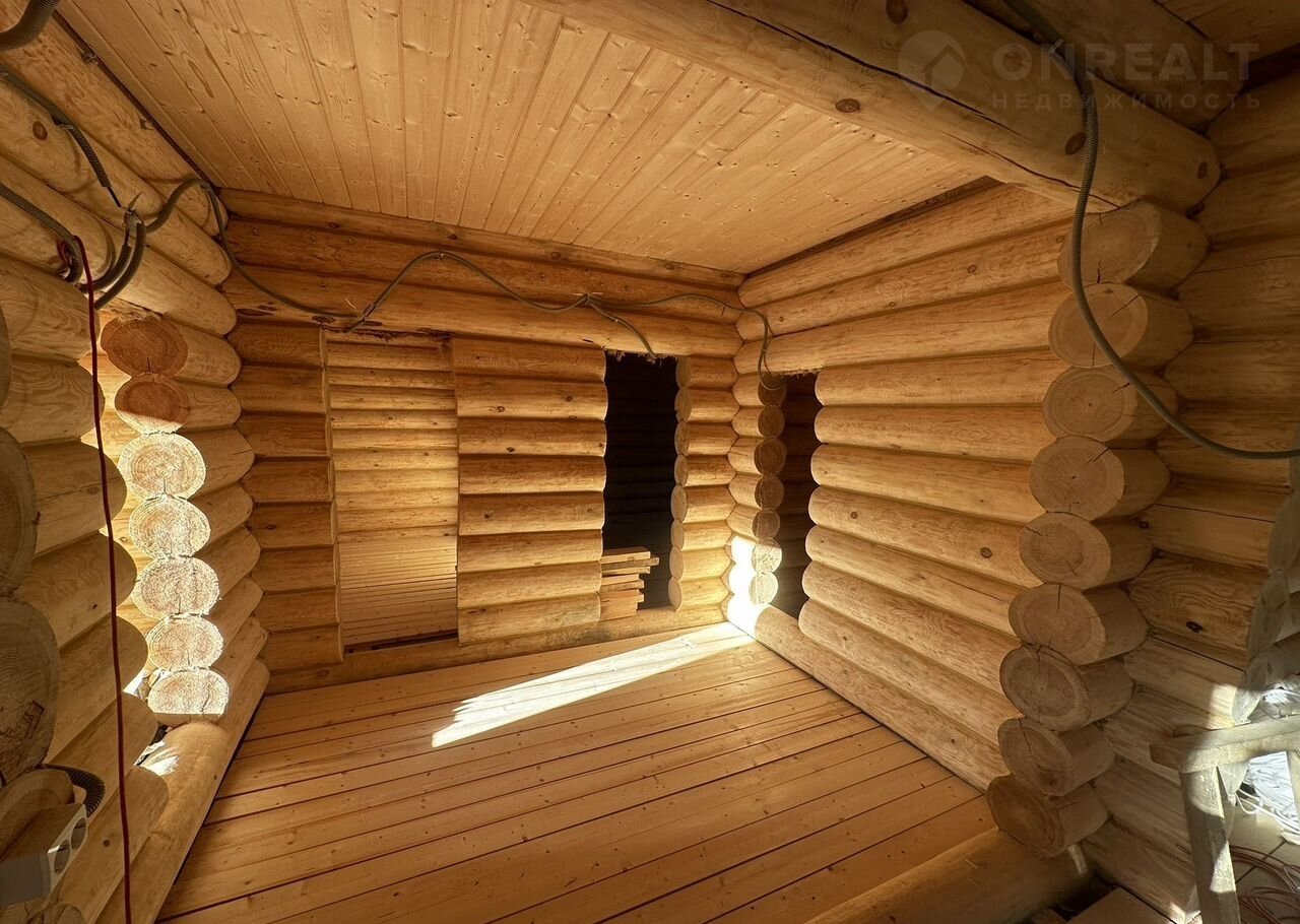 Сруб внутри дома тщательно отбелен и вычищен, стены отшлифованы до гладкости. Теплый шов обеспечивает дополнительную теплоизоляцию. Древесина обработана антисептиком и огнезащитным составом, что гарантирует безопасность и долговечность дома. После высыхания нанесен теплый шов изнутри, обеспечивая дополнительный комфор