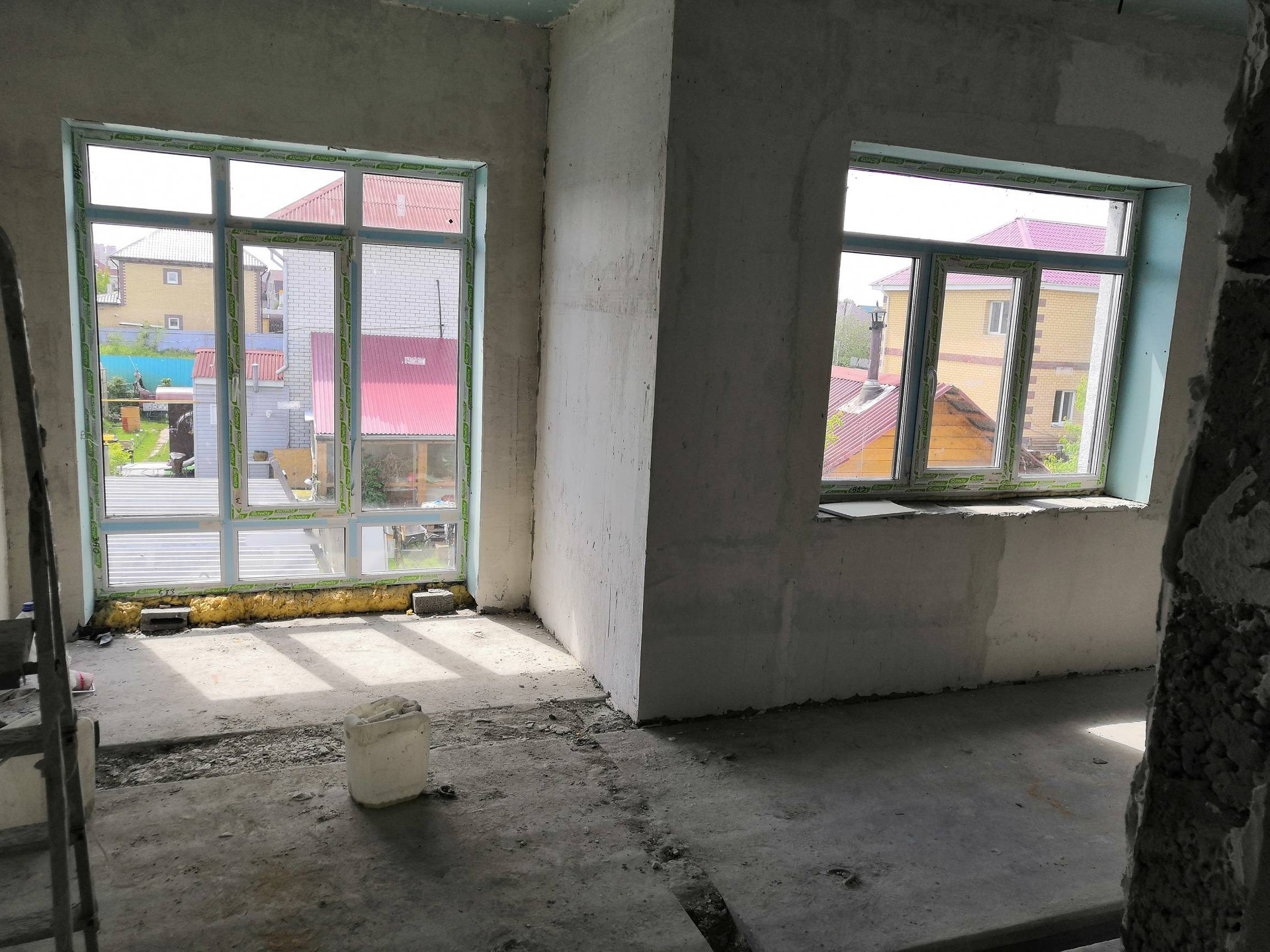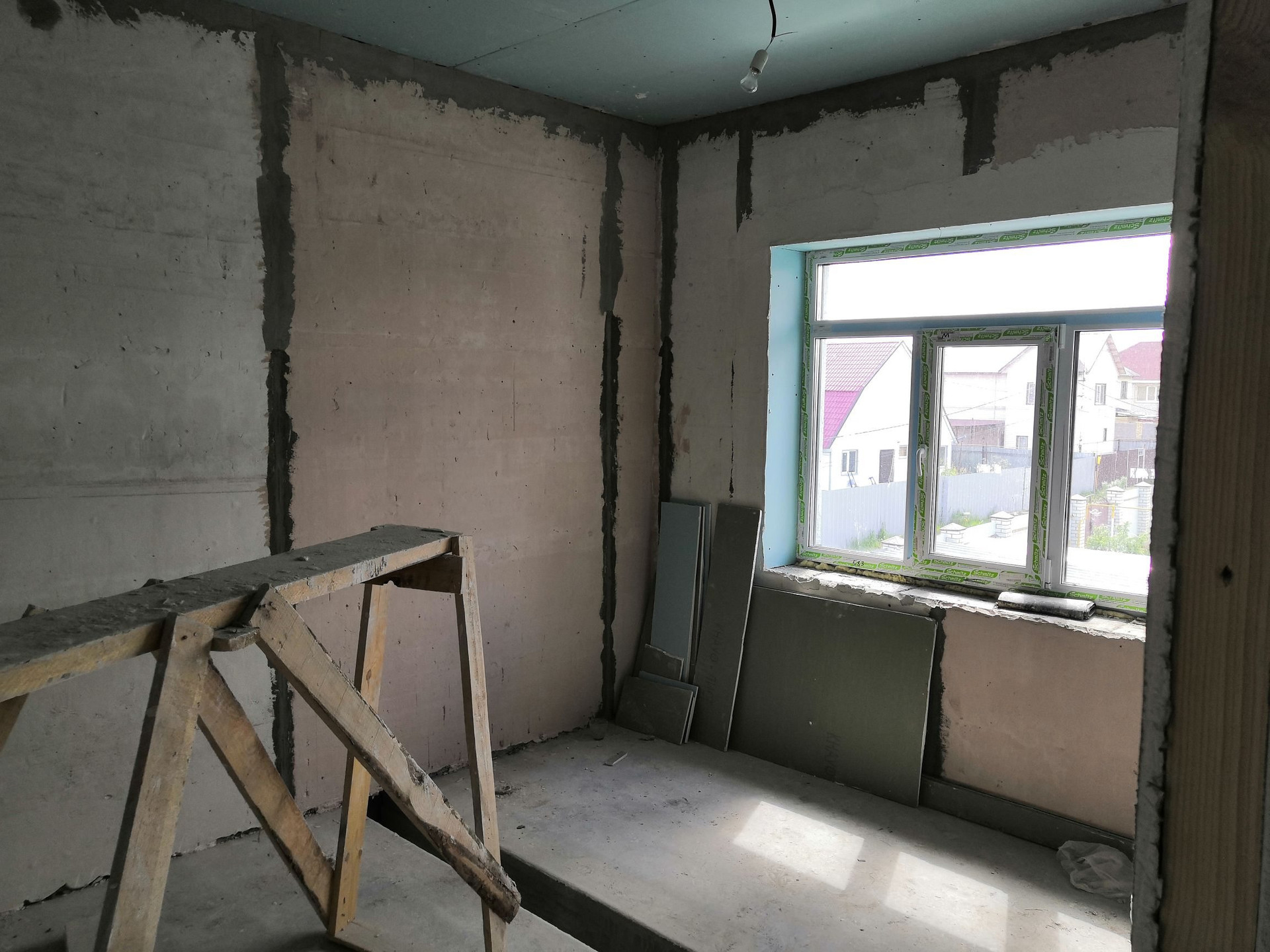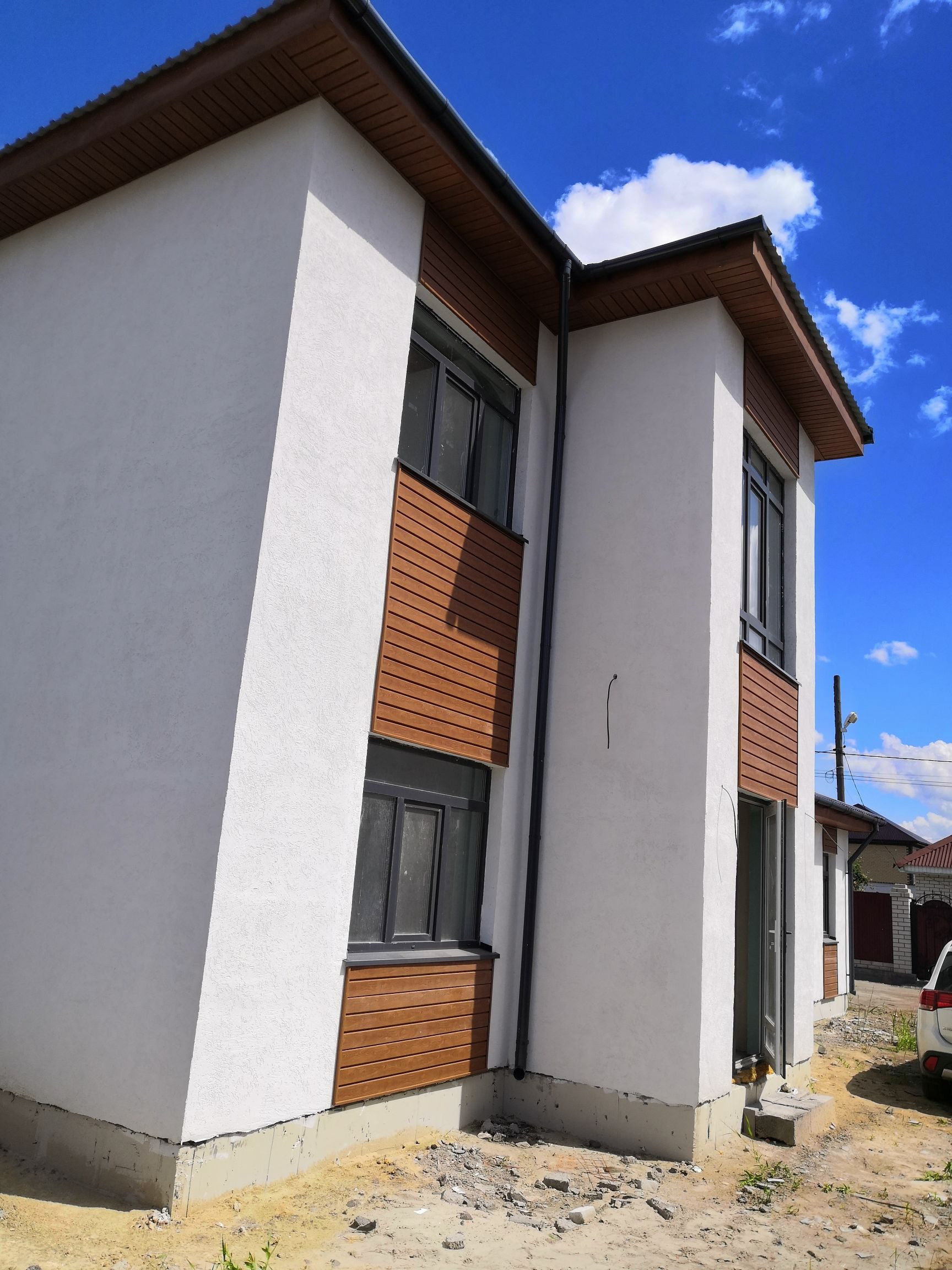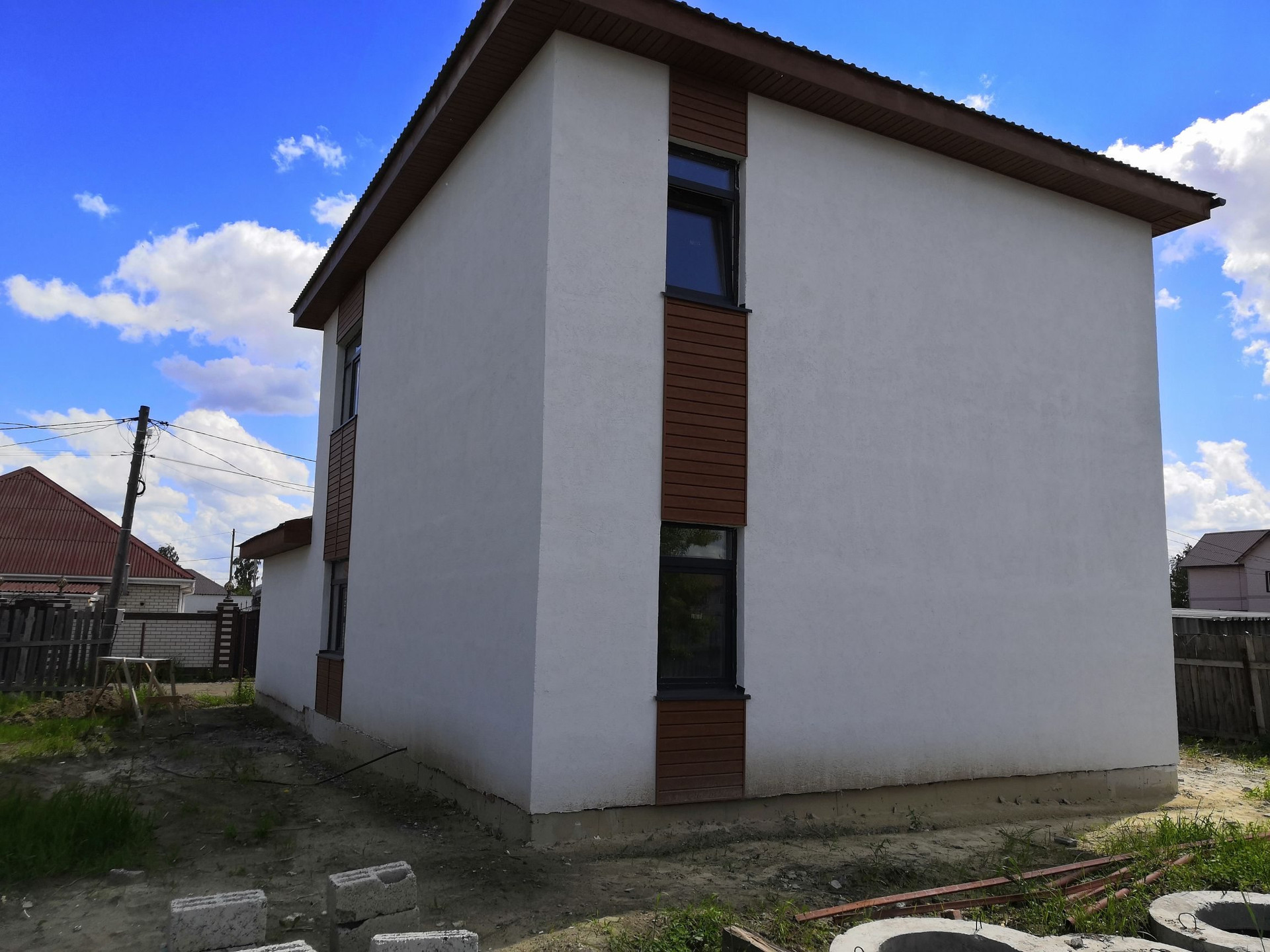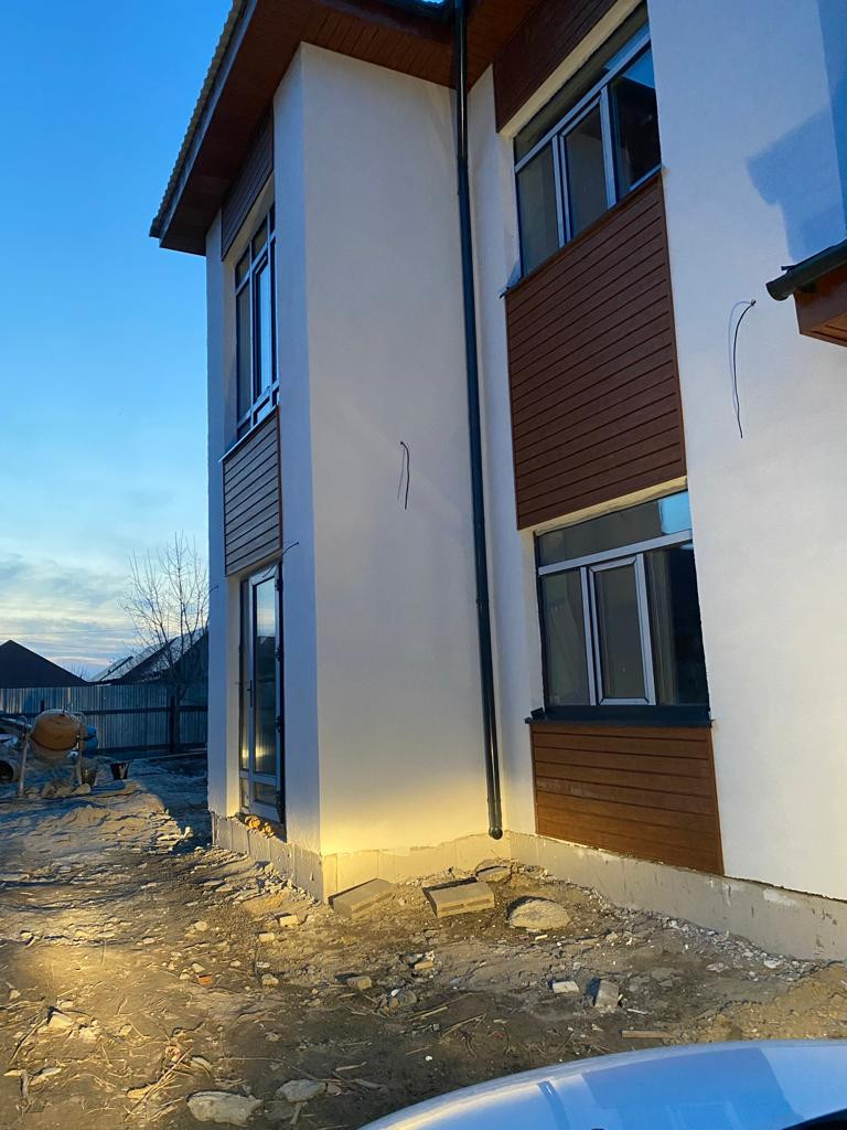 Дом в чёрновой отделке (стены в доме выравнены под маяки - идеально ровно, остается только покрасить стены или поклеить обои. Пол на 1 этаже залит и выровнен - можно класть плитку или другое покрытие. Пол на втором этаже нуждается в выравнивании финишным ровнителем или бетоном)