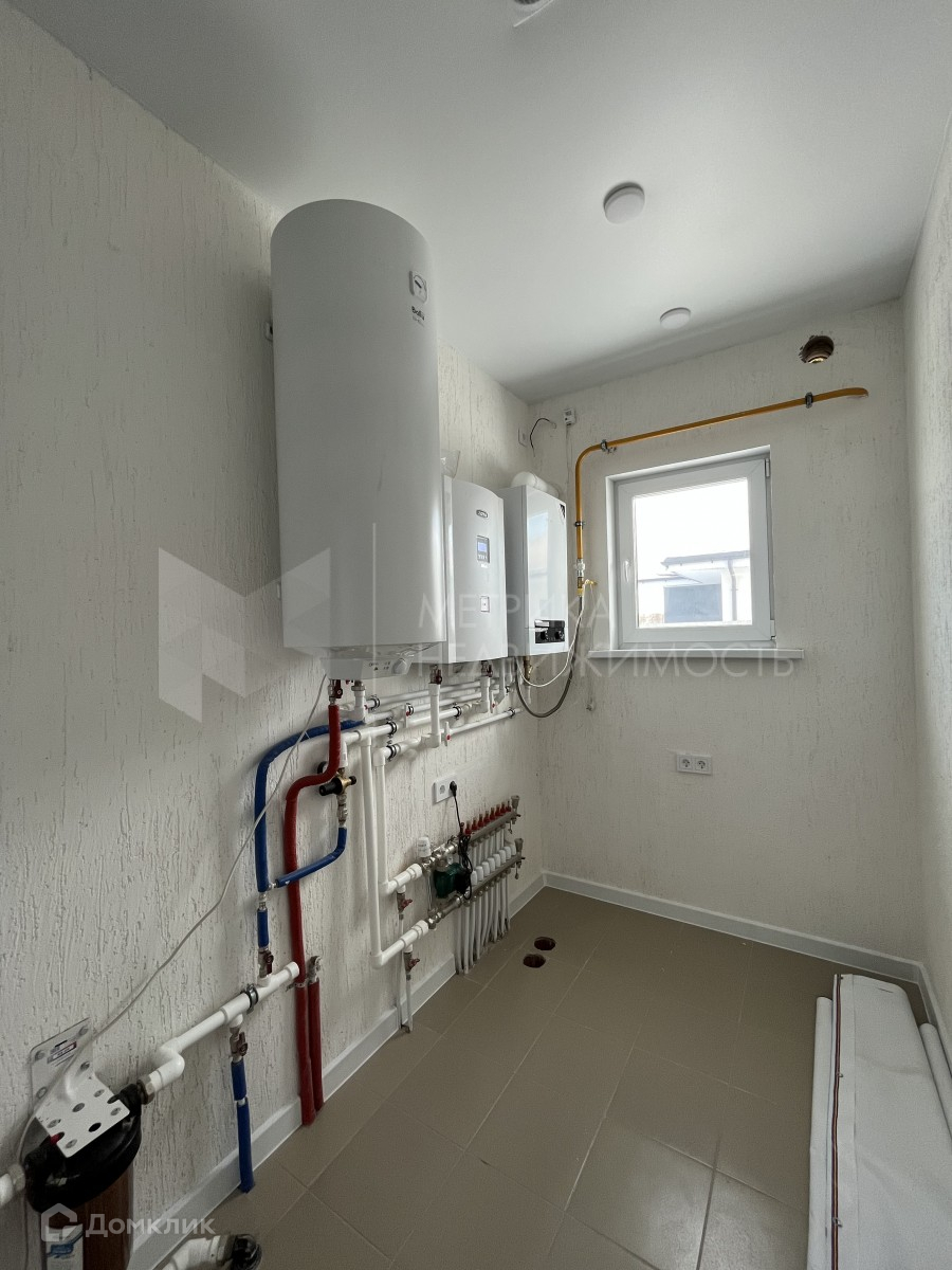 Фундамент - монолитная плита, стены 400 мм поревит, минвата, штукатурка. Кровля утеплена 200 мм каменной ватой, металлочерепица. Вода- собственная скважина, Газовый и электро котел. Проведён тёплый пол по всей площади жилого пространства. Кухня гостиная с выходом на террасу, три спальни, 2 санузла, котельная, гардеробная, гараж.