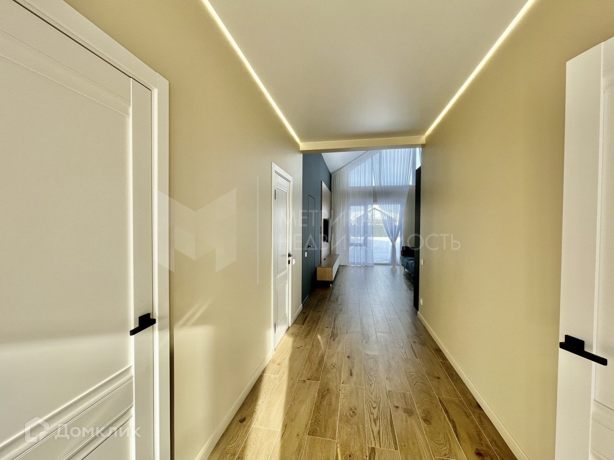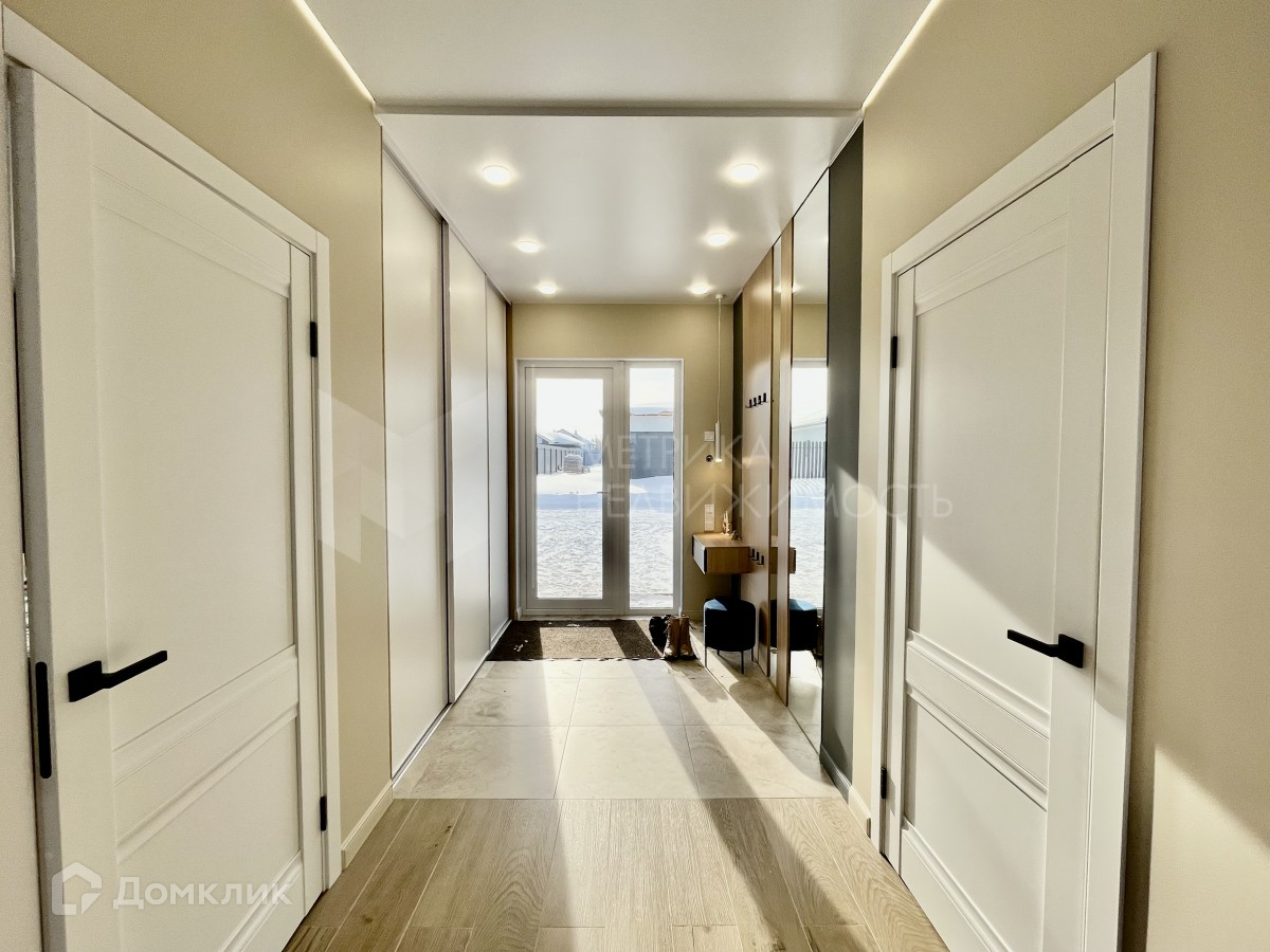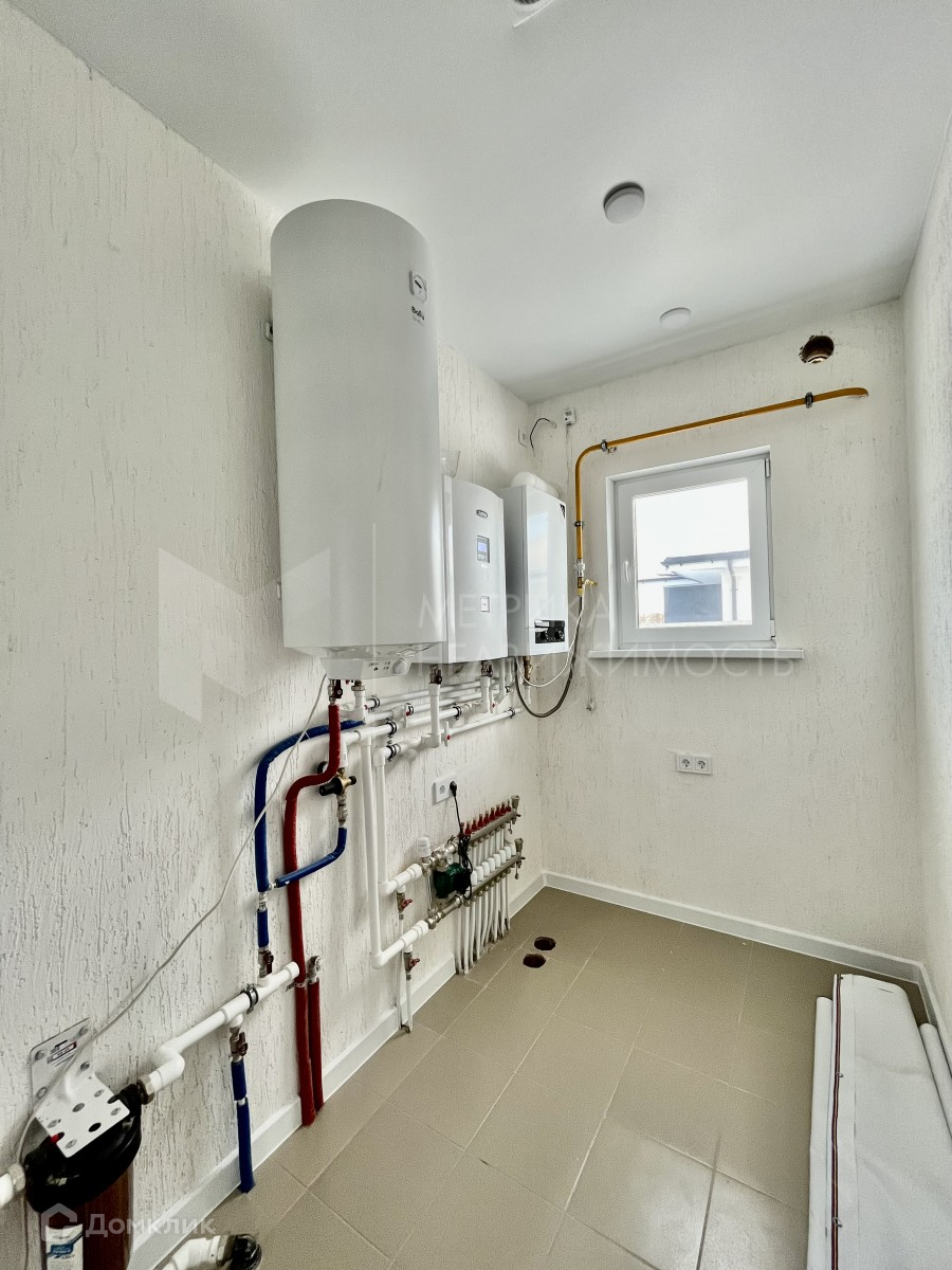 Фундамент - монолитная плита - 300 мм, стены 400 мм поревит, минвата, штукатурка, дерево. Кровля утеплена 200 мм каменной ватой, металлочерепица. Вода- собственная скважина, Газовый и электро котел. Проведён тёплый пол по всей площади жилого пространства. Кухня-гостиная с выходом на террасу и вторым светом, три спальни, 2 санузла, котельная, гардеробная, гараж.