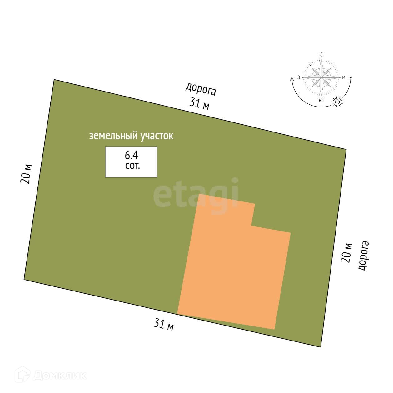 Площадь участка 6.4 сот.