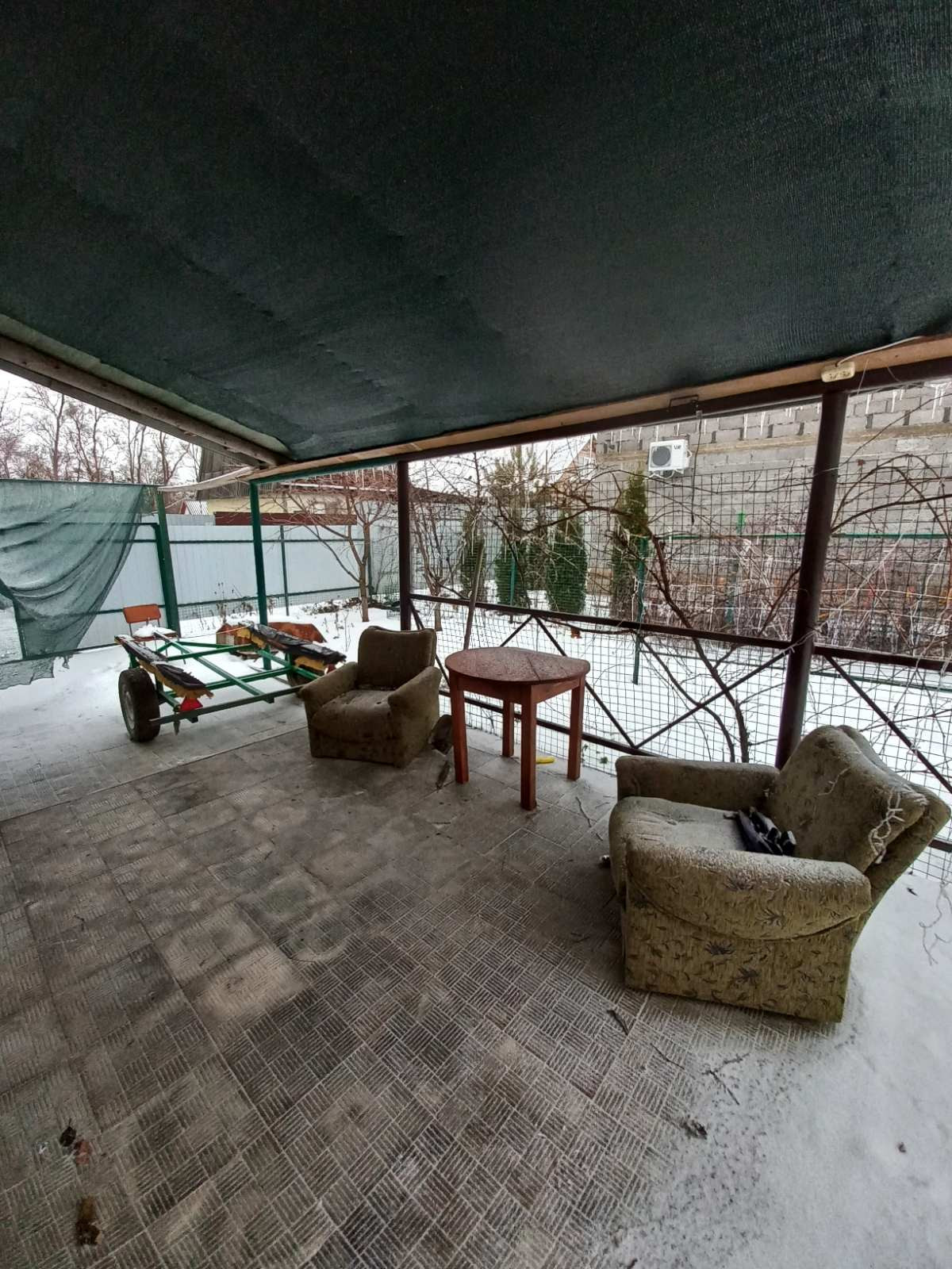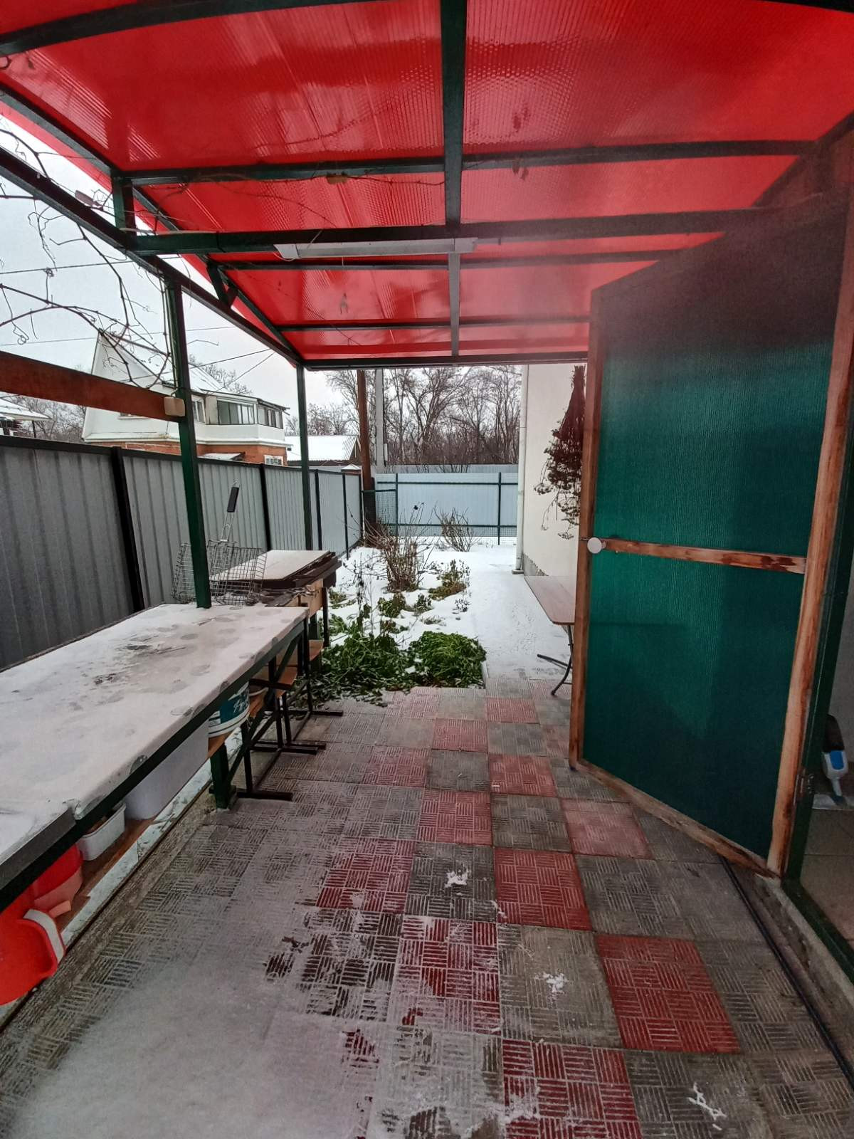 Крытая веранда-зона отдыха с мангалом и раковиной, слив.