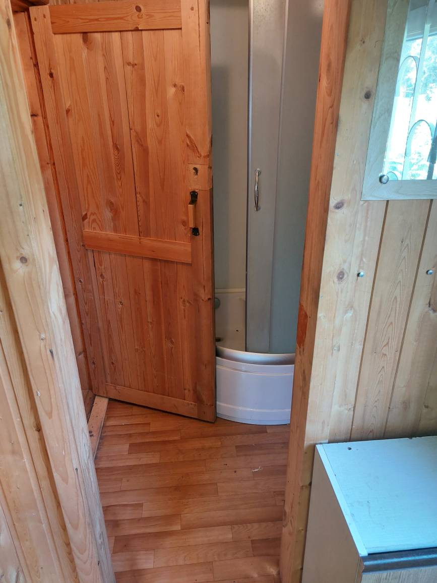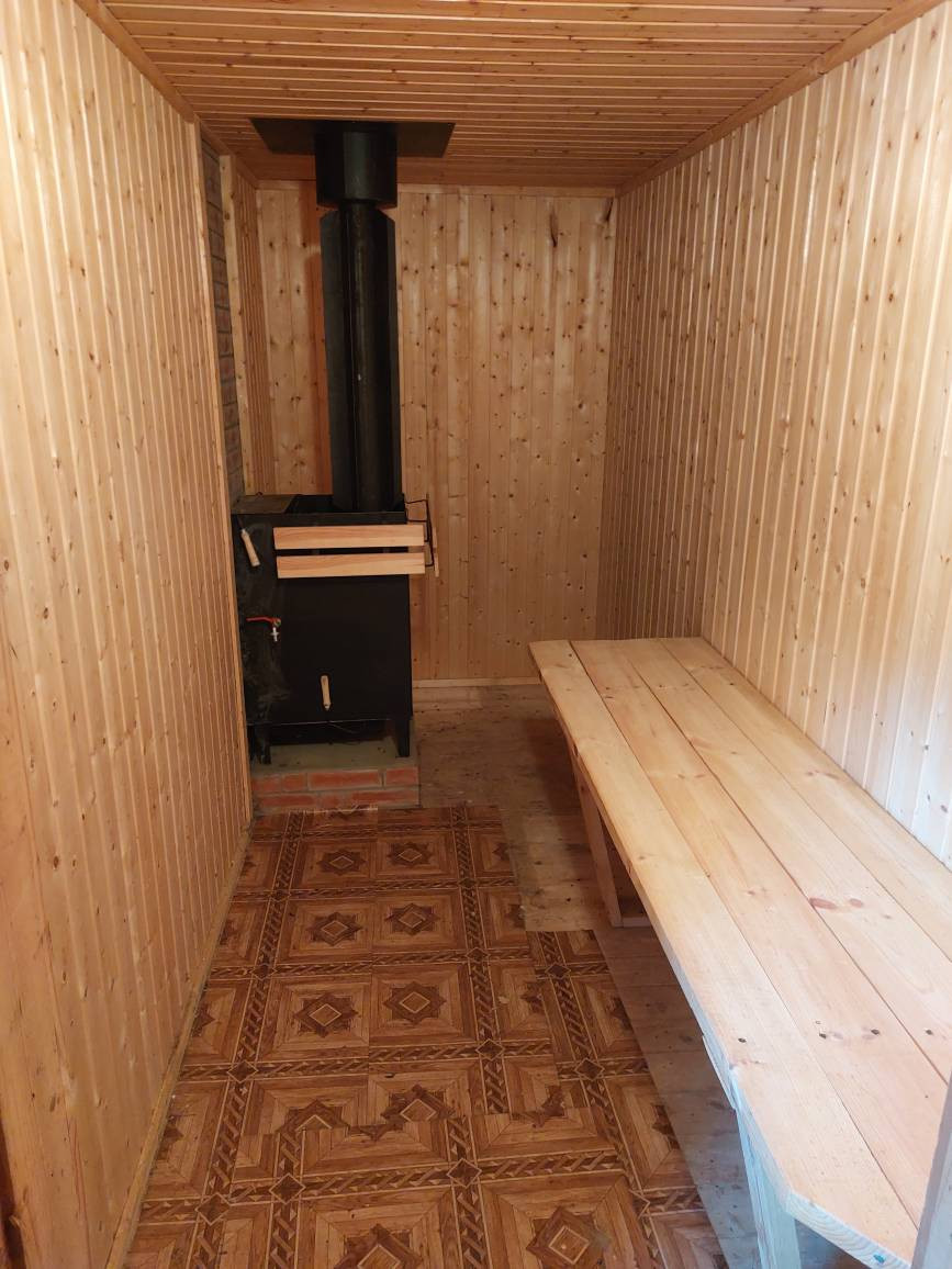 Баня: 4х5м, построена из бревна 14\20см. Прихожая с окном, комната отдыха с окном, парилка, душевая. В бане установлены: дровяная печь, душевая кабина, бойлер. Имеется раскладной диван-кровать. Можно использовать как гостевой домик.