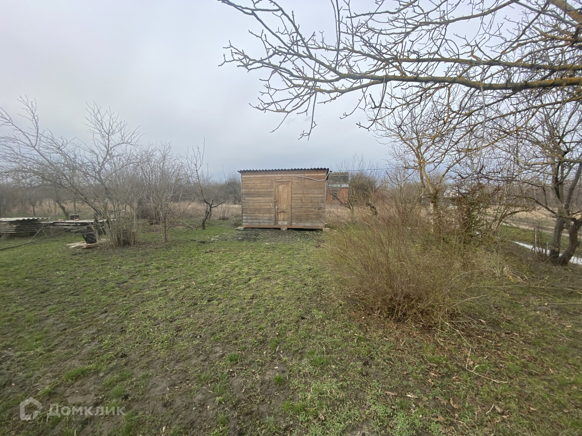 На участке стоит вагончик (подсобка), заведен свет, две скважины. Рядом с снт находится остановка электрички, 30 минут и вы в Краснодаре.Отличное место для загородного домика.  ID объекта: 689602