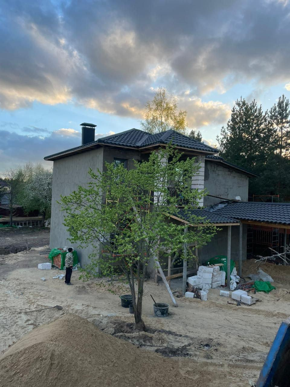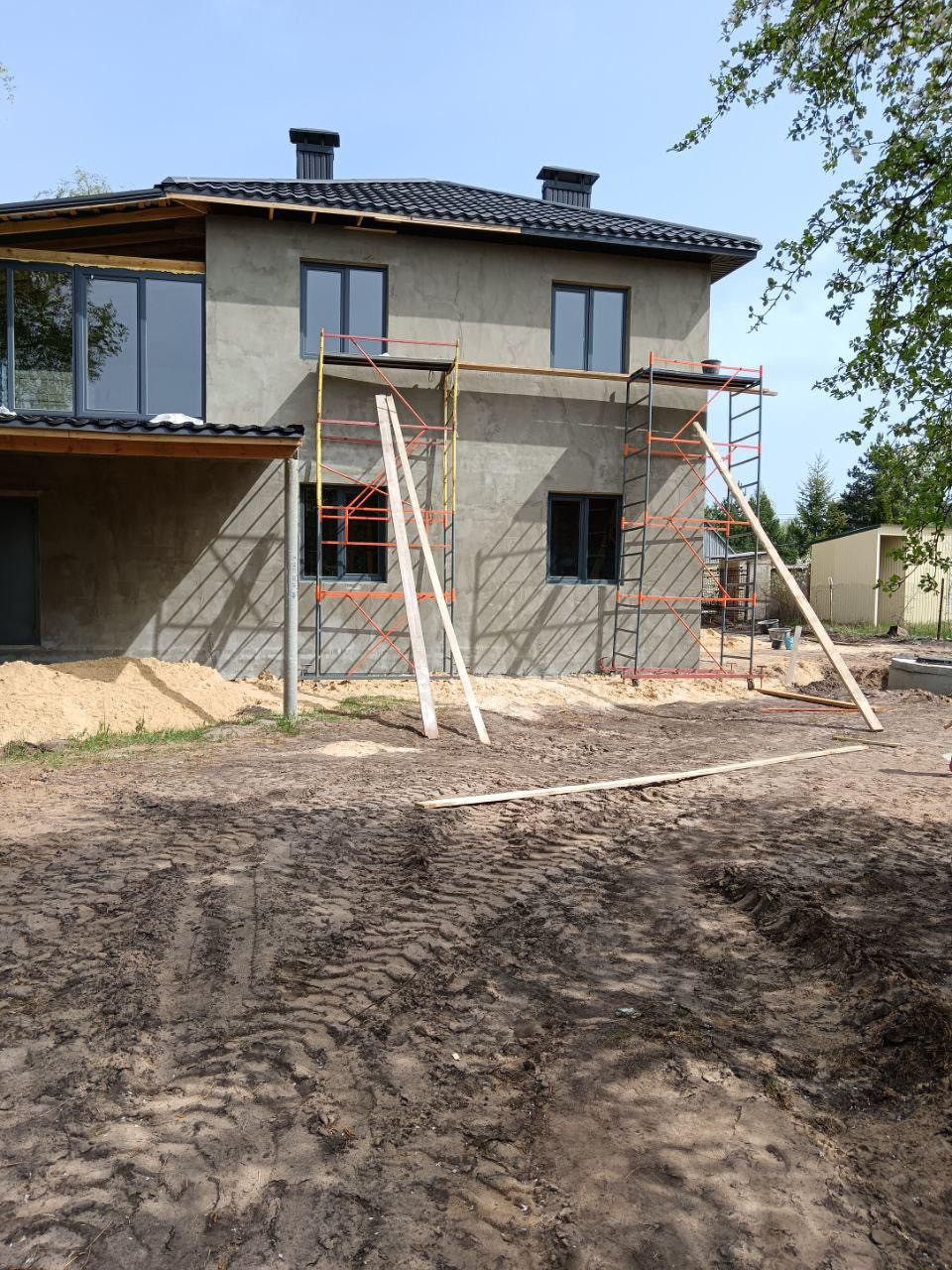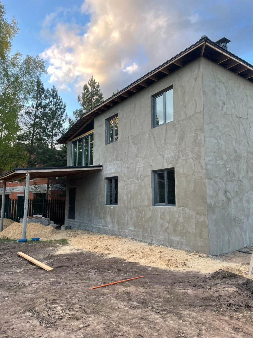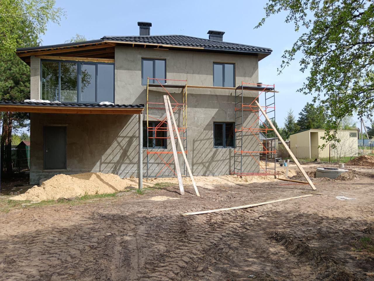Строение этого дома выполнено с учетом самых современных технологий и требований к комфорту. Толстые стены обеспечат сохранение тепла зимой и прохлады летом. Крыша выполнена из прочной черной галандии, а окна из антрацита не только эстетичны, но и защищают от излишнего солнечного света.