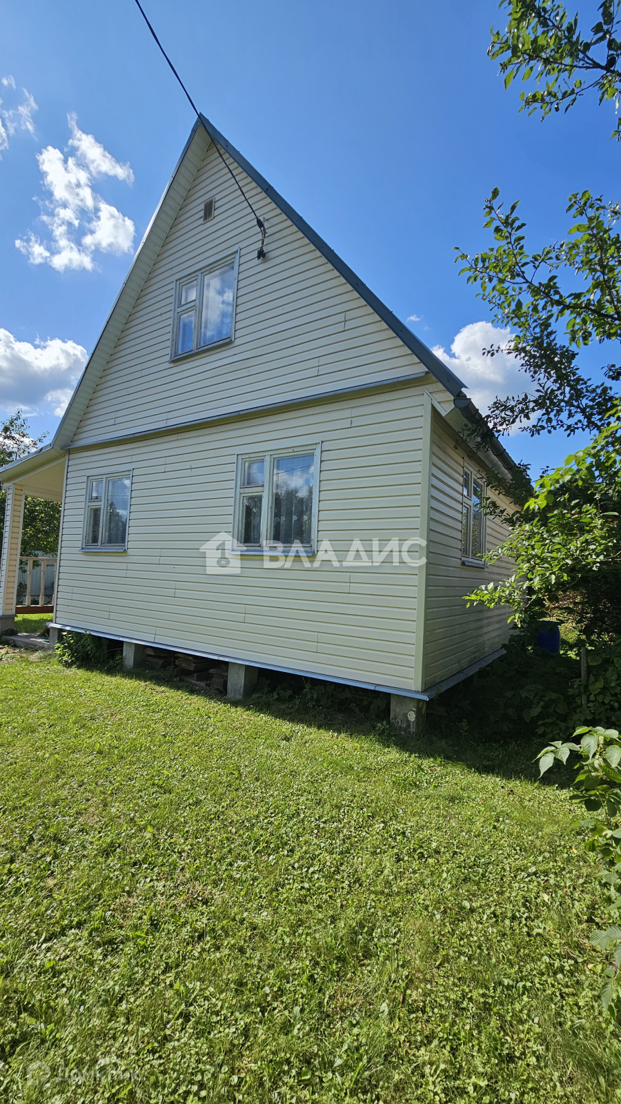 Дом установлен на столбчатом фундаменте.