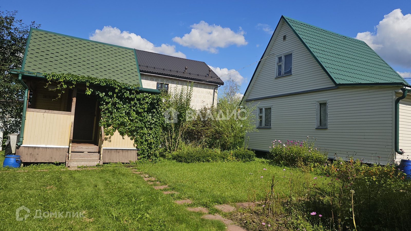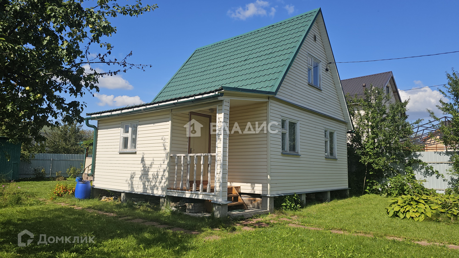 На ровном, ухоженном участке площадью 6,17 сотки расположился уютной каркасный дом.