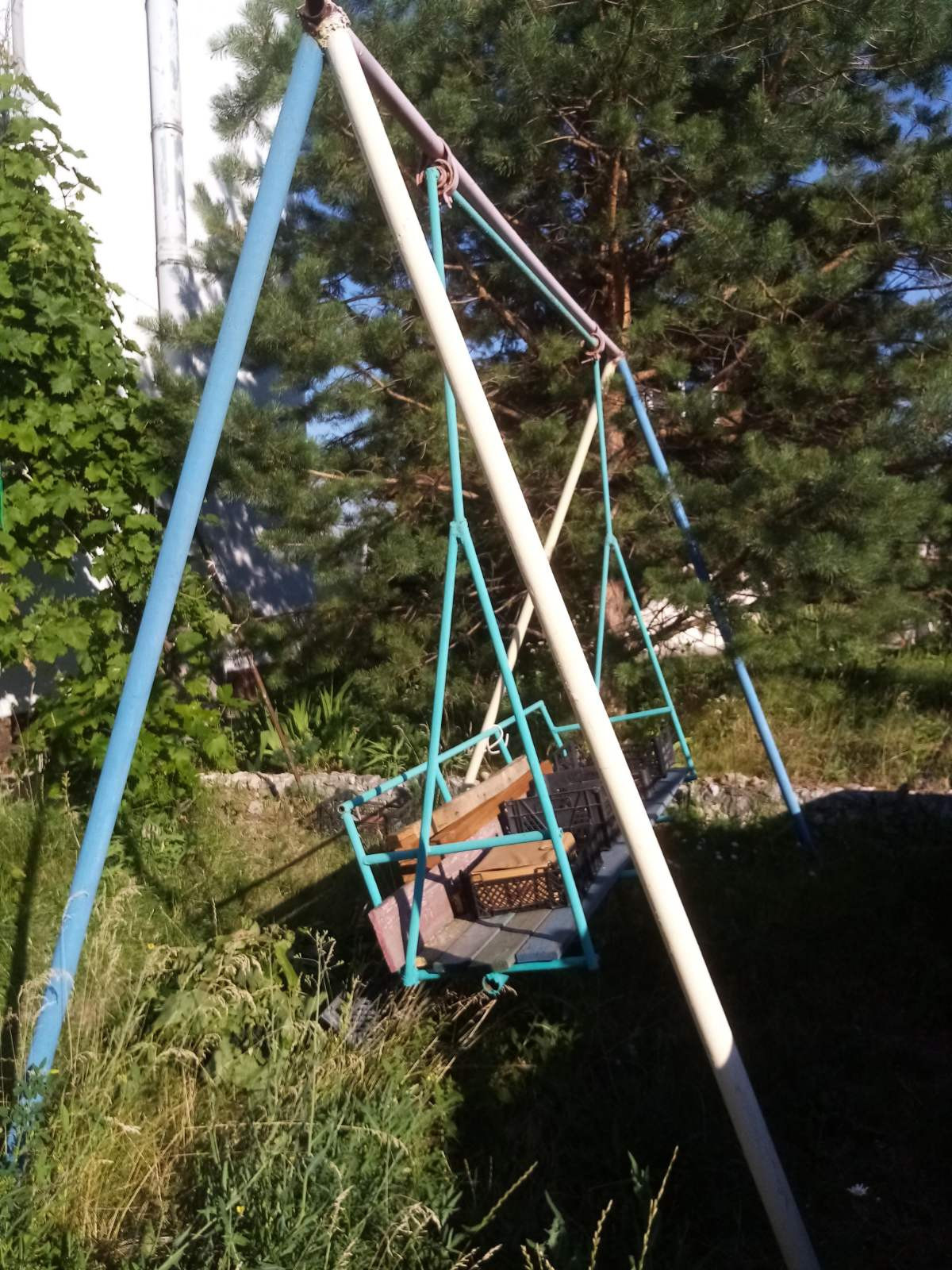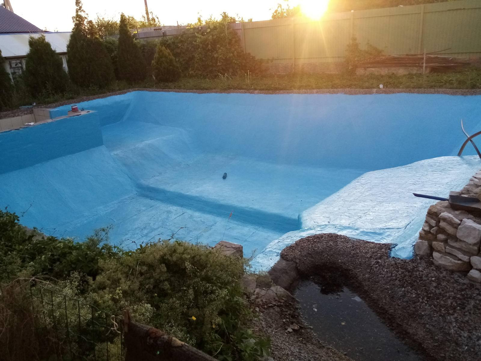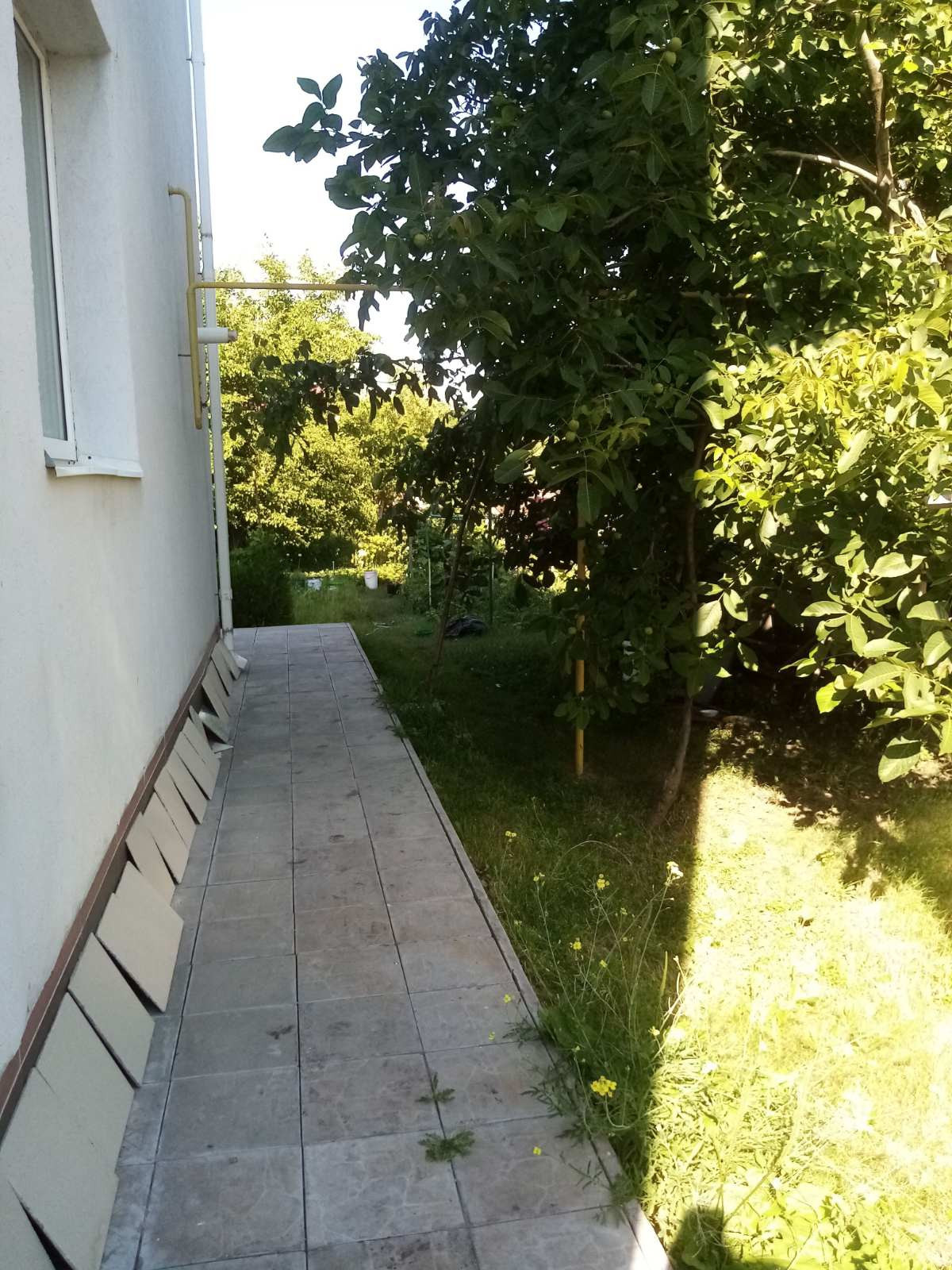 Мы объединили два участка - на одном был построен коттедж и бассейн, на другом сад/огород. На участке имеются плодовые деревья - грецкие орехи, яблони, вишни, слива, калина, смородина, крыжовник, клубника, виноград, малина (жёлтая, красная, чёрная), а также место для посадки однолетних овощных культур.