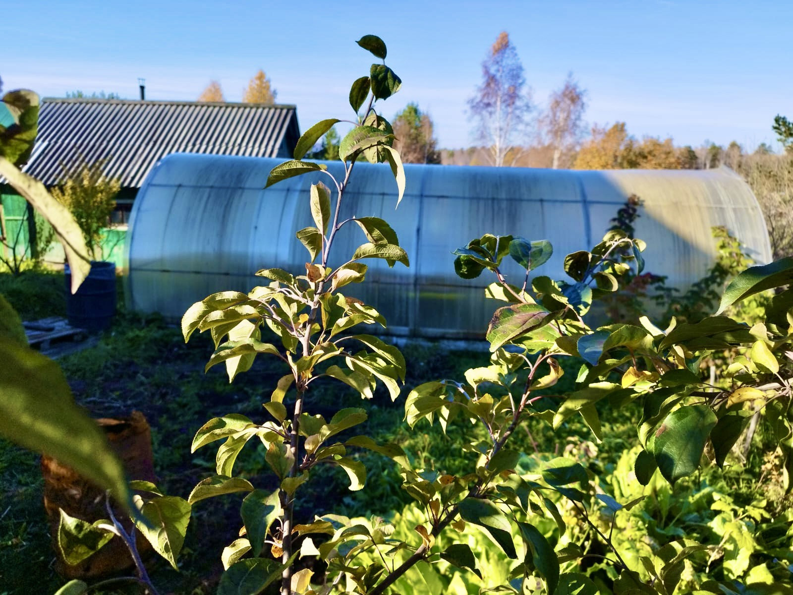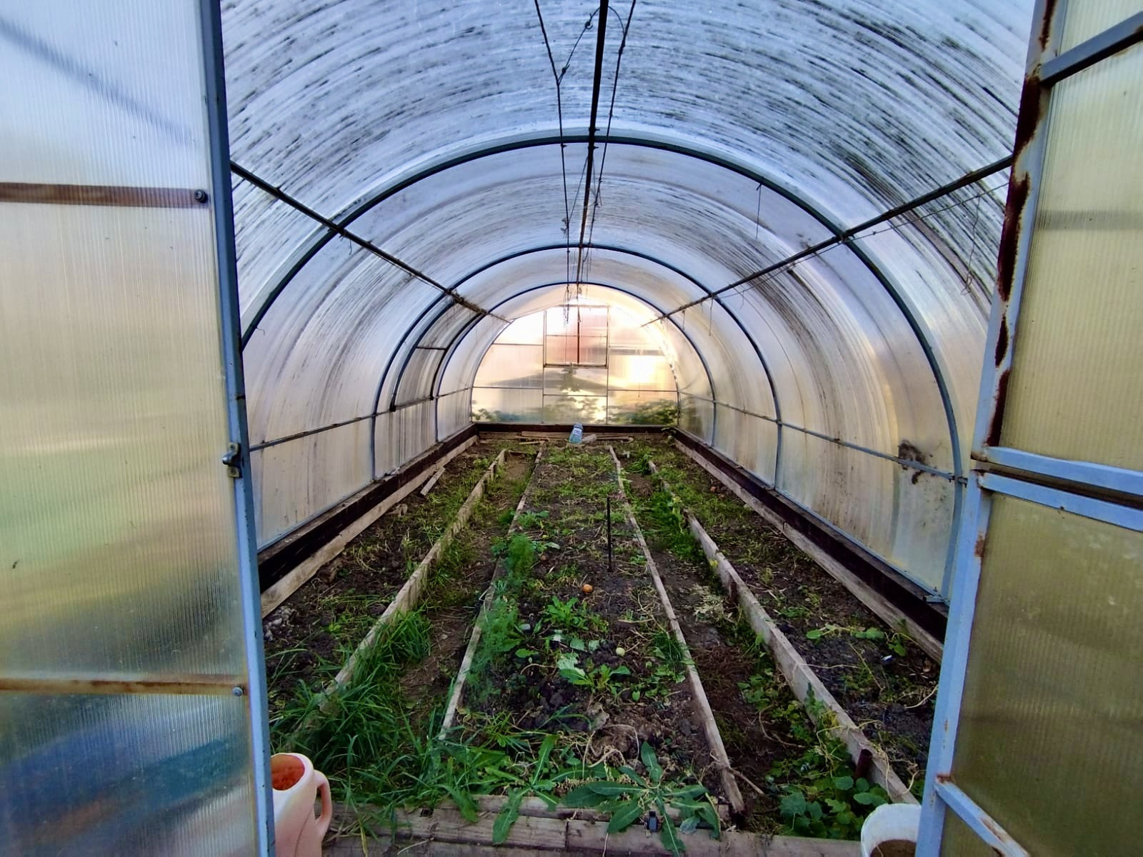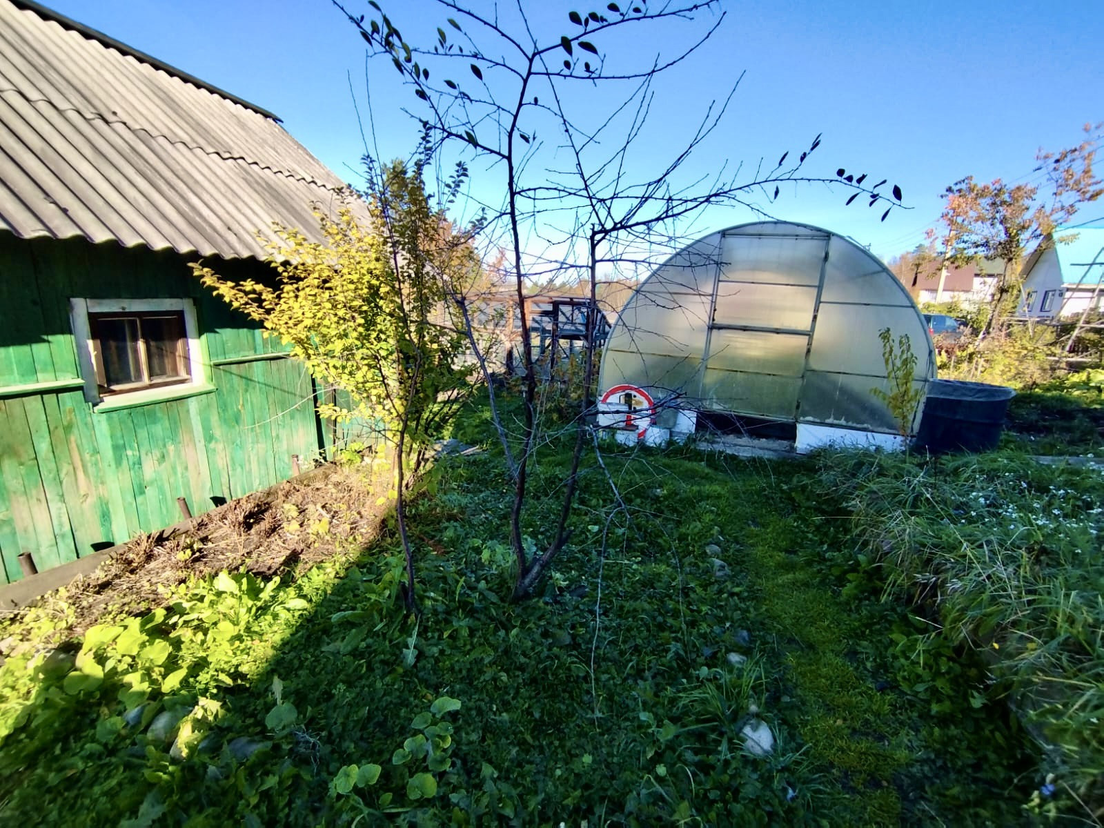 - на участке имеется теплица из поликарбоната и вторая из деревянных рам, сарай( дровяник), туалет и Летняя веранда;