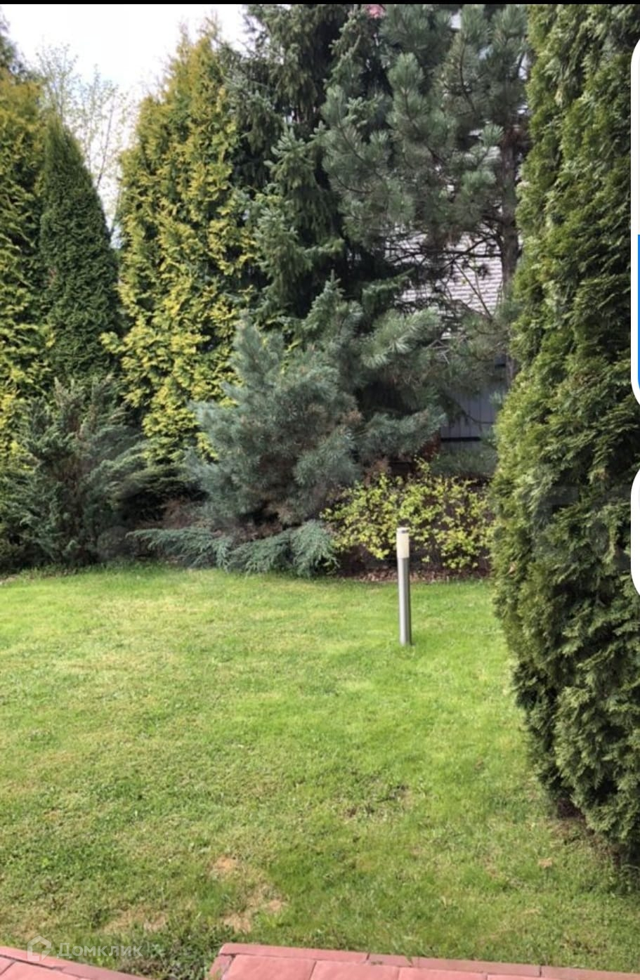 Земельный участок ухожен с ландшафтным дизайном - в основном вечнозеленые насаждения, рододендроны и великолепный  кедр.