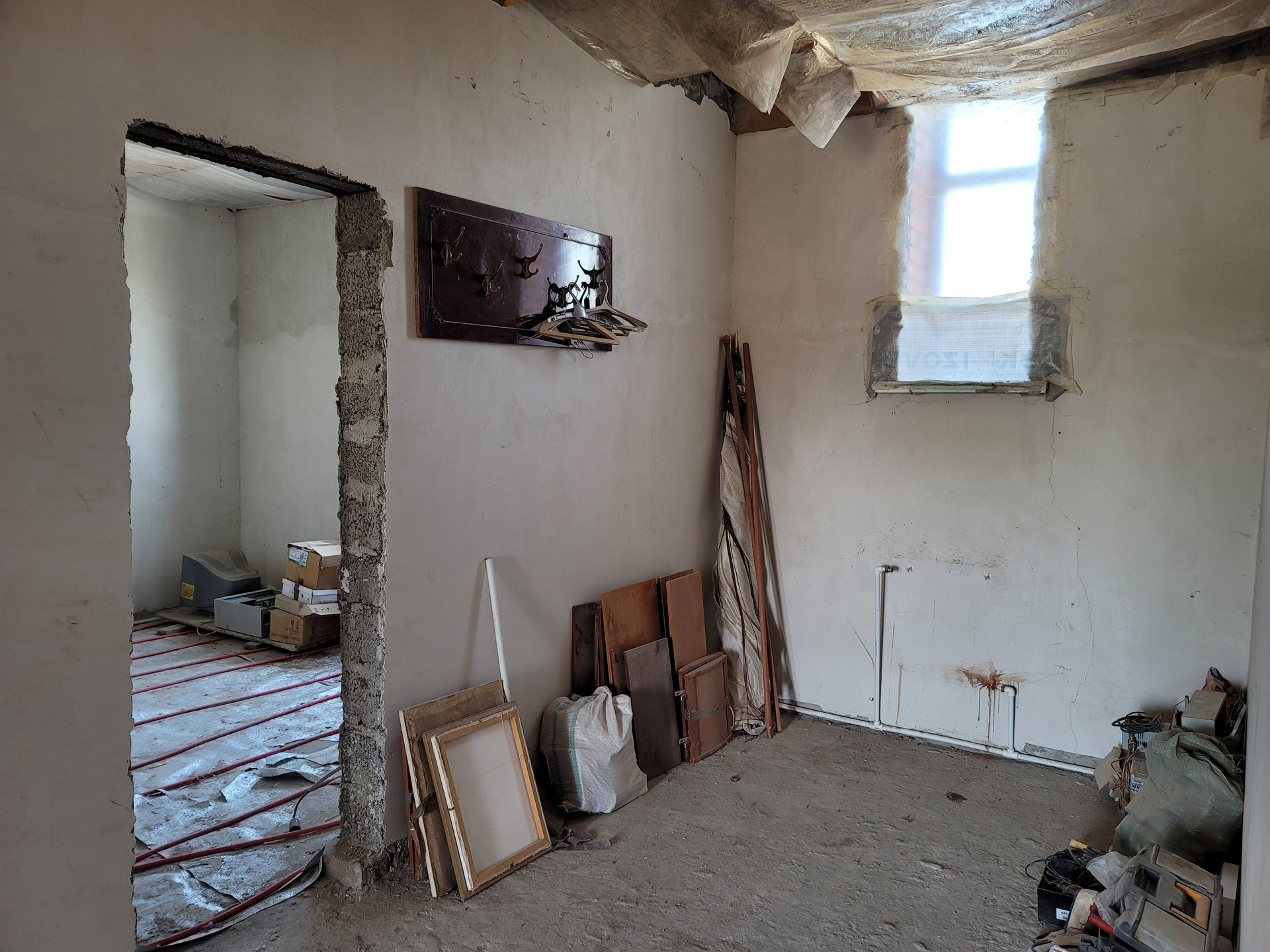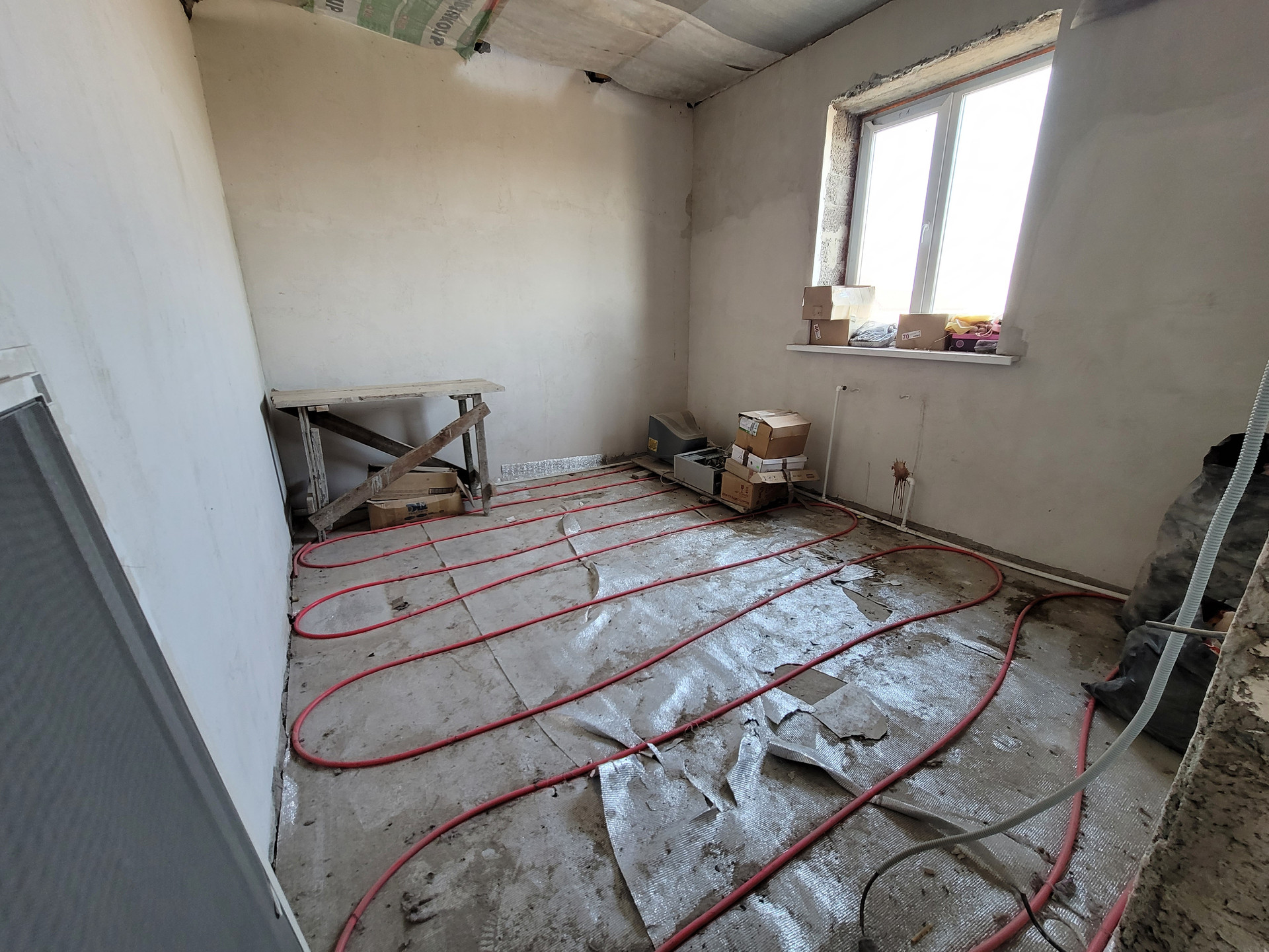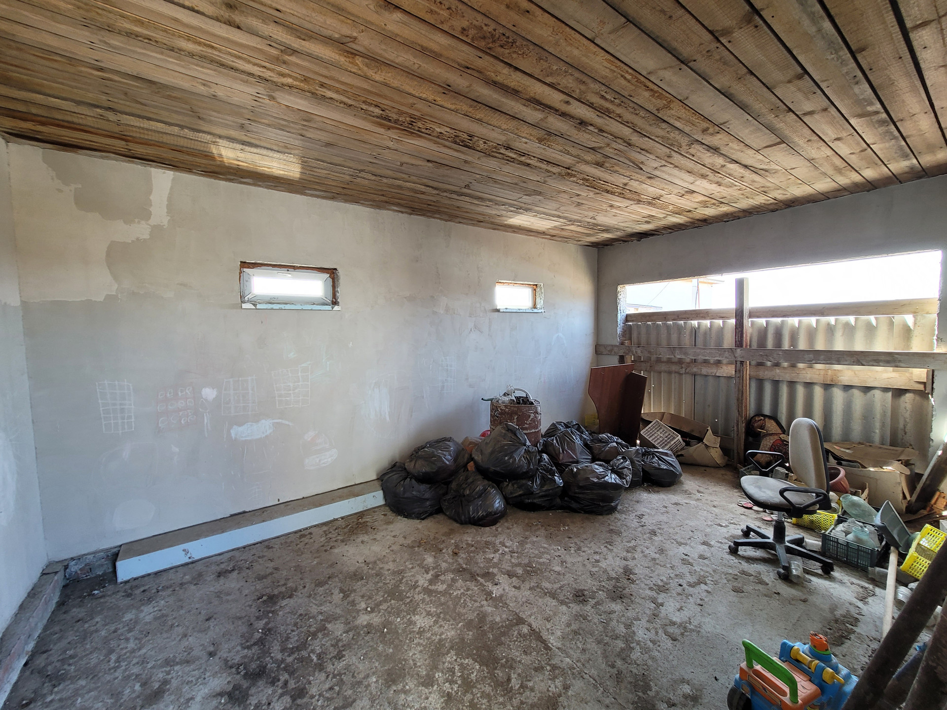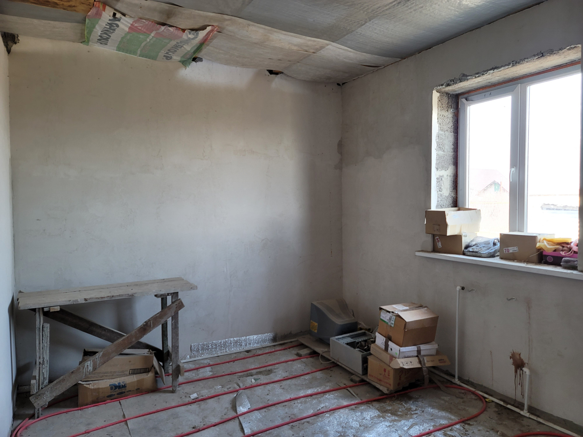 первый этаж предчистовая отделка: стены выровнены и готовы под финишную отделку, установлены стеклопакеты, сделана электрическая разводка;