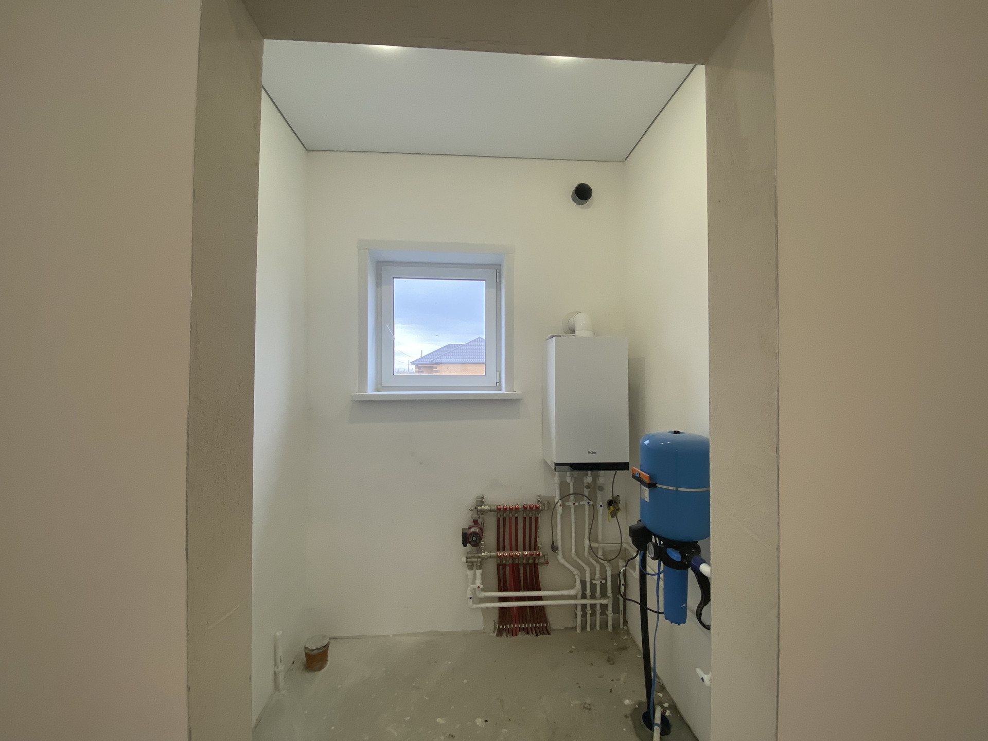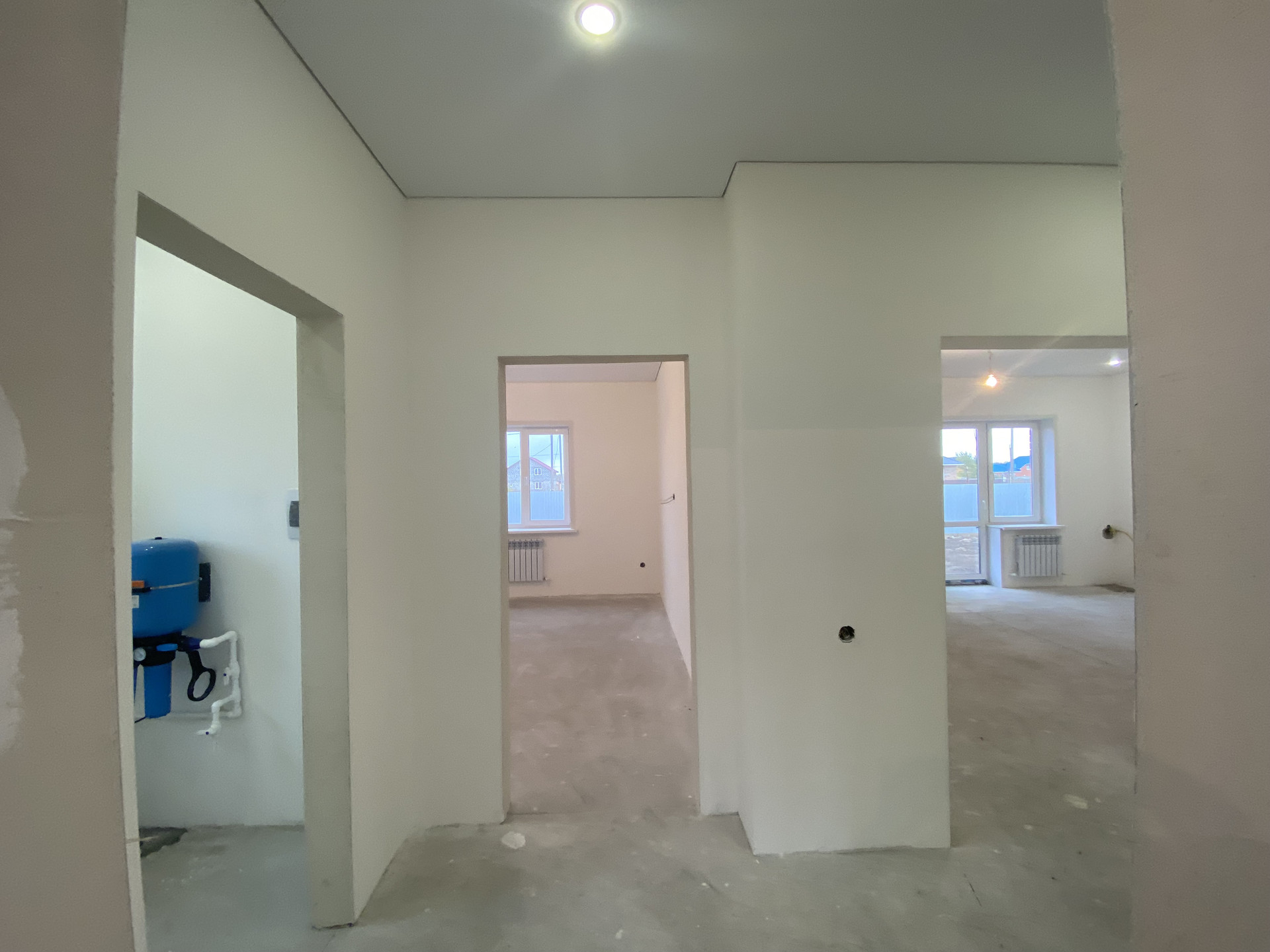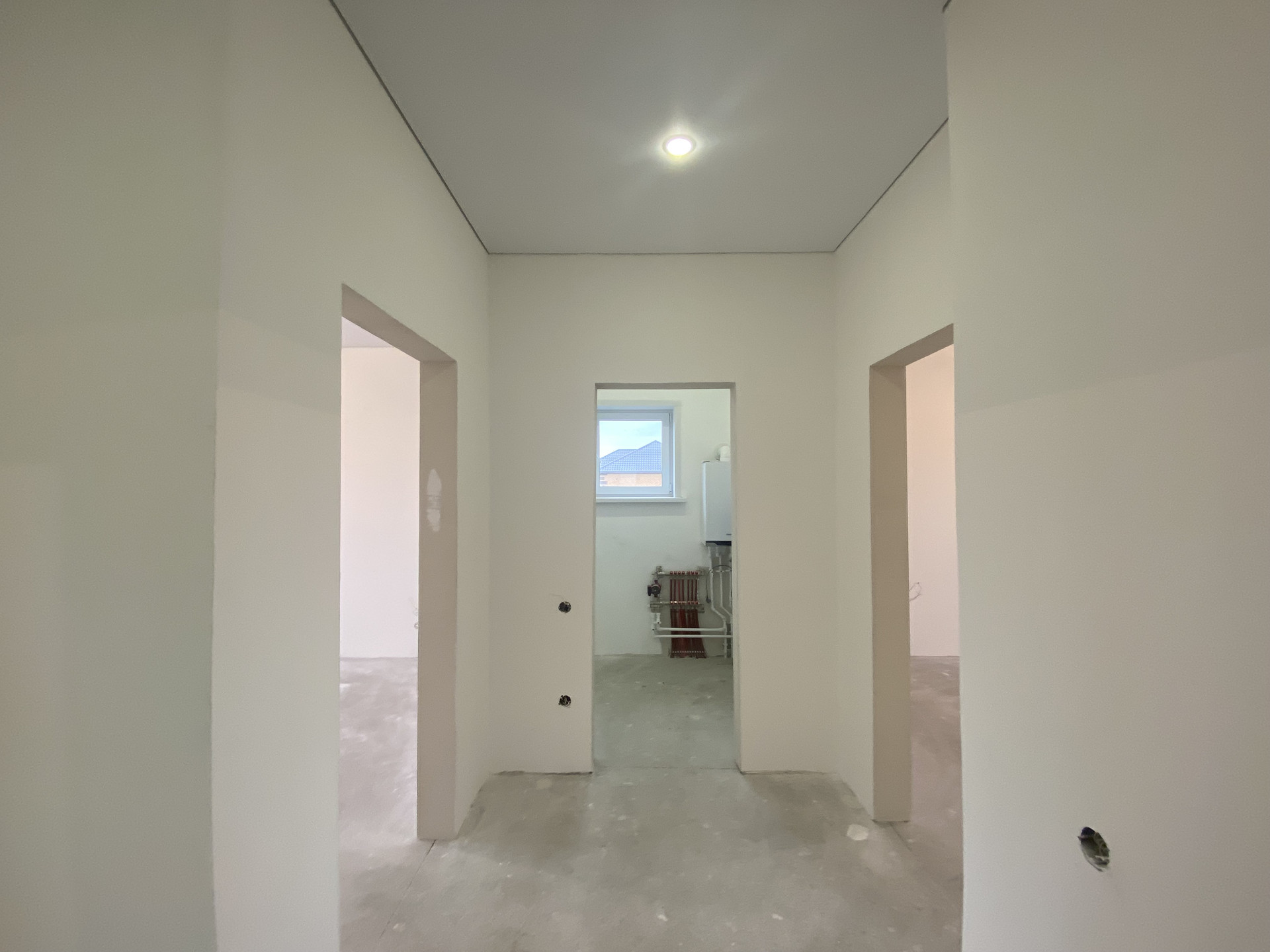 Дом в Предчистовой отделке: стены отшпаклеваны под обои, натяжной потолок,теплый пол по всему дому.