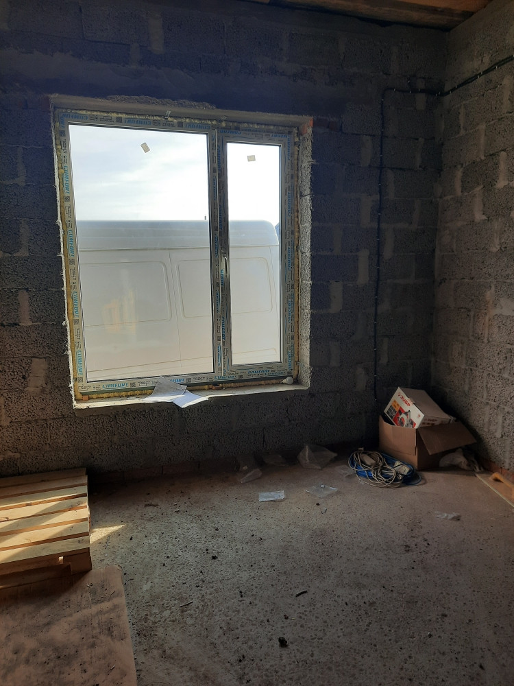 Дом в Предчистовой отделке: стены отшпаклеваны под обои, натяжной потолок,теплый пол по всему дому.