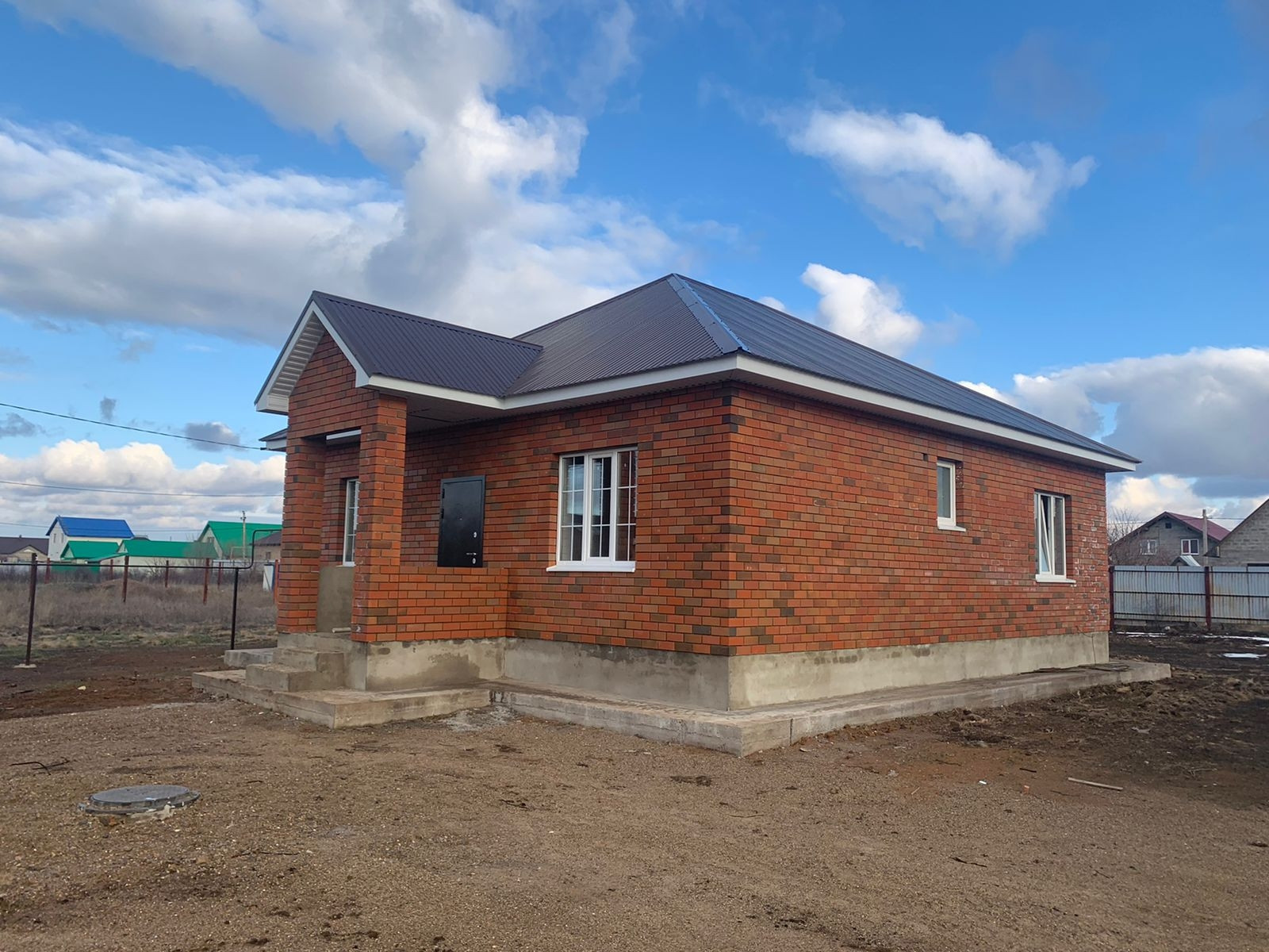Продается новый кирпичный дом , площадью 95м, 8 соток земли. Дом построен из керамзитоблока+утеплитель +кирпич. Сдача дома в октябре . Дом сдаётся с предчистовой отделкой. Стены отштукатурены, ровные тёплые полы, все коммуникации.