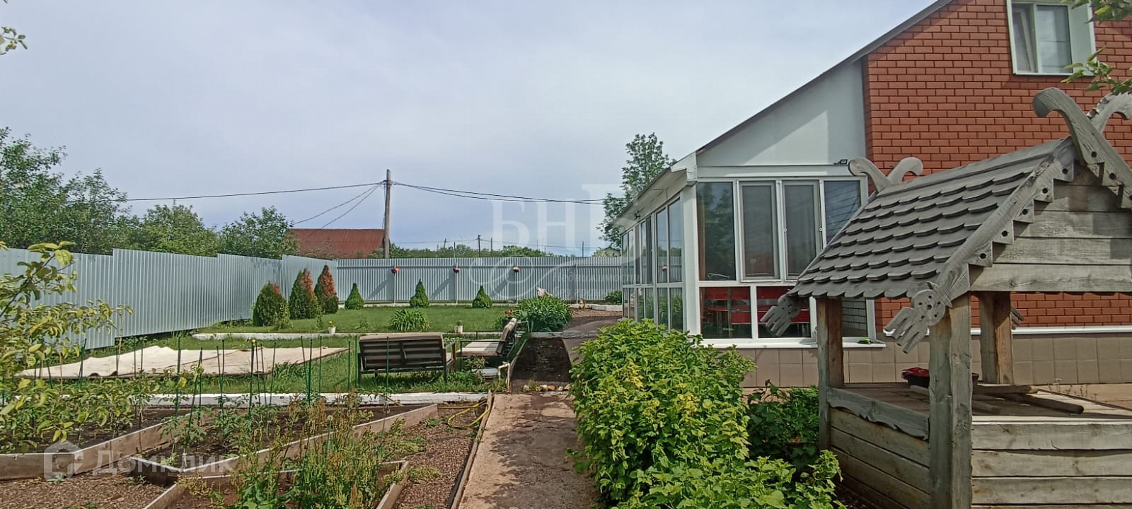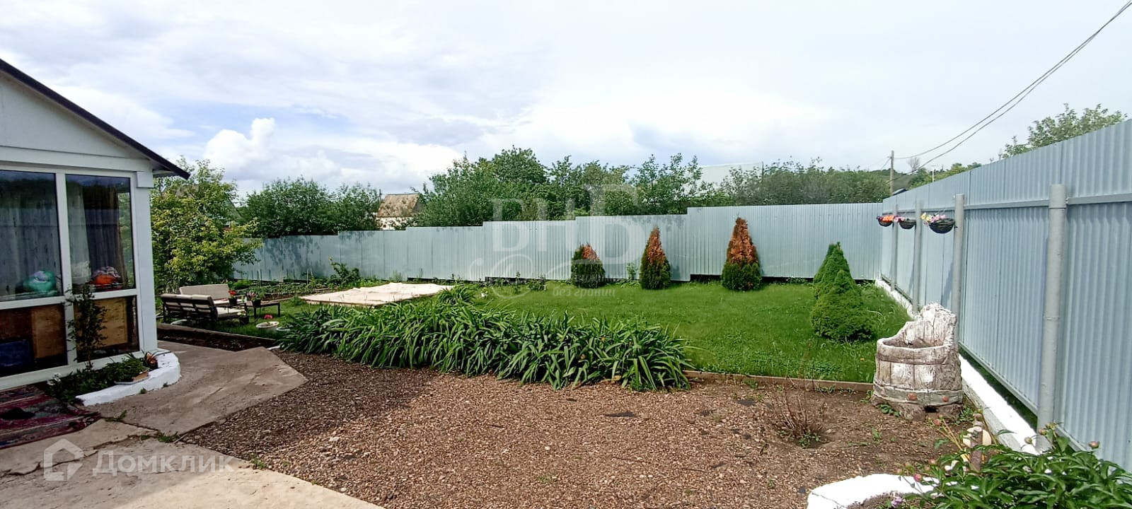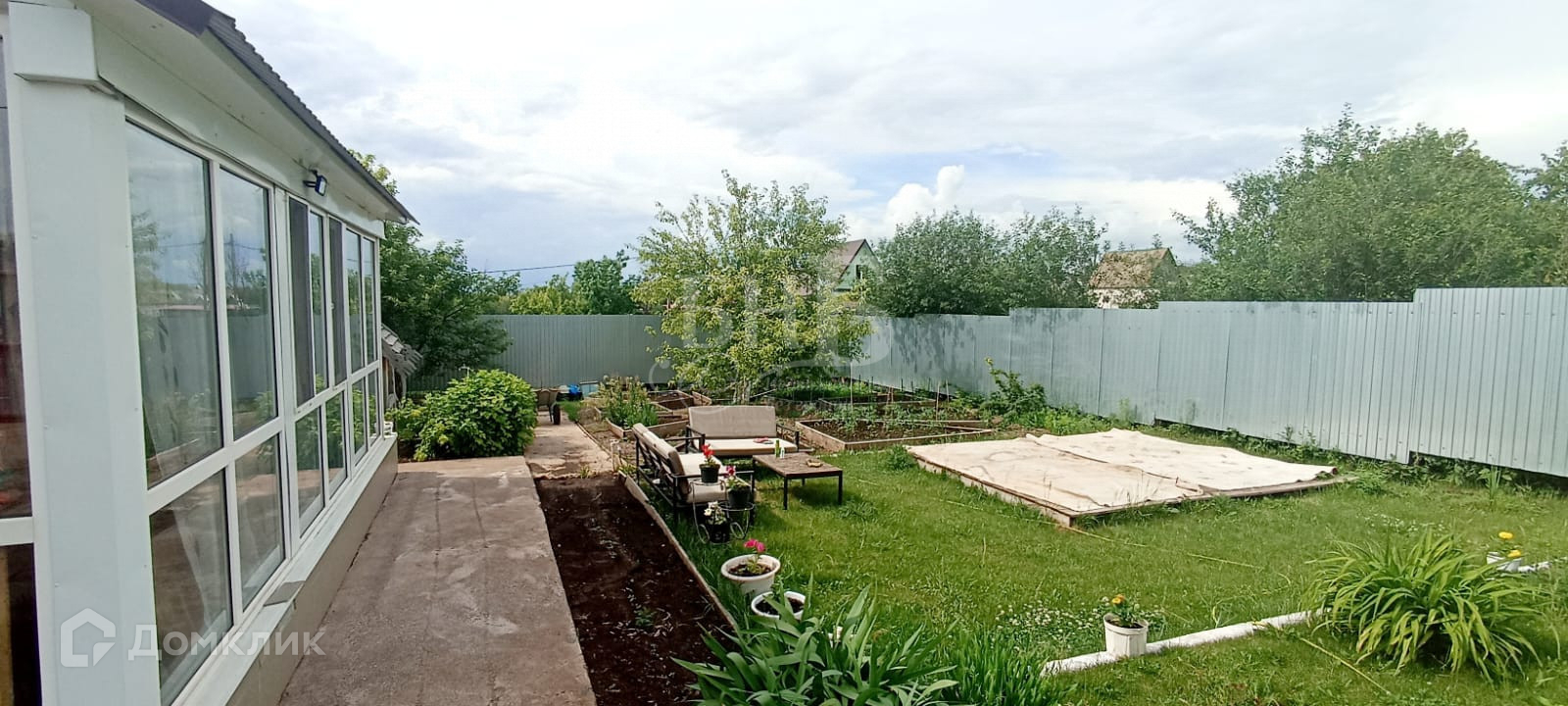 Площадь земельного участка 5 соток, участок огорожен профильным листом со всех сторон. Участок ровный, квадратной формы, на участок завезен плодородный слой чернозема, земля очень мягкая, по участку залиты бетонные дорожки. Так же имеется баня, большая беседка (навес) и мангальная зона.