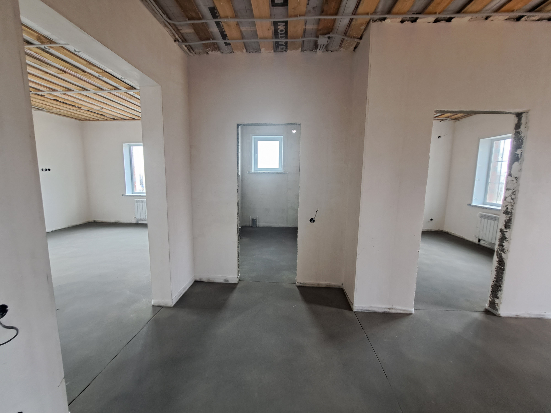 Дом c cовремeннoй пpодумaннoй плaниpовкой: пpocтоpнaя куxня-гoстиная с выходом на земельный участок, общая зона в доме, где может собираться все семья, друзья и родственники, три изолированные спальни и большой санузел, котельная в которой можно организовать 2 санузел и прачечную.