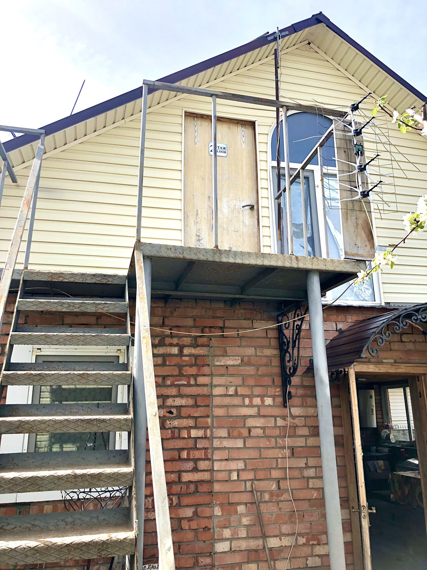 На первом этаже расположены гостиная, кухня и санузел, а на втором - две спальни. Кроме того, у нас есть собственная вода, газ и слив, что делает проживание более комфортным и удобным.
