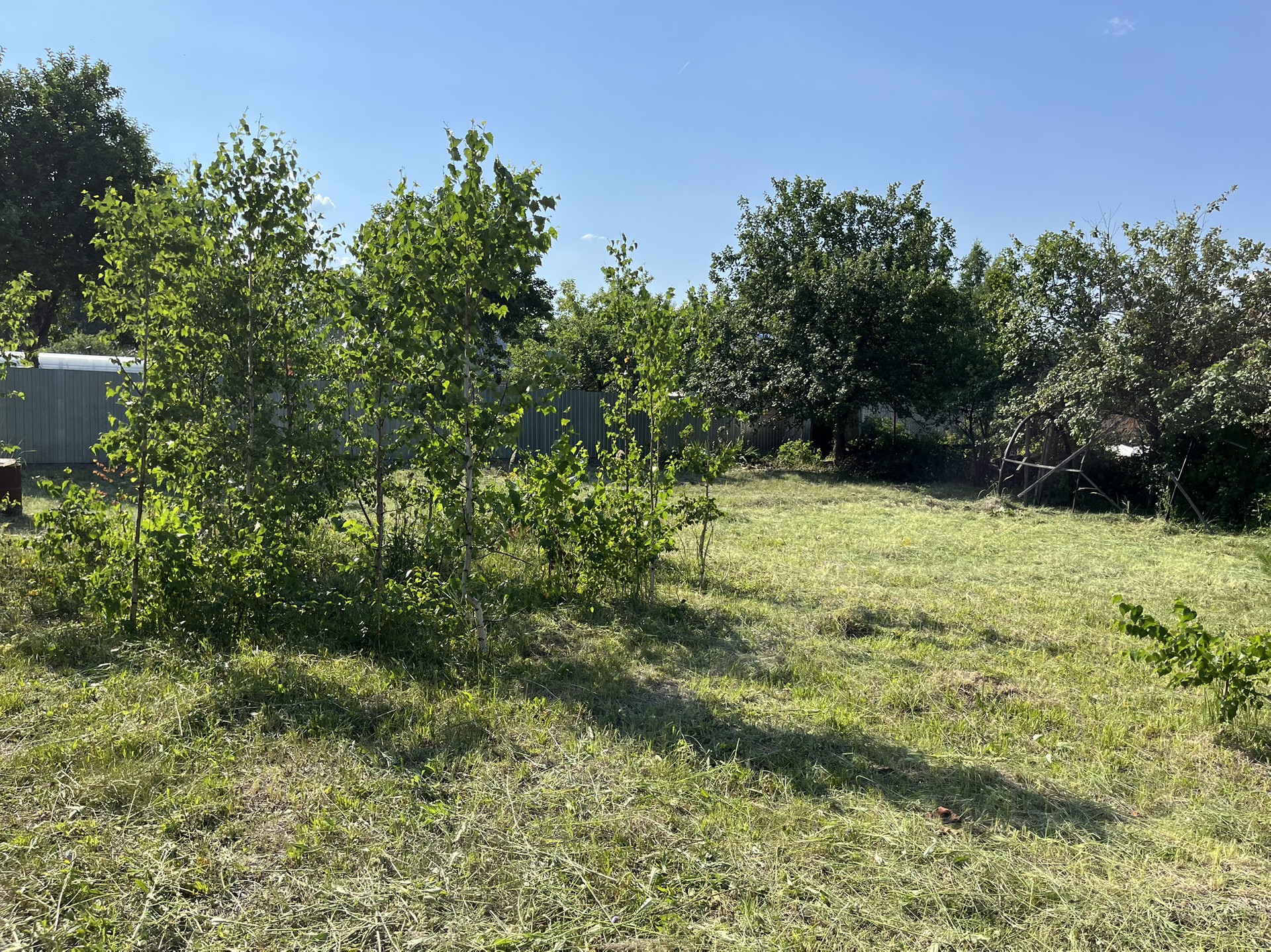 На участке по периметру имеются яблони, плодоносные кустарники.