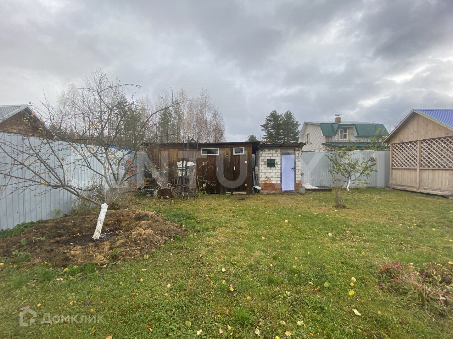 Огорожен забором из профнастила.