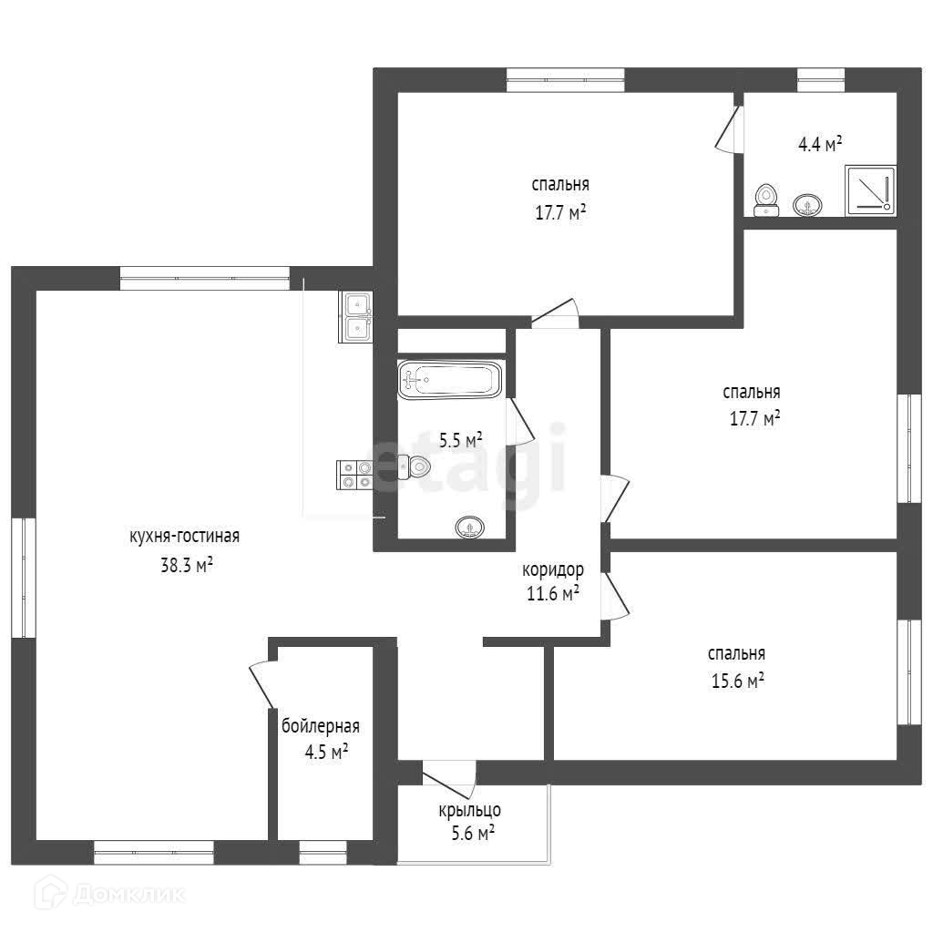 1-этажный дом, 123.5 м2, на продажу в СНТ Строитель, СНТ Строитель, 65