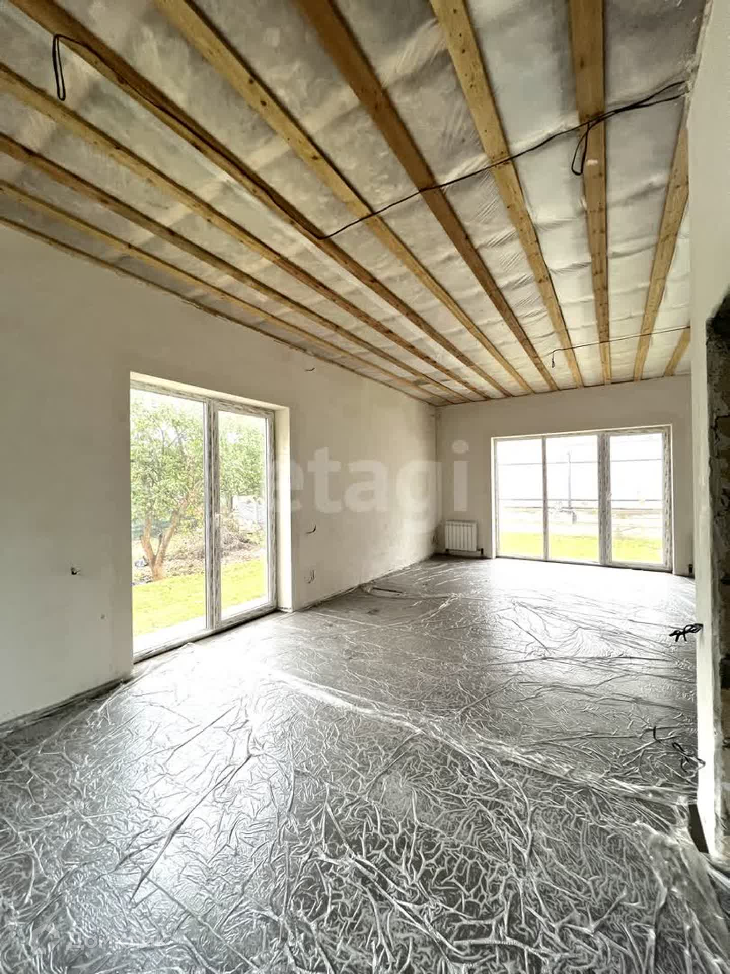 На данный момент дом в отделке white box. Смонтирована система отопления, теплые полы по всей площади дома. Радиаторы в каждой комнате. Водоснабжение, канализация, электропроводки полностью разведены по дому. Стены оштукатурены механизированной станцией. Собственник в течении 2-х месяцев может закончить ремонт "под ключ".