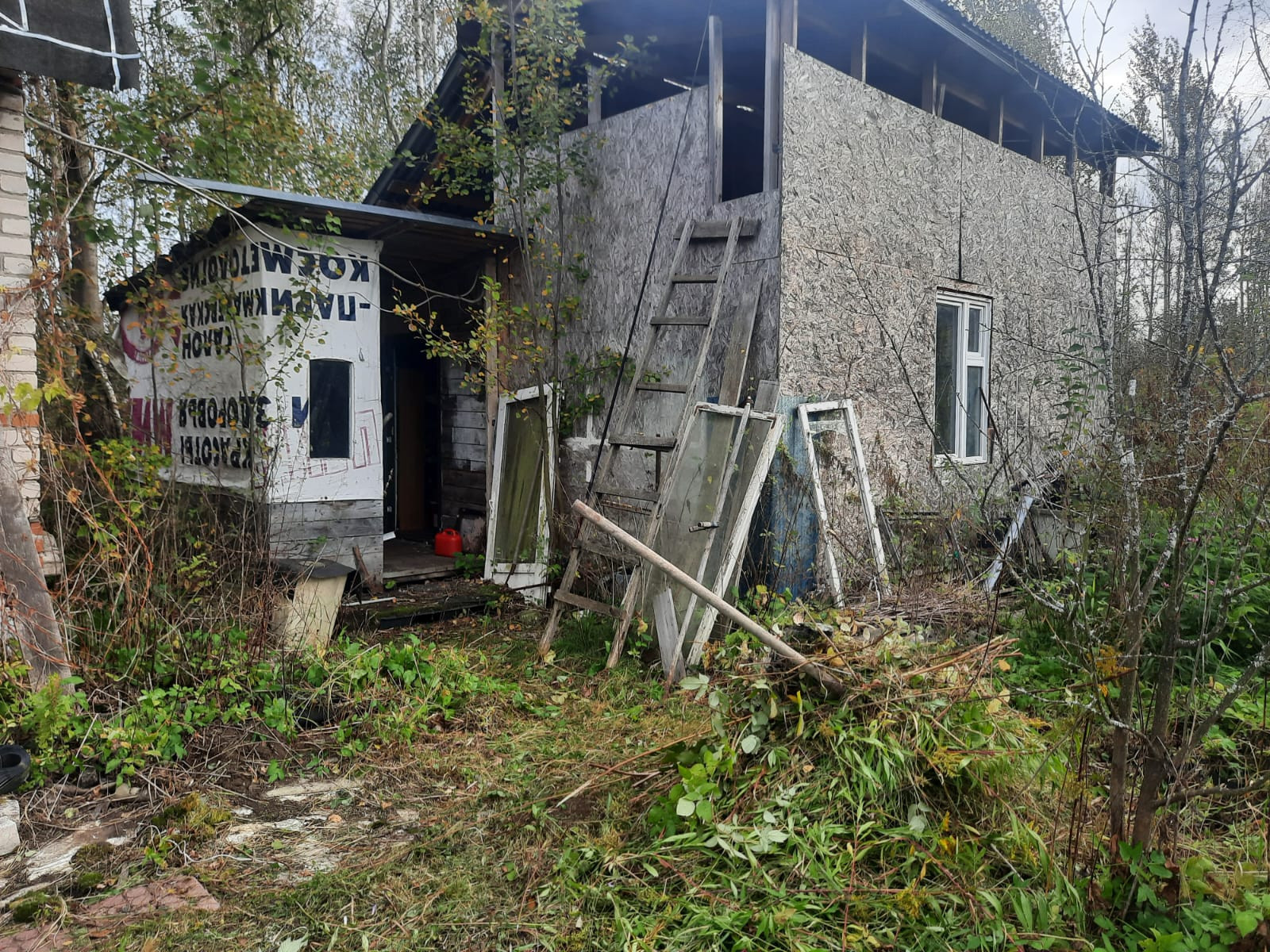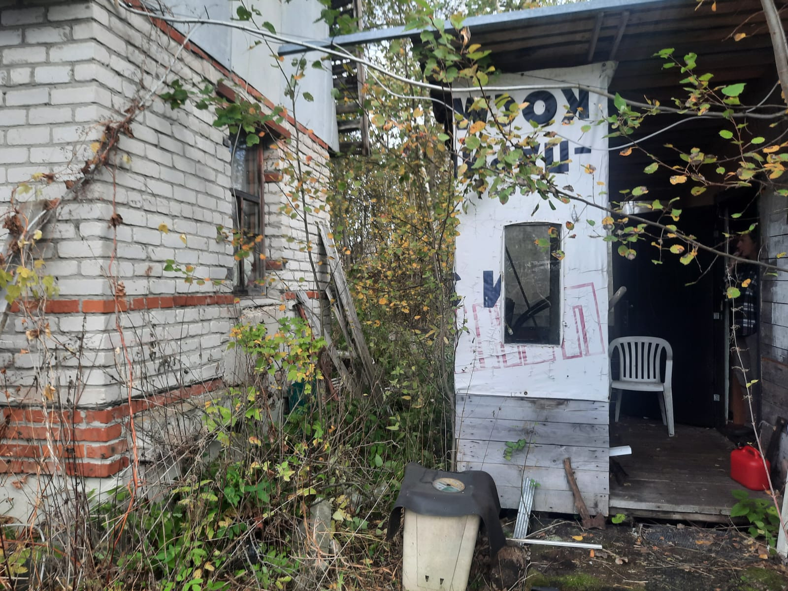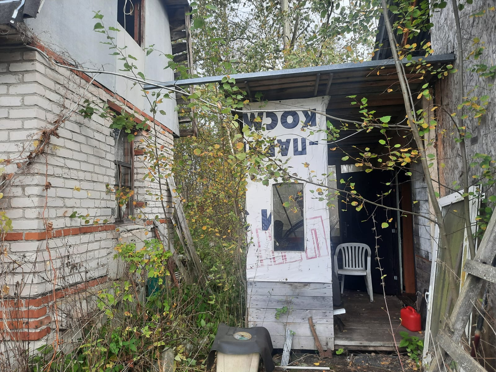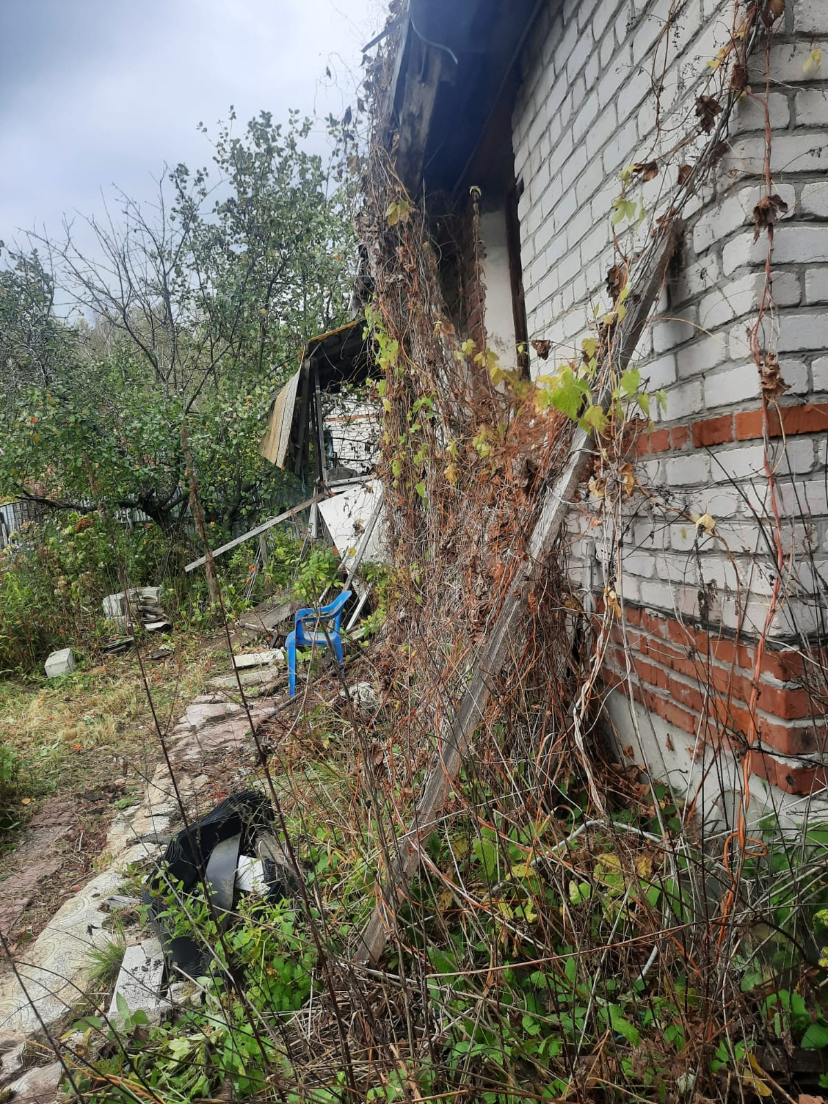 Дом-1 крепкий кирпичный, свет счётчик 5 кВт, нужен ремонт крыши, фундамент - цельные ж/б блоки.