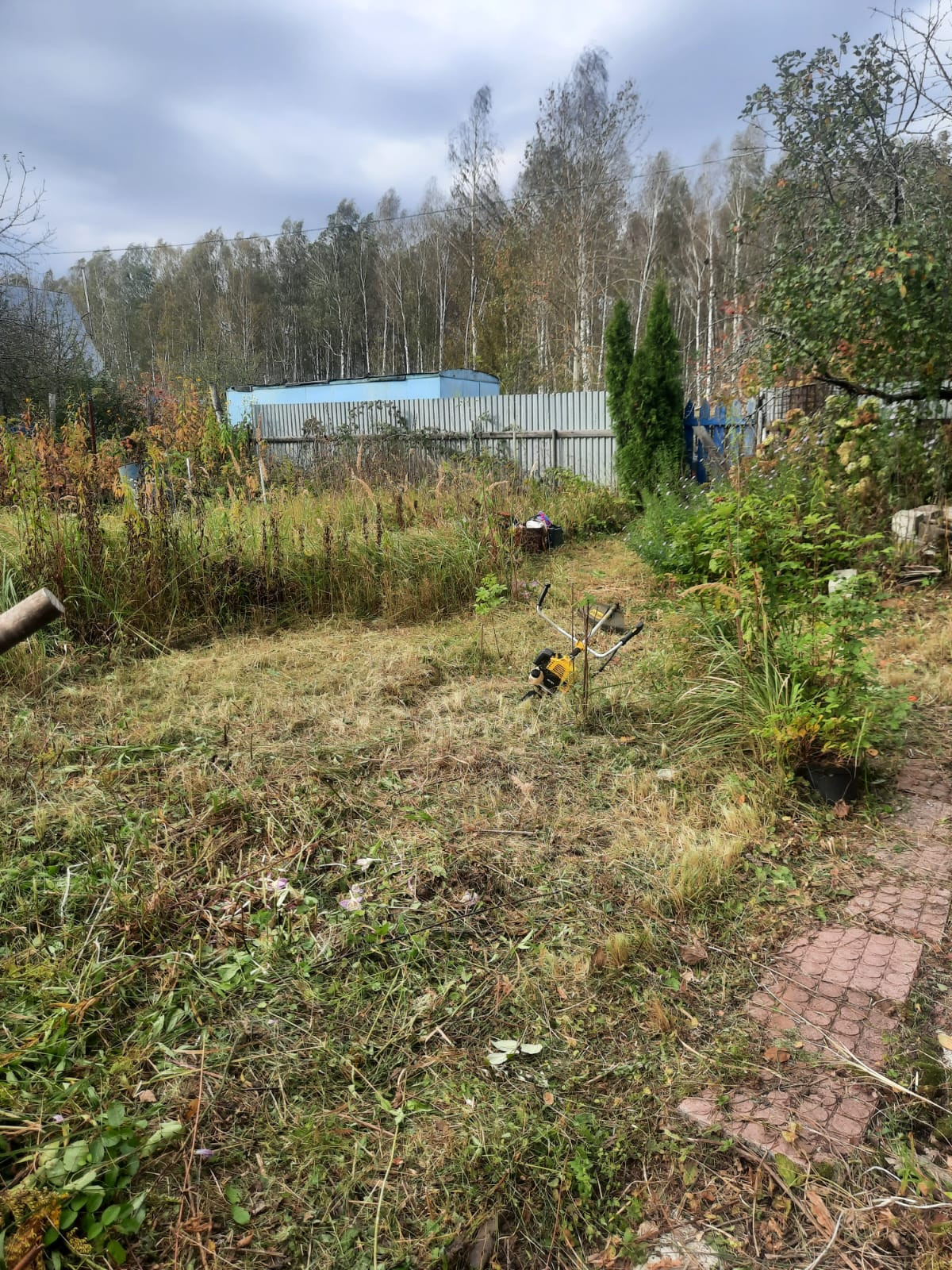 Летний водопровод, газон, 4 яблони, рябина, ч /смородина, слива, гортензия, туи.