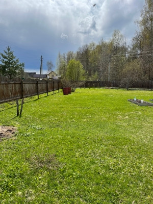 Участок ровный, правильной формы. Засеян газоном. Огорожен деревянным забором. На участке имеется колодец 7 колец, хоз.блок, парковочная зона. Также  на участке растут плодовые деревья и цветы.