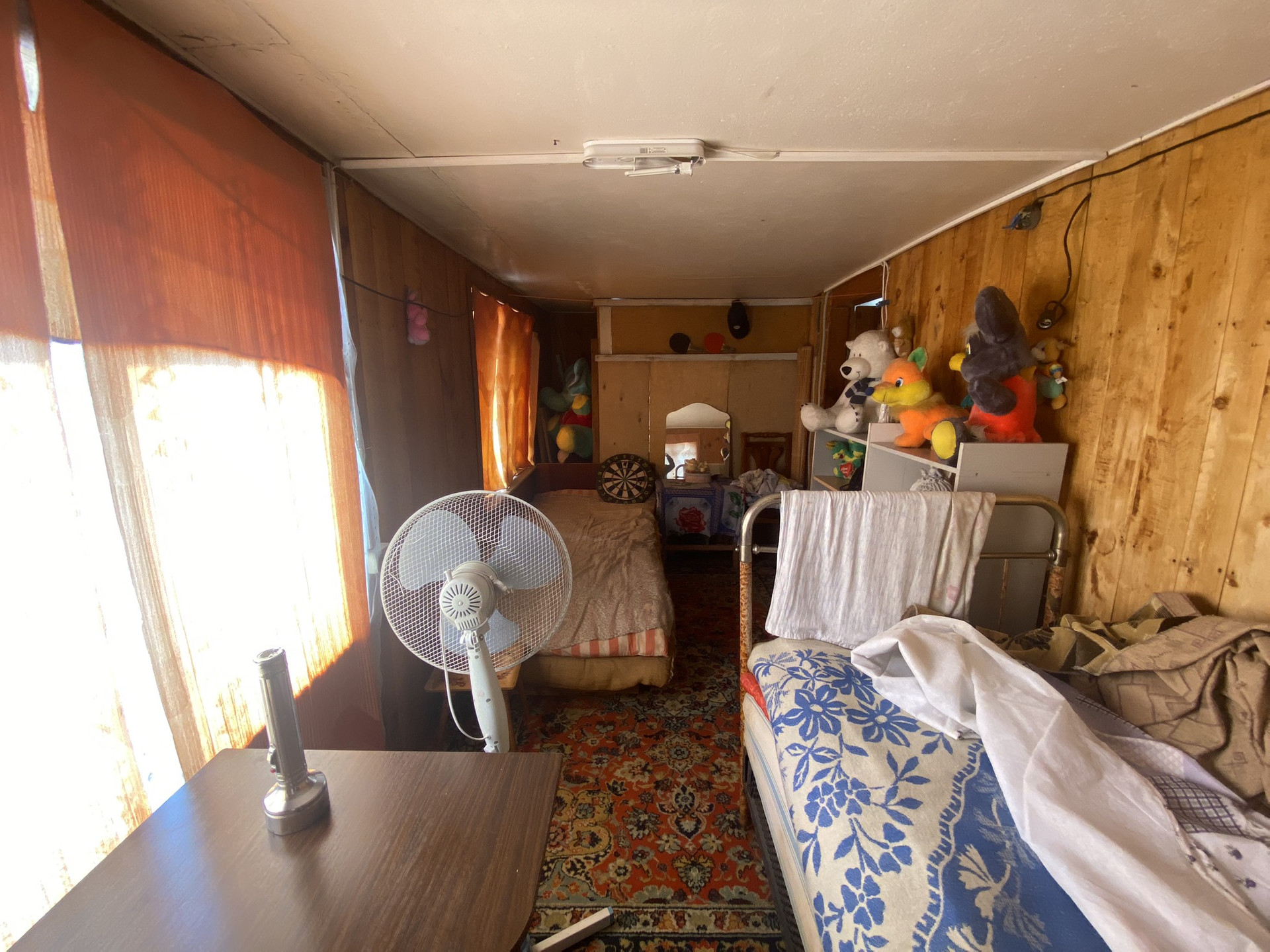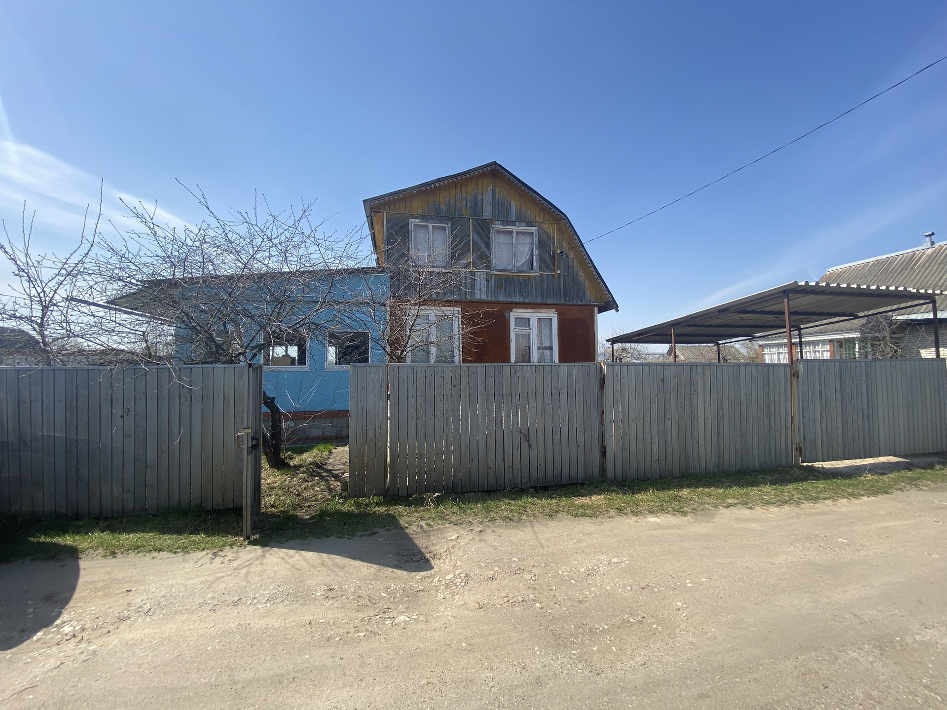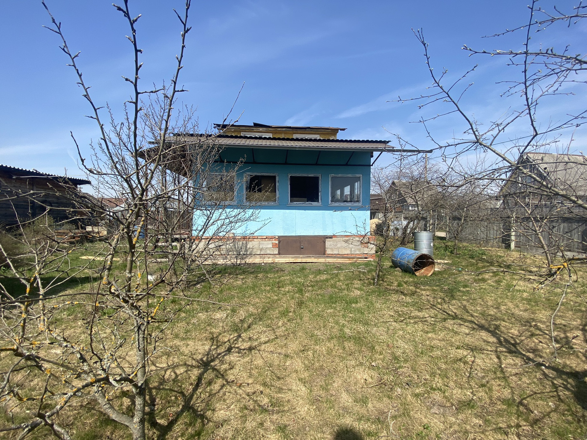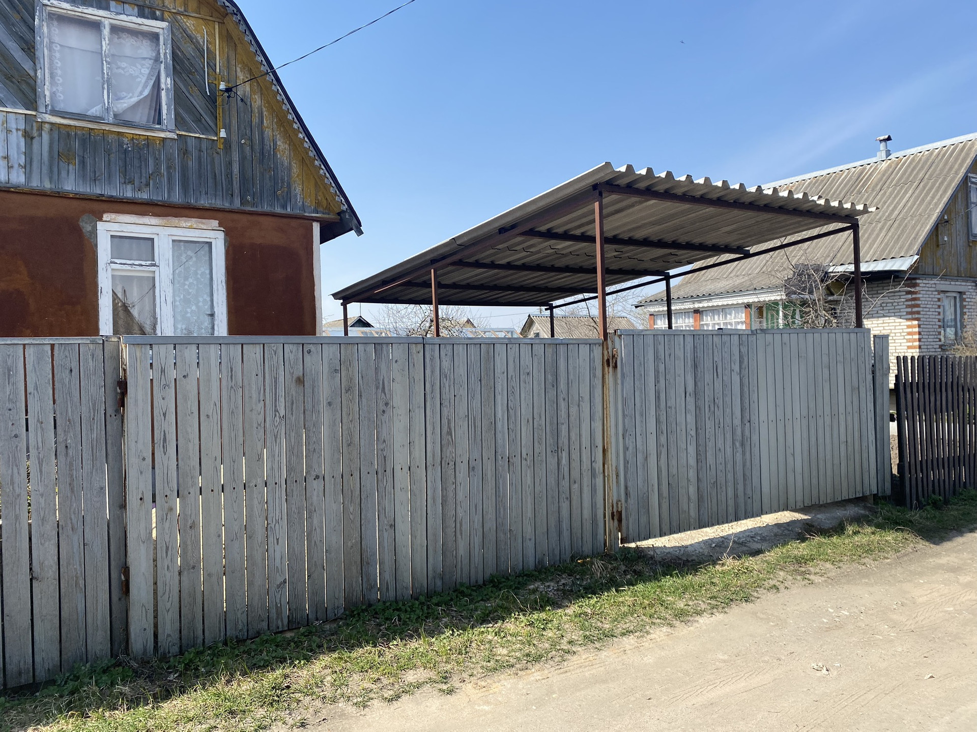 Постройки на участке: Сарай большой, сарай маленький (установлены раковина и ванна, вода идёт из бочки установленной на крыше). Туалет уличный с душем, Беседка. Есть 2 места под машины, одно место с навесом. Колодец (воды нет)