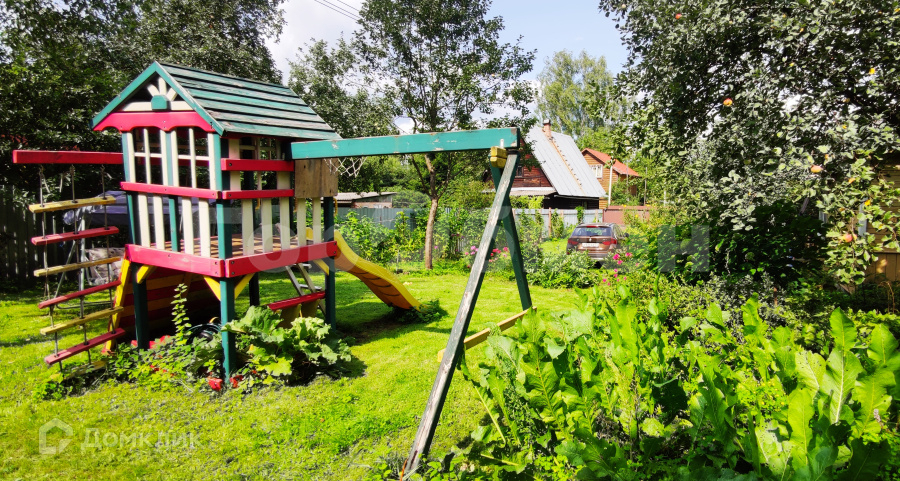 На участке есть летний домик 30 кв.м. + закрытая веранда 20 кв.м.+ навес 15 кв.м - зарегистрирован как нежилой, есть сарайчик с инвентарем, детская горка с качелями, сад с плодовыми деревьями и кустарниками. Участок огорожен забором из профлиста с откатными воротами.