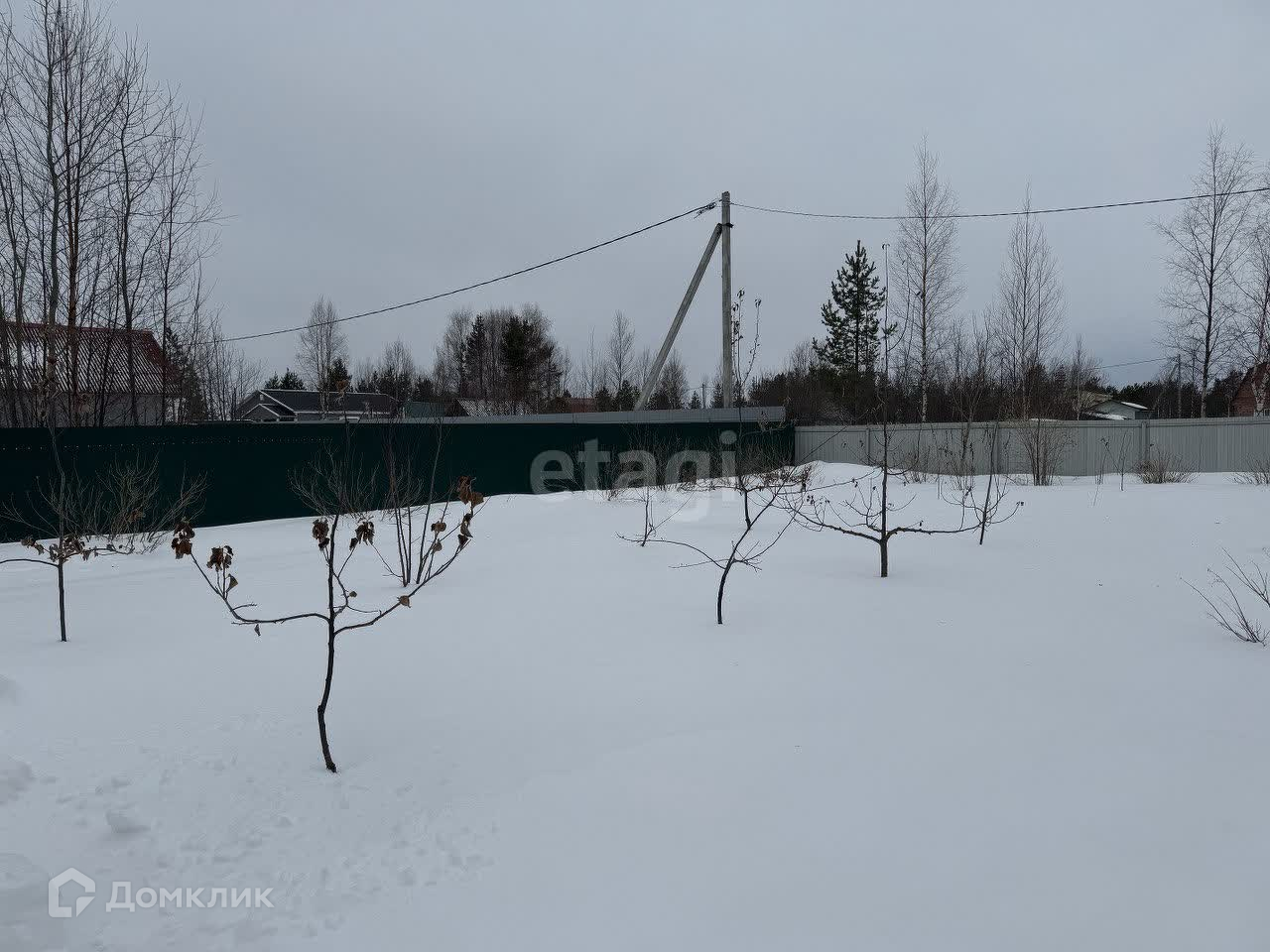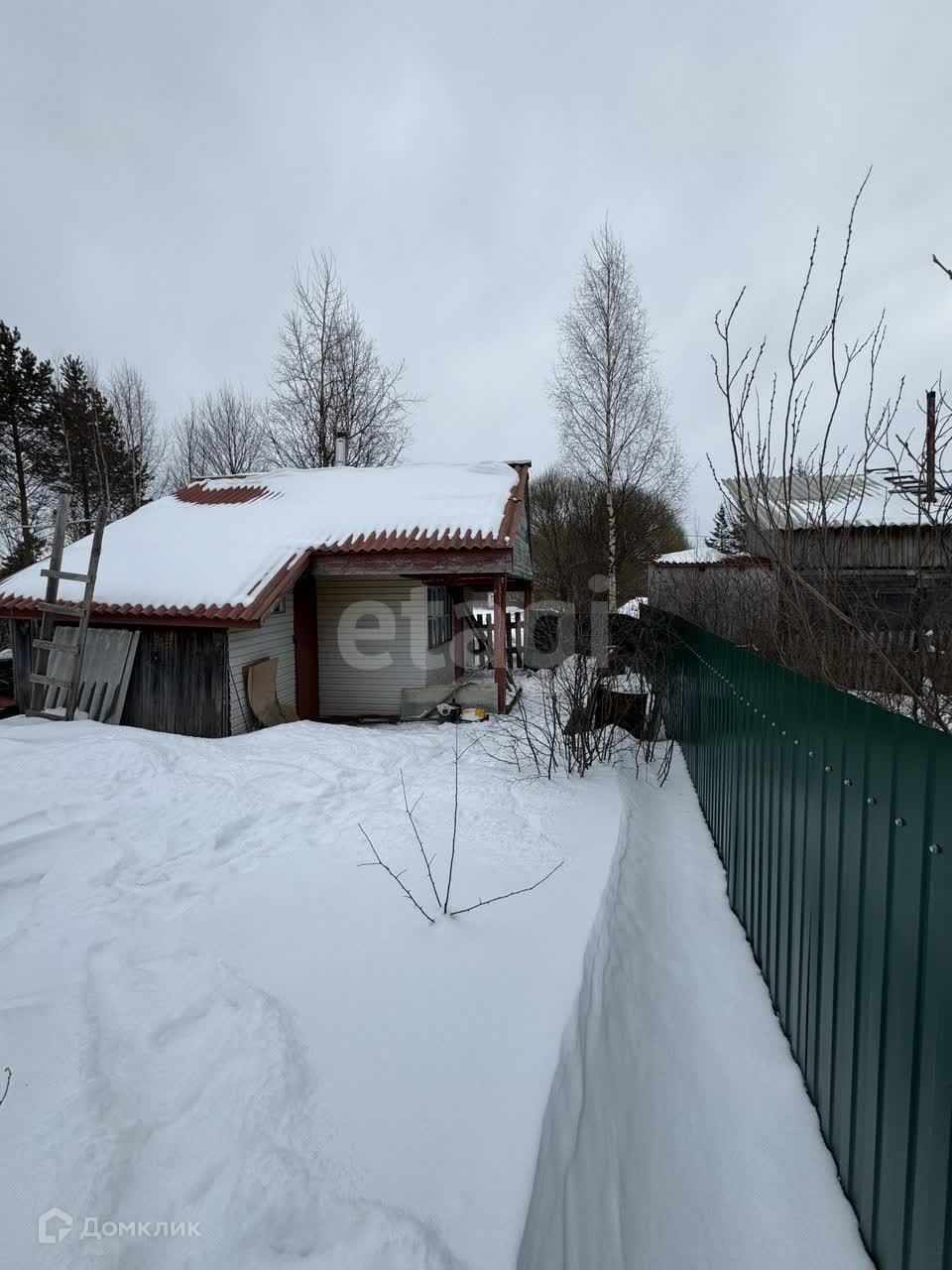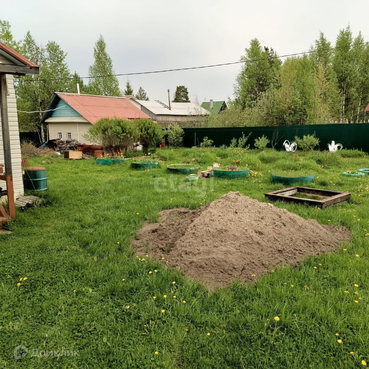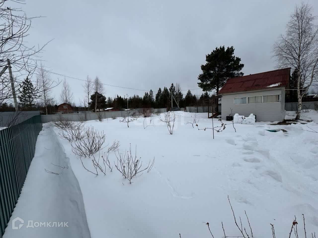 По периметру участка установлен качественный забор из металлического профиля, есть возможность заезда автомобиля. Вдоль участка высажены кусты смородины, малины.