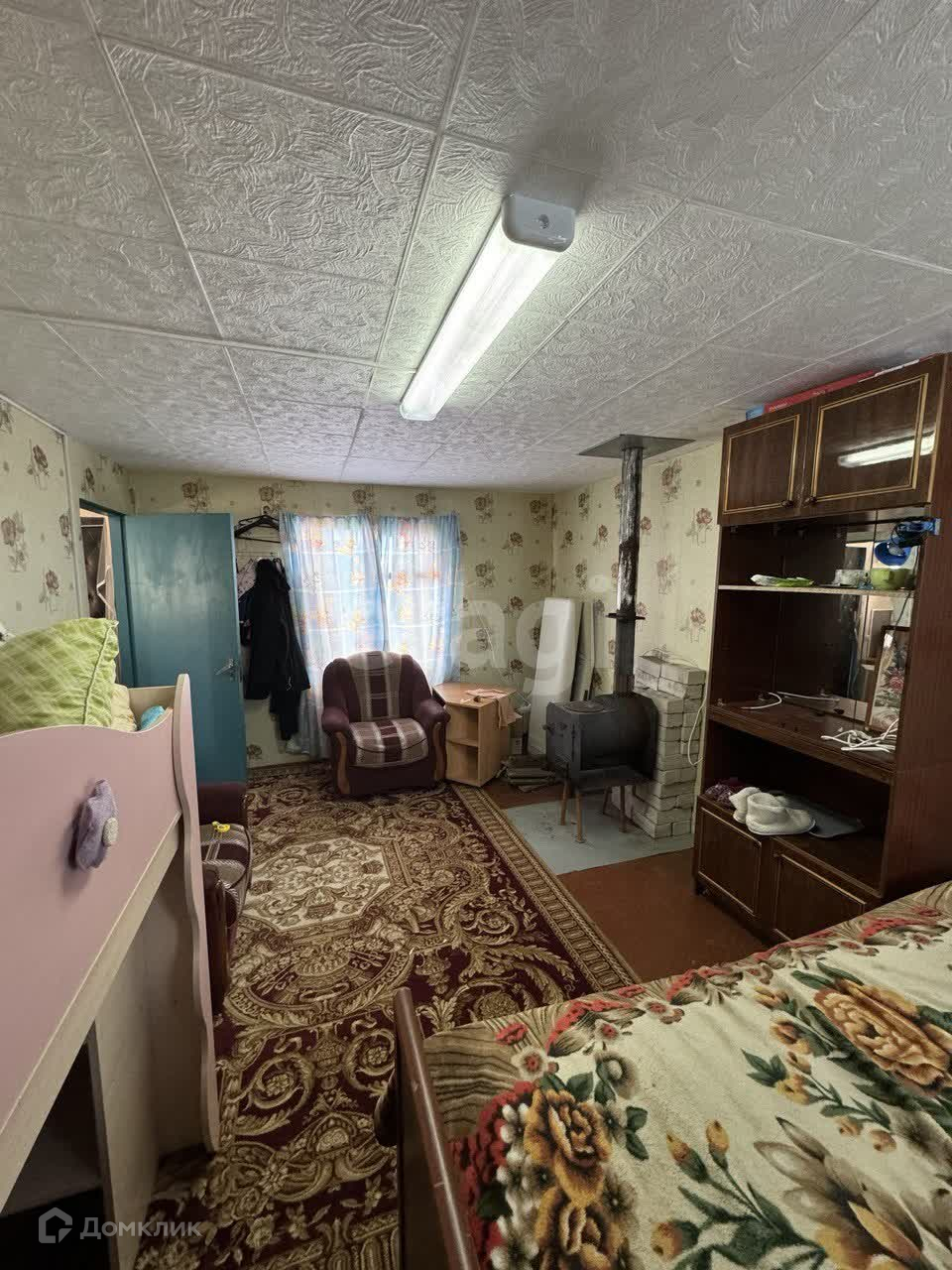 В даче имеется две комнаты, заведено электричество, отопление печное, также установлены электрические конвекторы.
