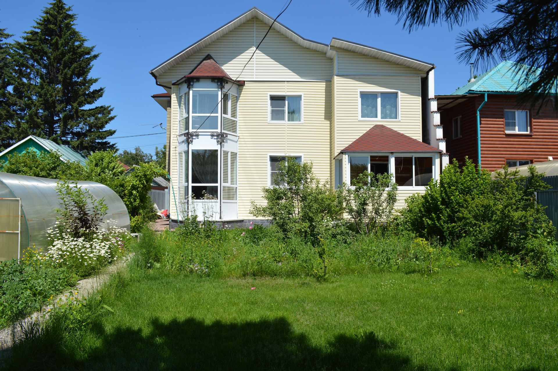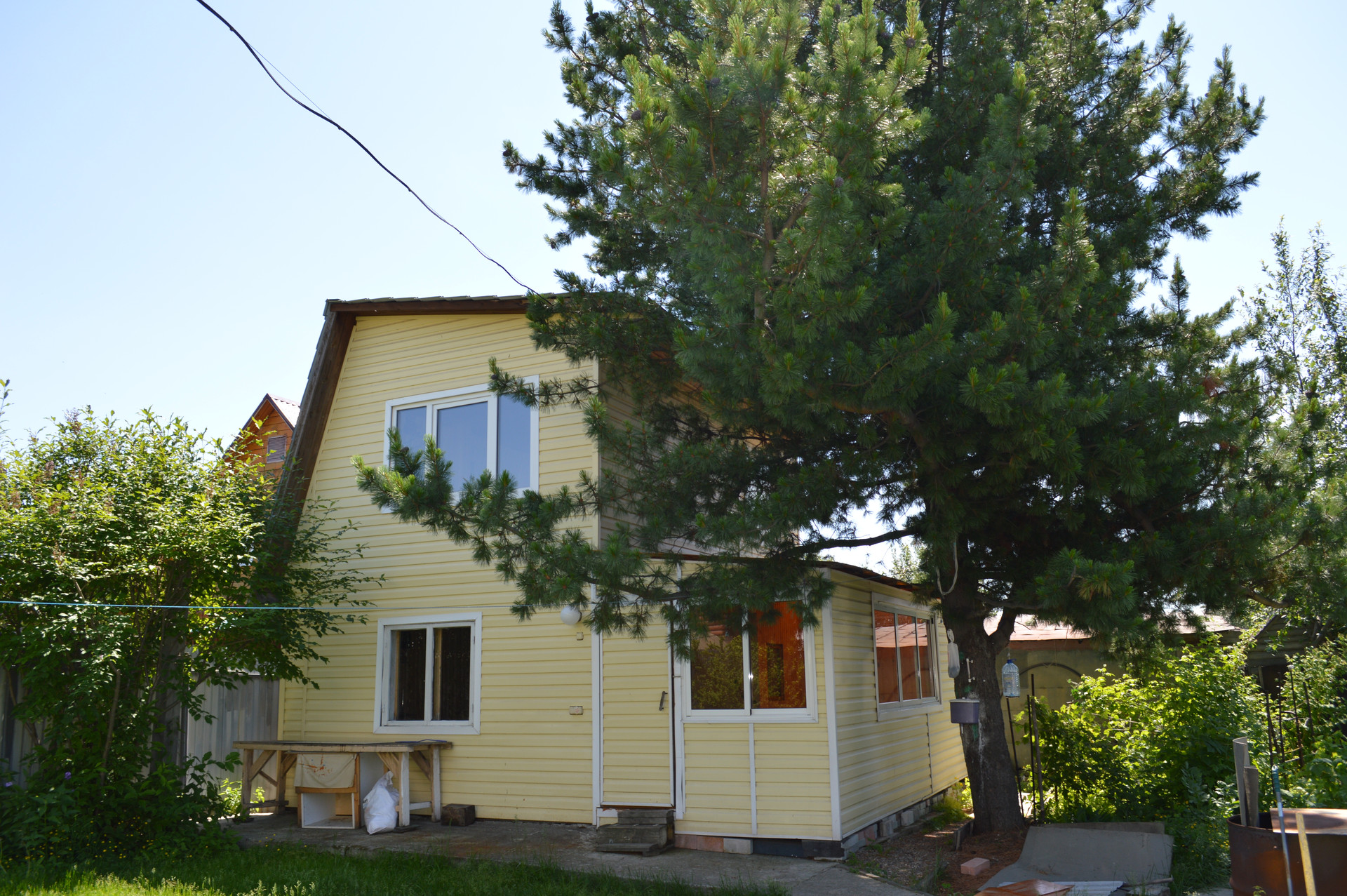На участке двухэтажная баня, теплица, летний душ, скважина, септик, водопровод от СНТ, много деревьев и кустарников (вишня, орех, яблоня, груша, слива, смородина и малина), шикарный газон, всё сделано для расслабляющего отдыха после городской суеты.