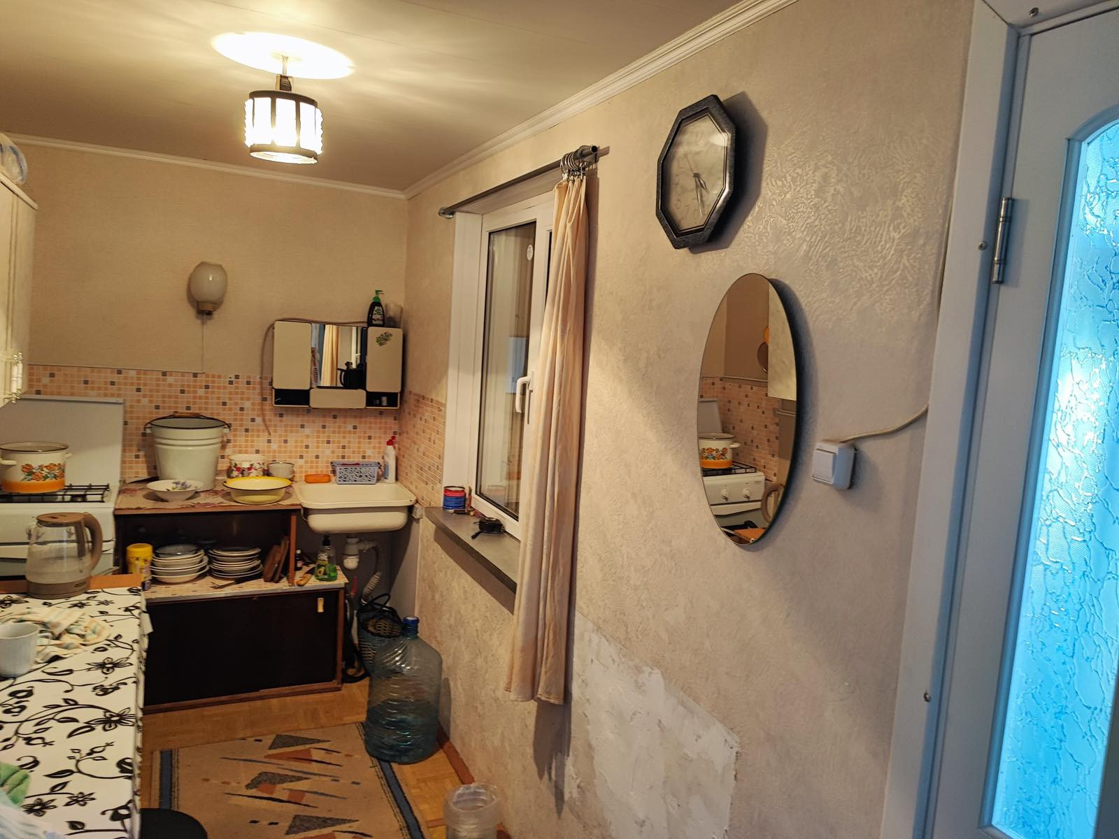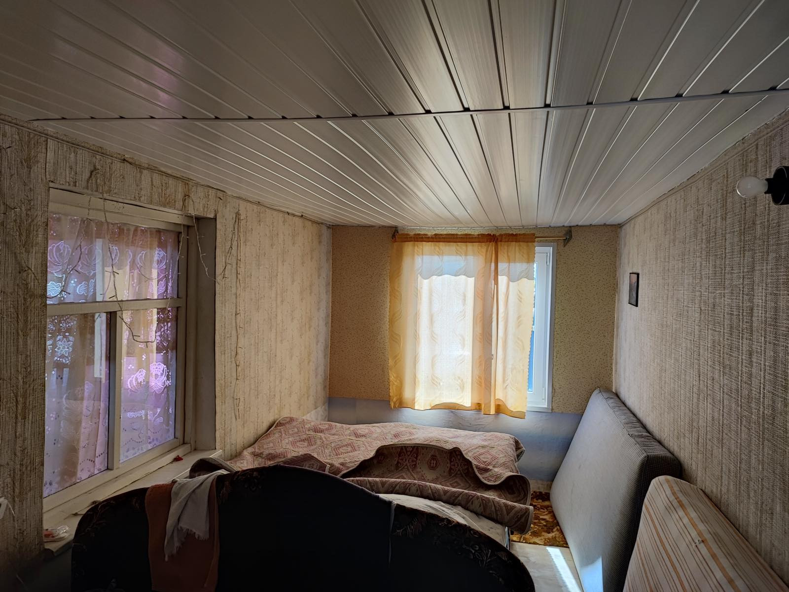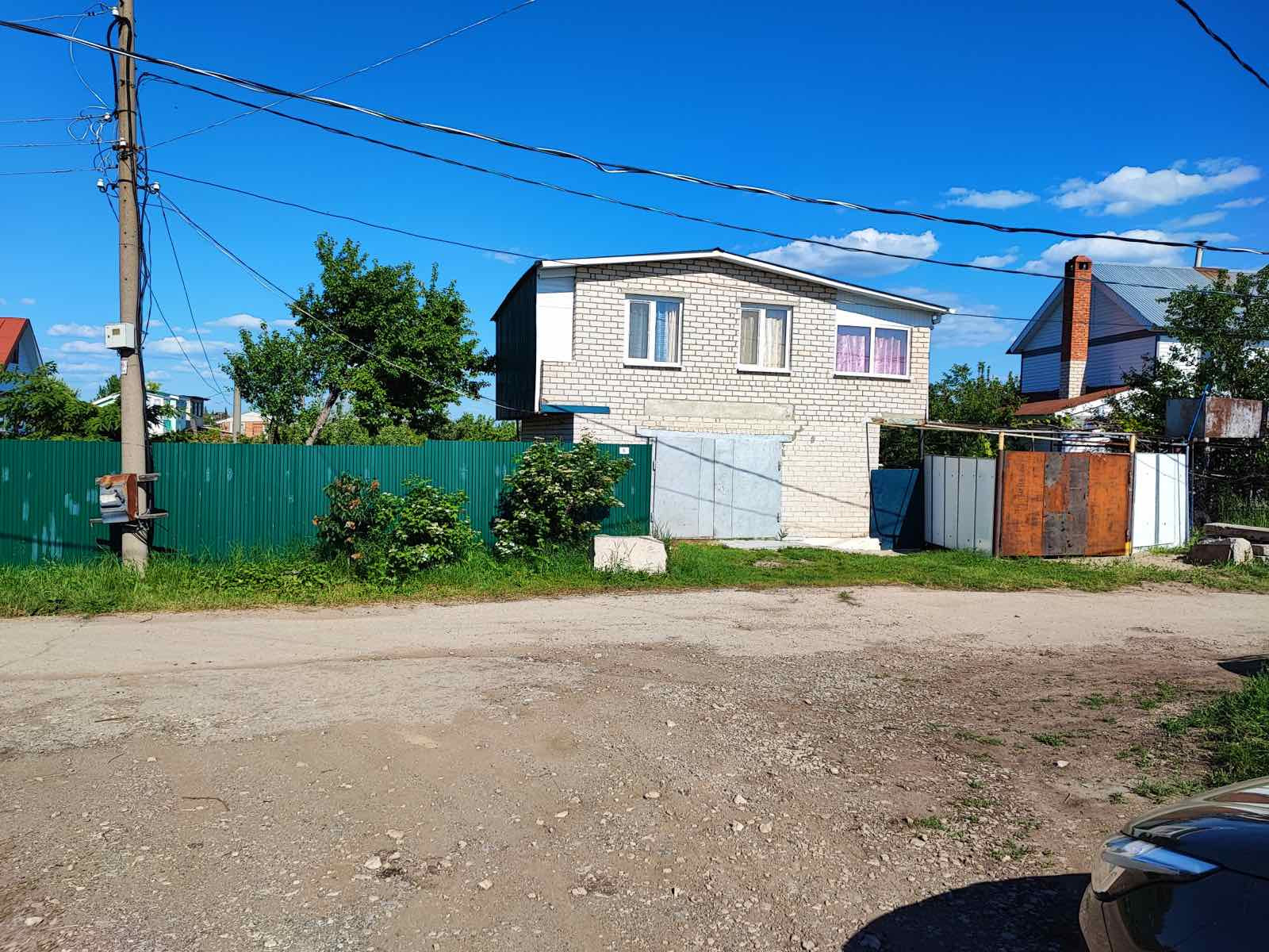 Дом кирпичный, 2 этажа, хорошая лестница на второй этаж, пластиковые окна, в доме есть электричество и вода, санузел, добротная печка, плита, установлена спутниковая тарелка, в доме оставляем всю мебель.