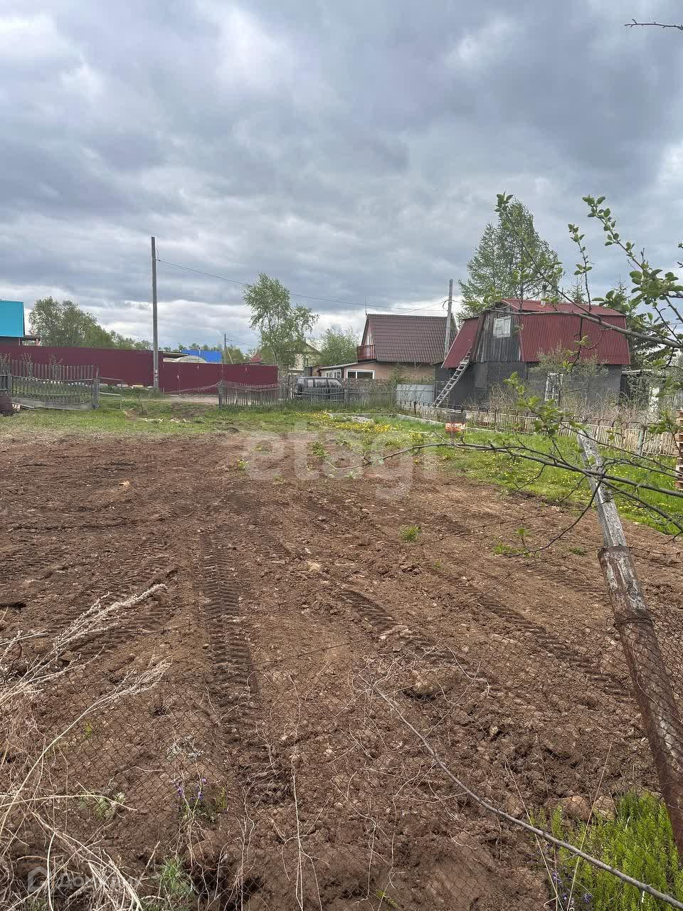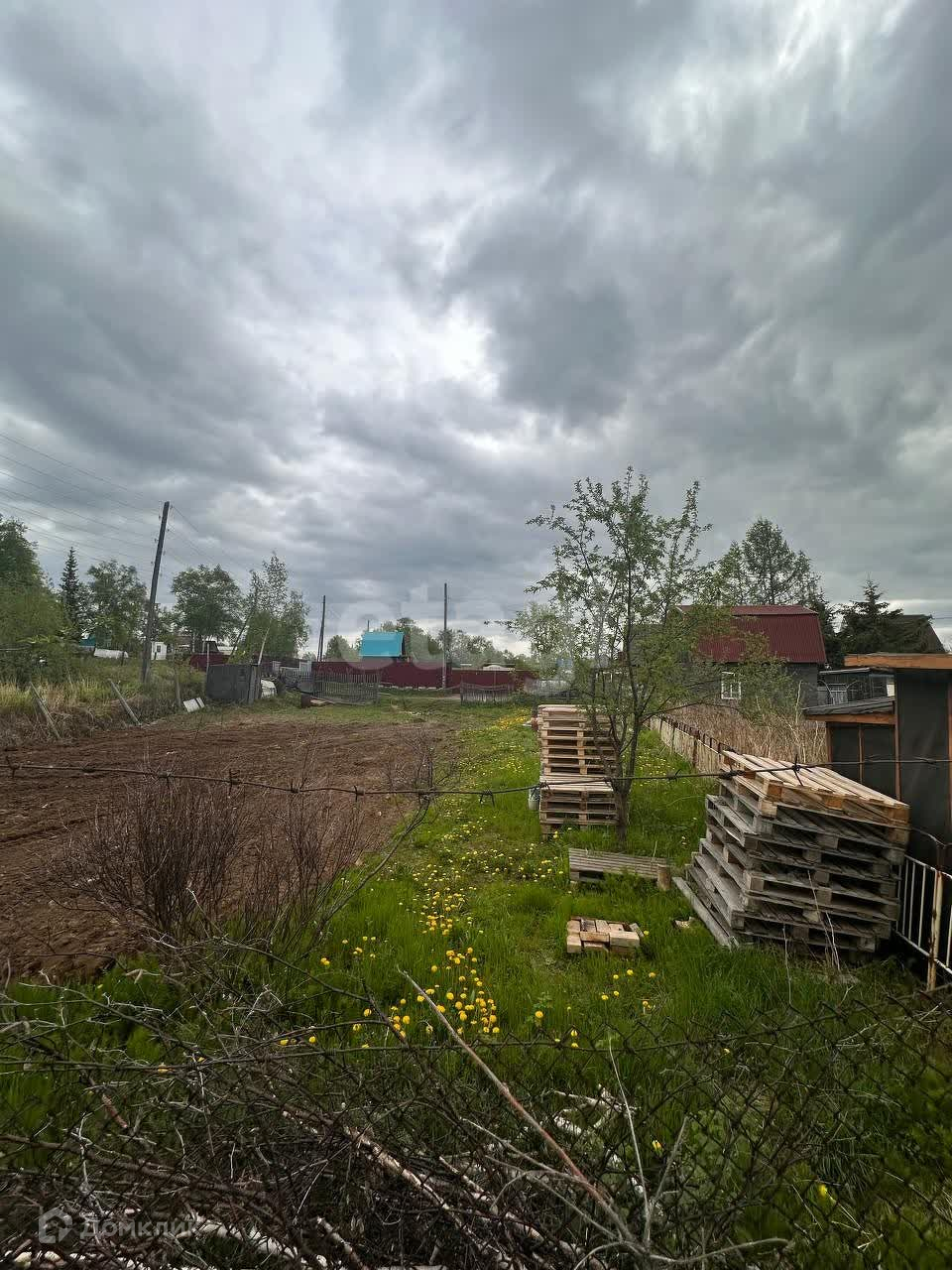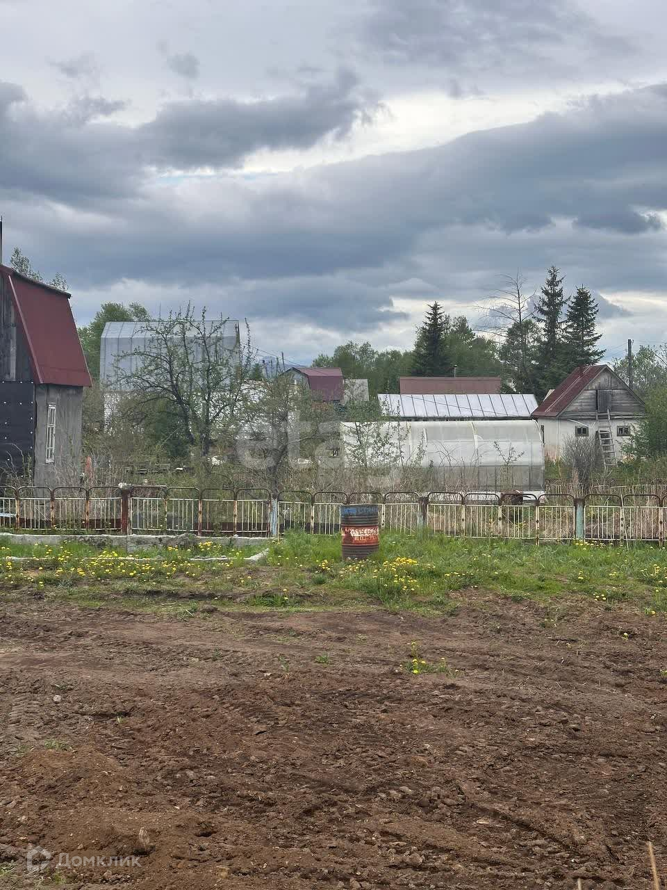 На участке нет деревьев и лишних кустарников, полностью разработан, огорожен металлической сеткой.
