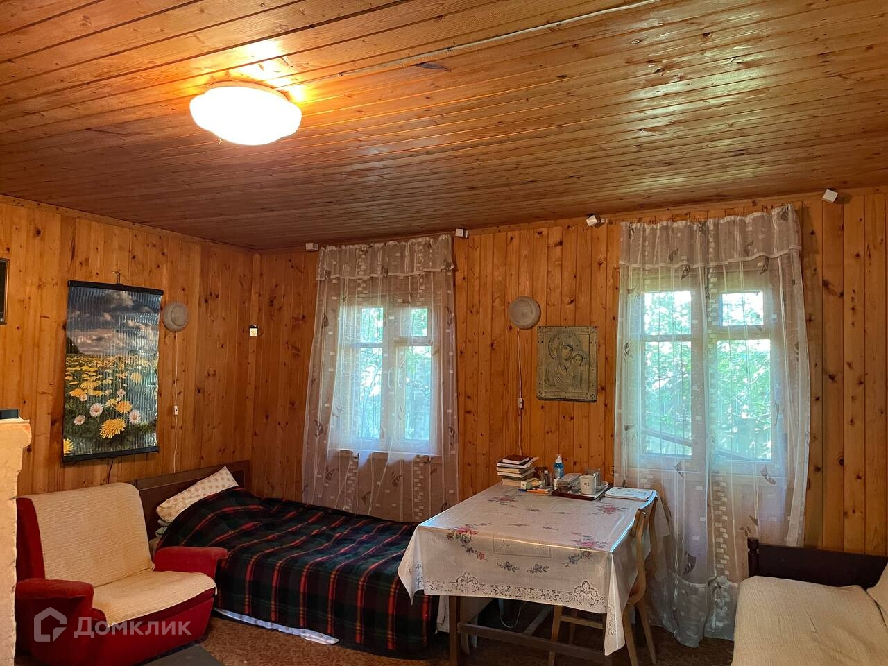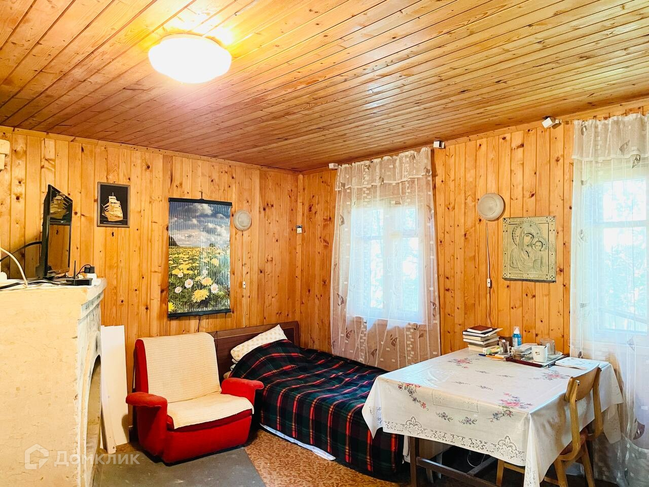 Дом 45.3 кв.,м . На первом этаже расположены кухня, гостиная, кладовая, так же 1 спальная, в спальне установлен камин. На втором этаже 2 комнаты. Дом внутри обшит деревом, имеется рабочая печь/камин. Ухоженный участок 6 соток, на участке имеются плодово-ягодные насаждения