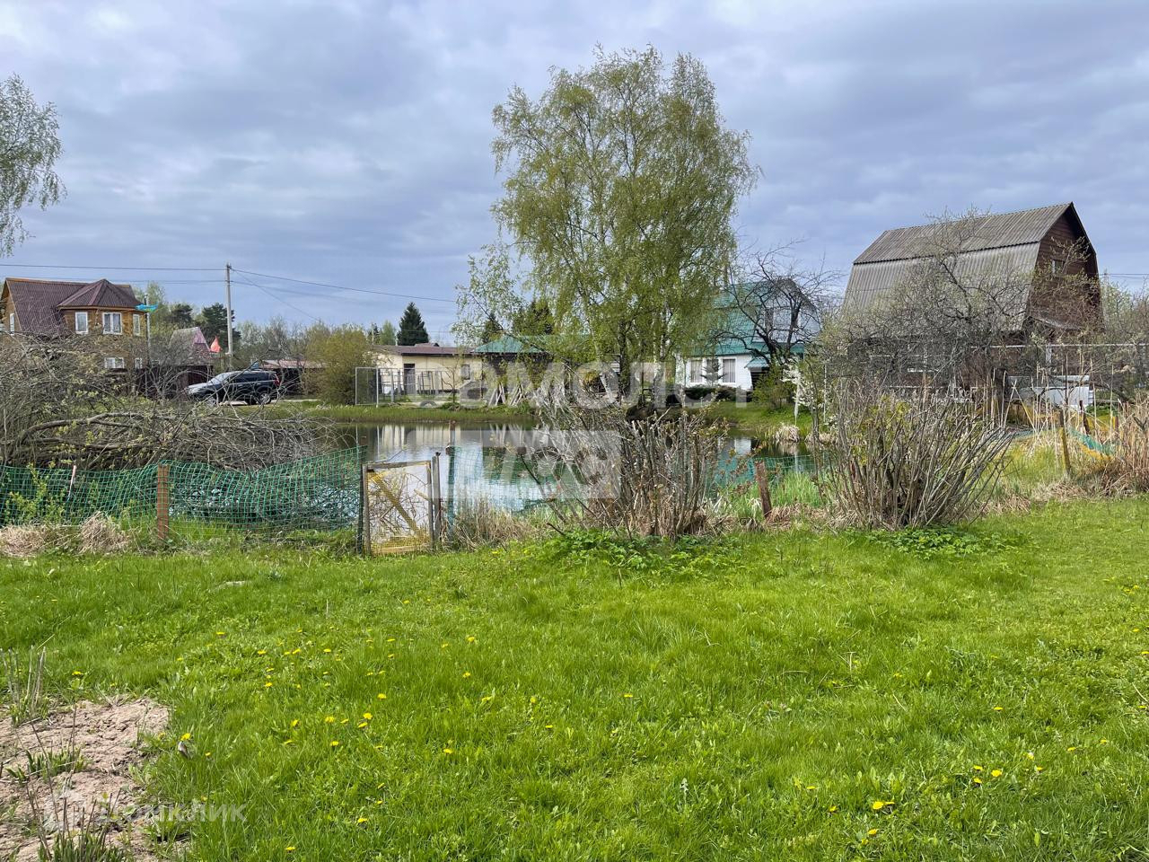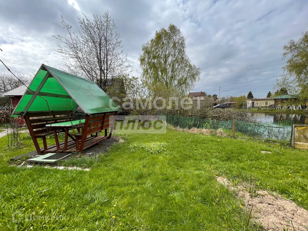 Участок 8.8 соток, ровный, огорожен забором, по границе участка большой пруд. Также на участке хорошая баня с верандой (40 кв.м.), беседка, хозблок, летний туалет.