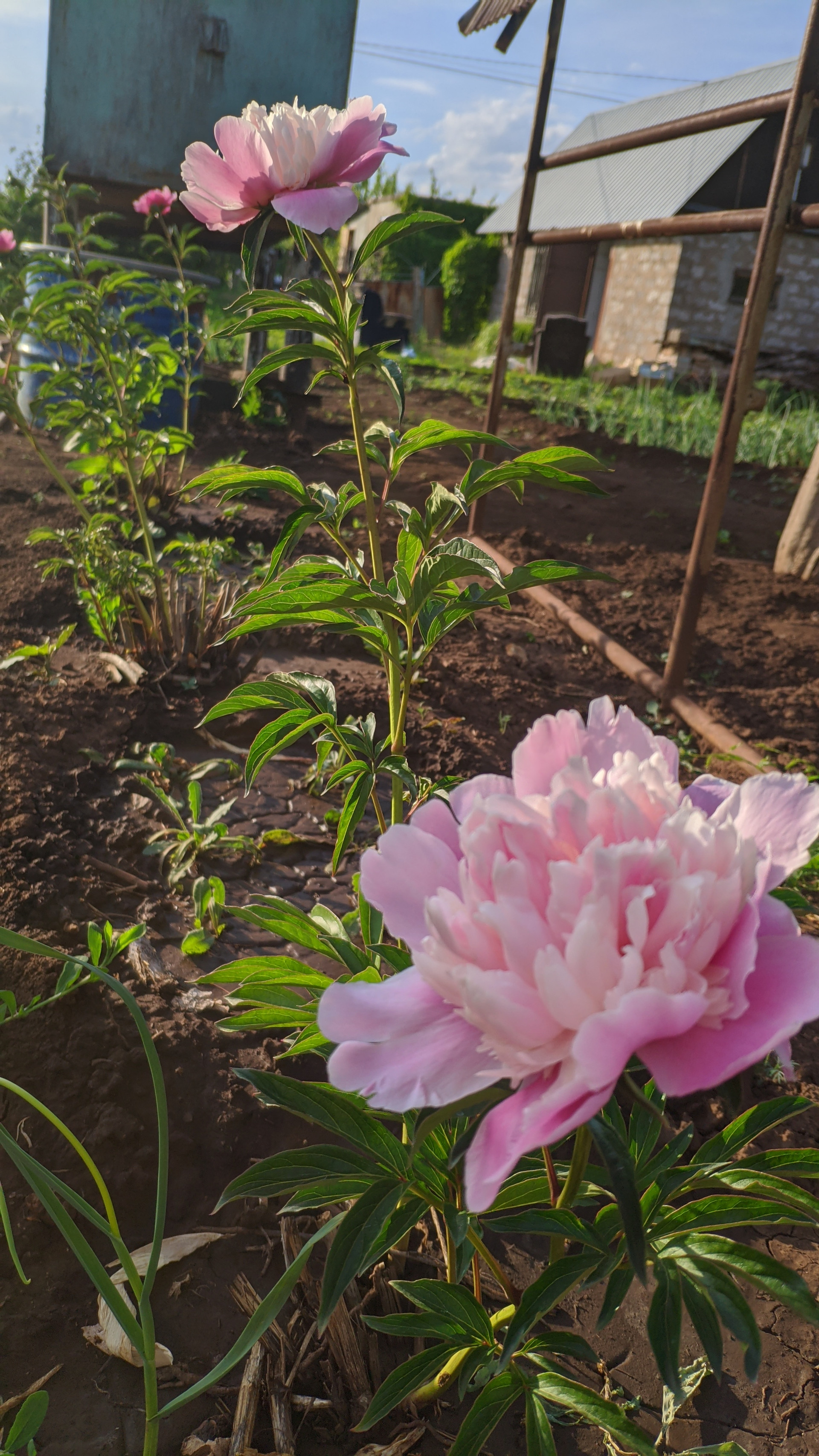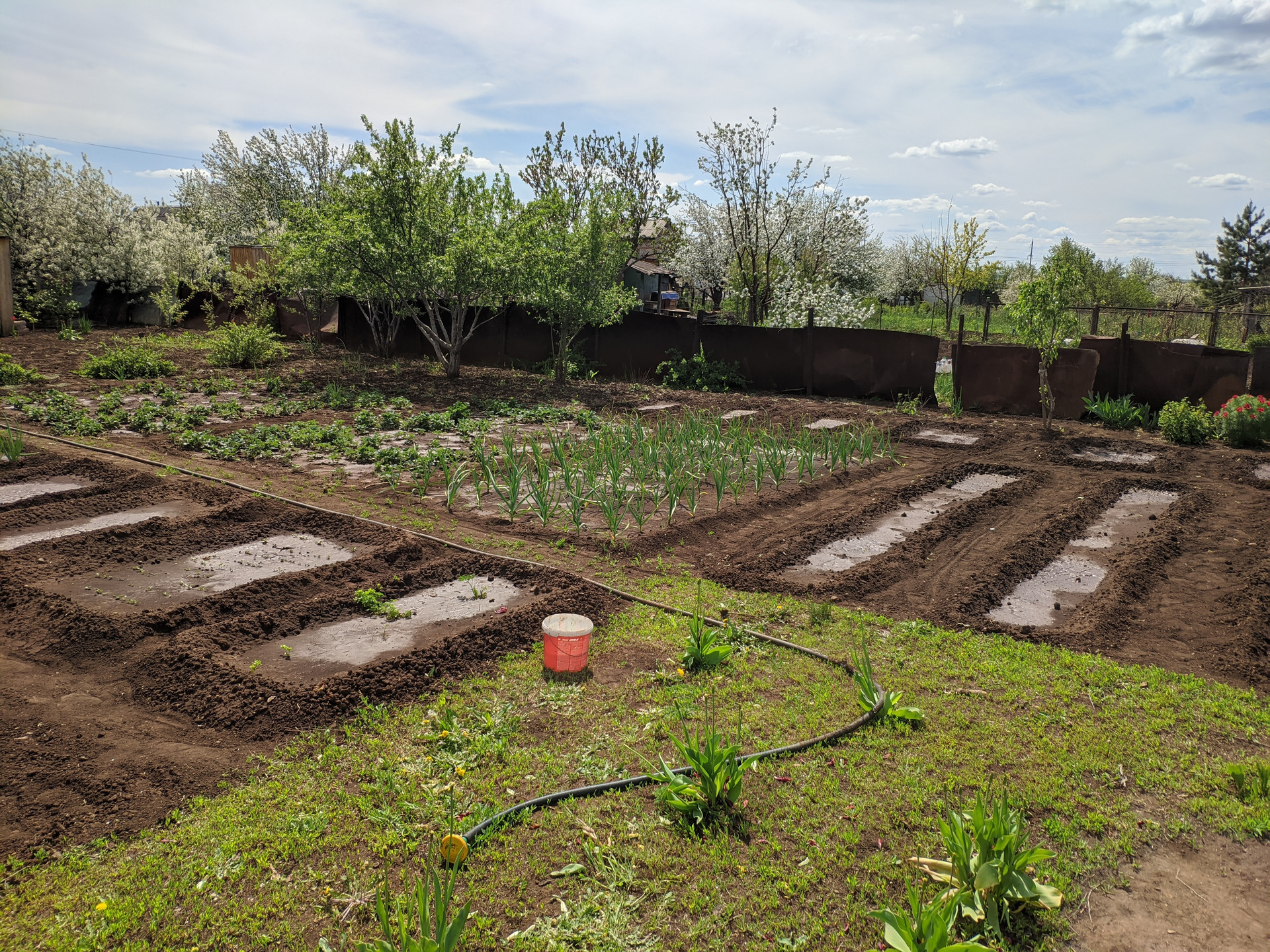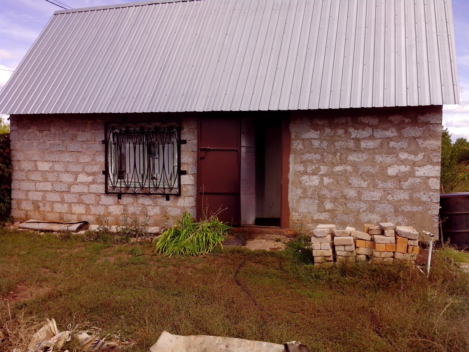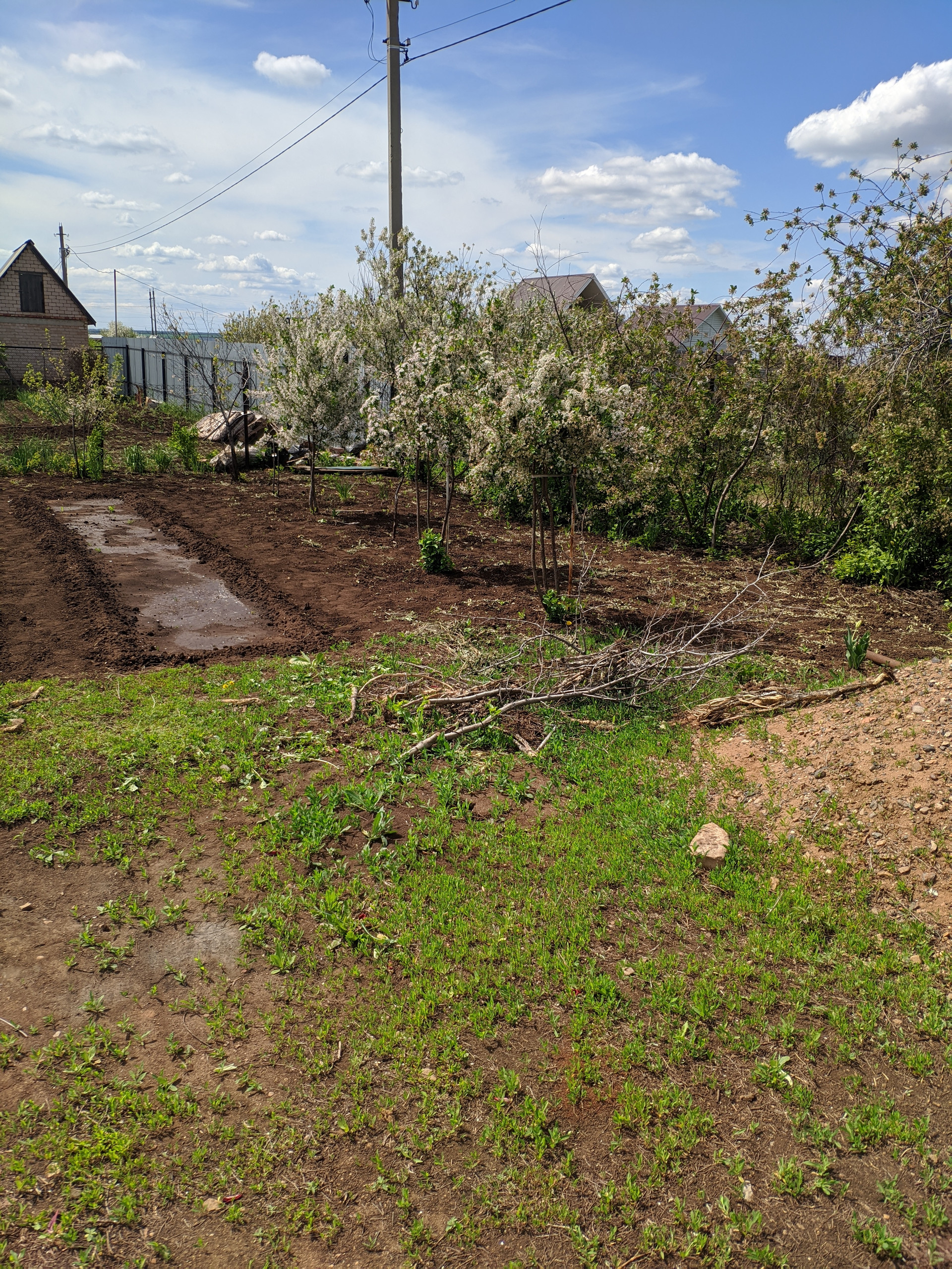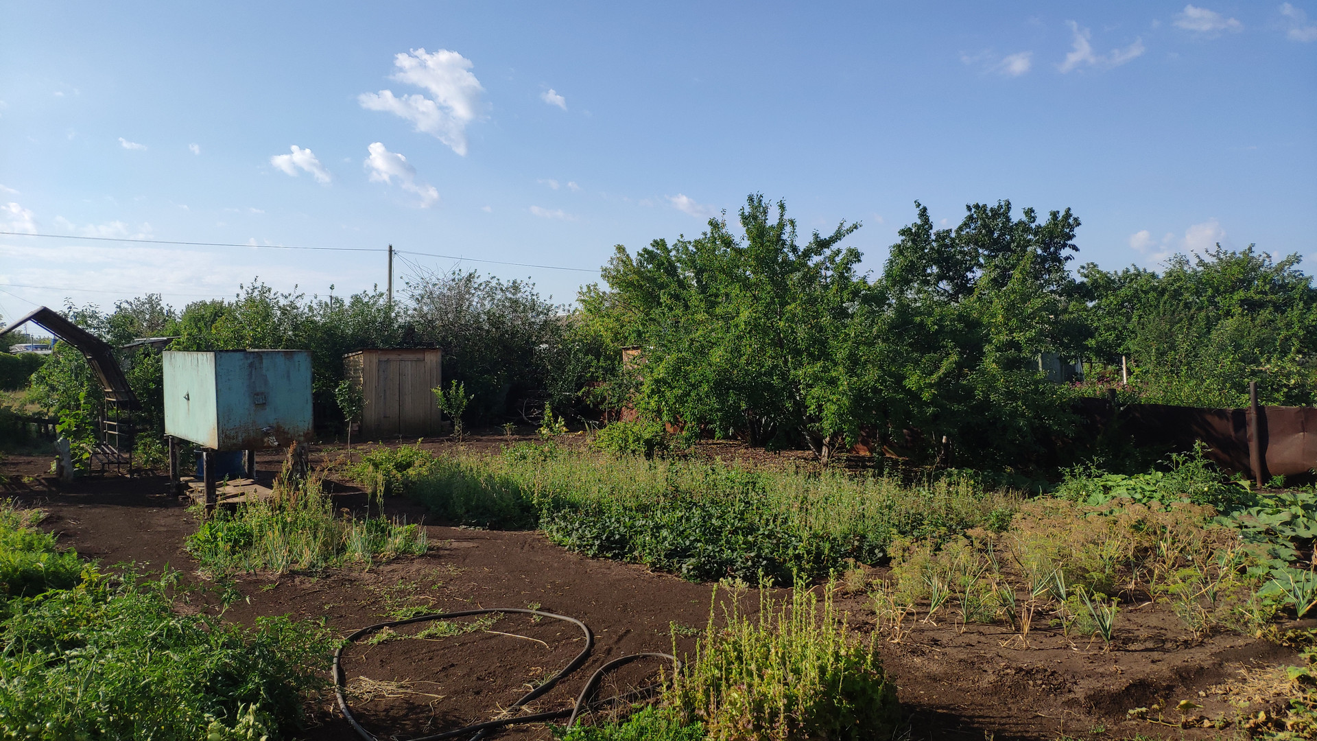 На участке есть уличный туалет. Ёмкость под воду. Много насаждений: вишня, яблони, груша, виноград, клубника, слива, малина.
